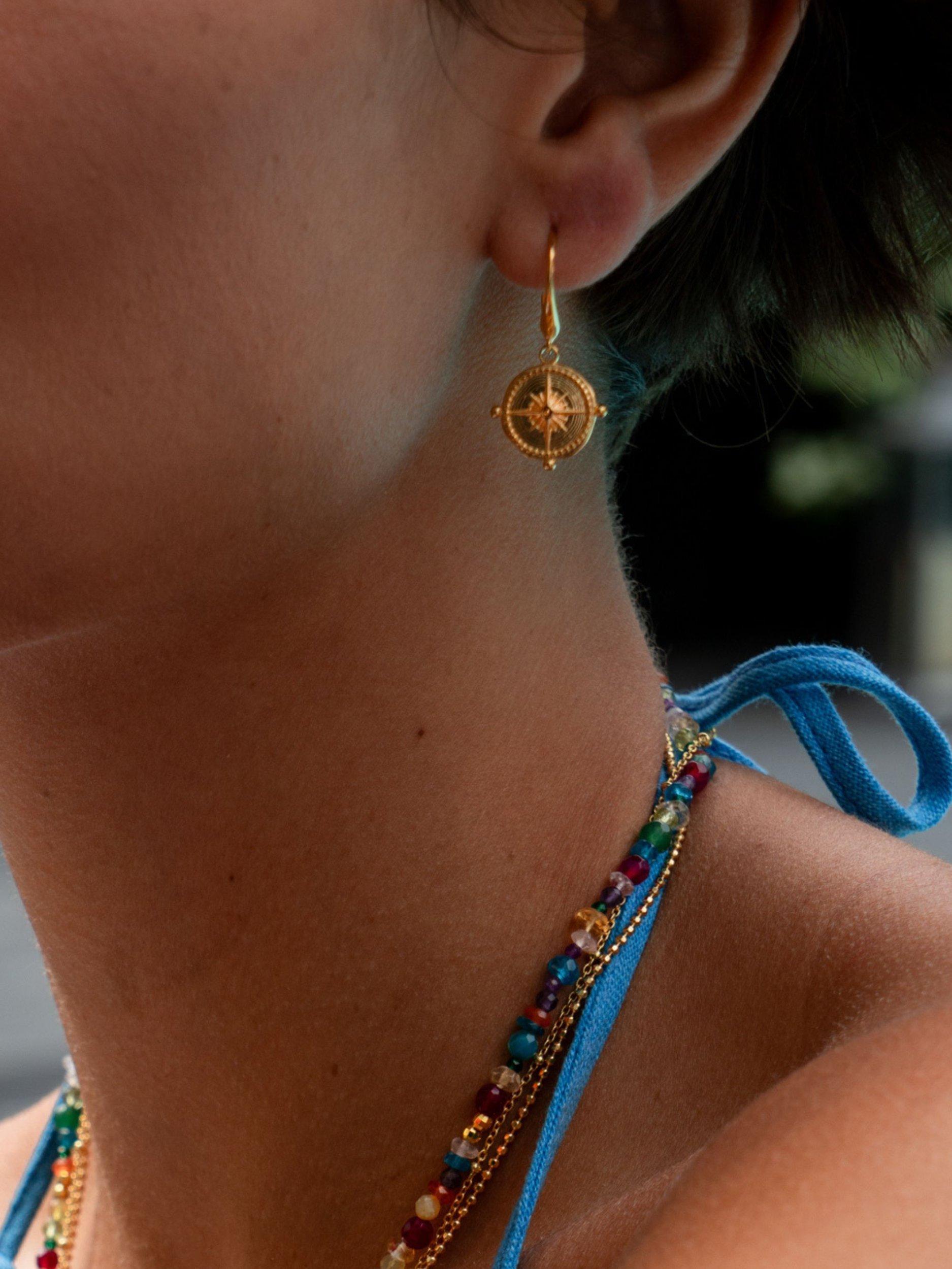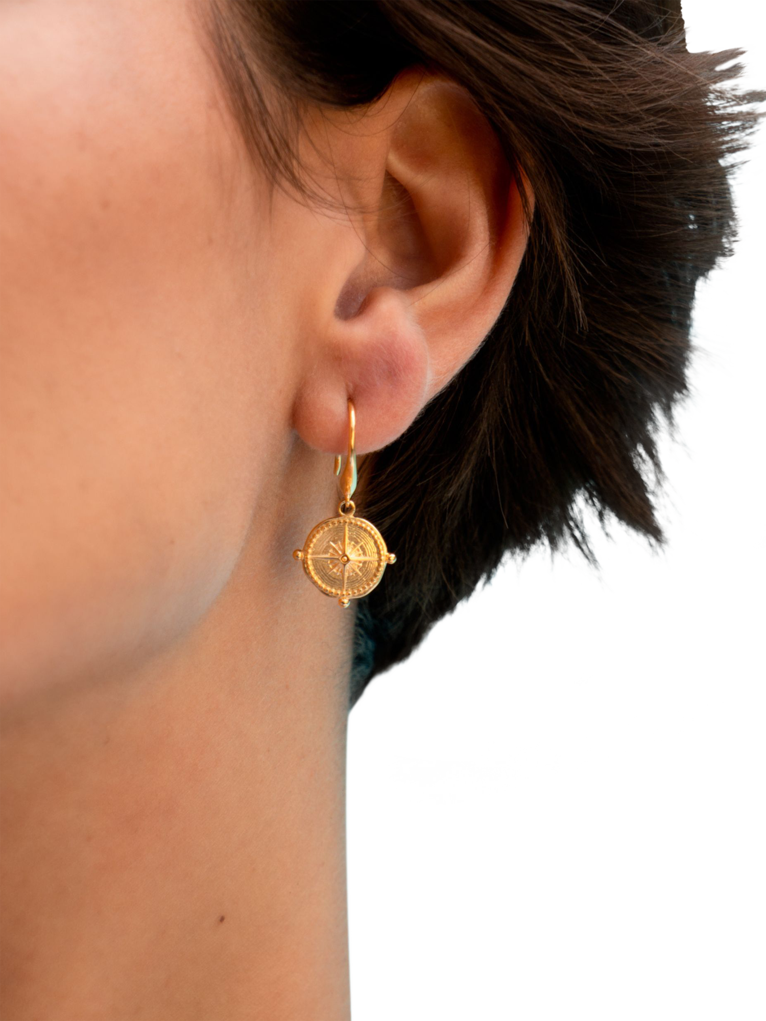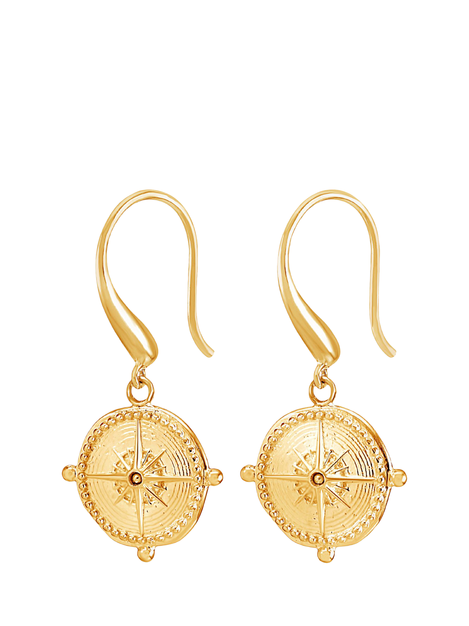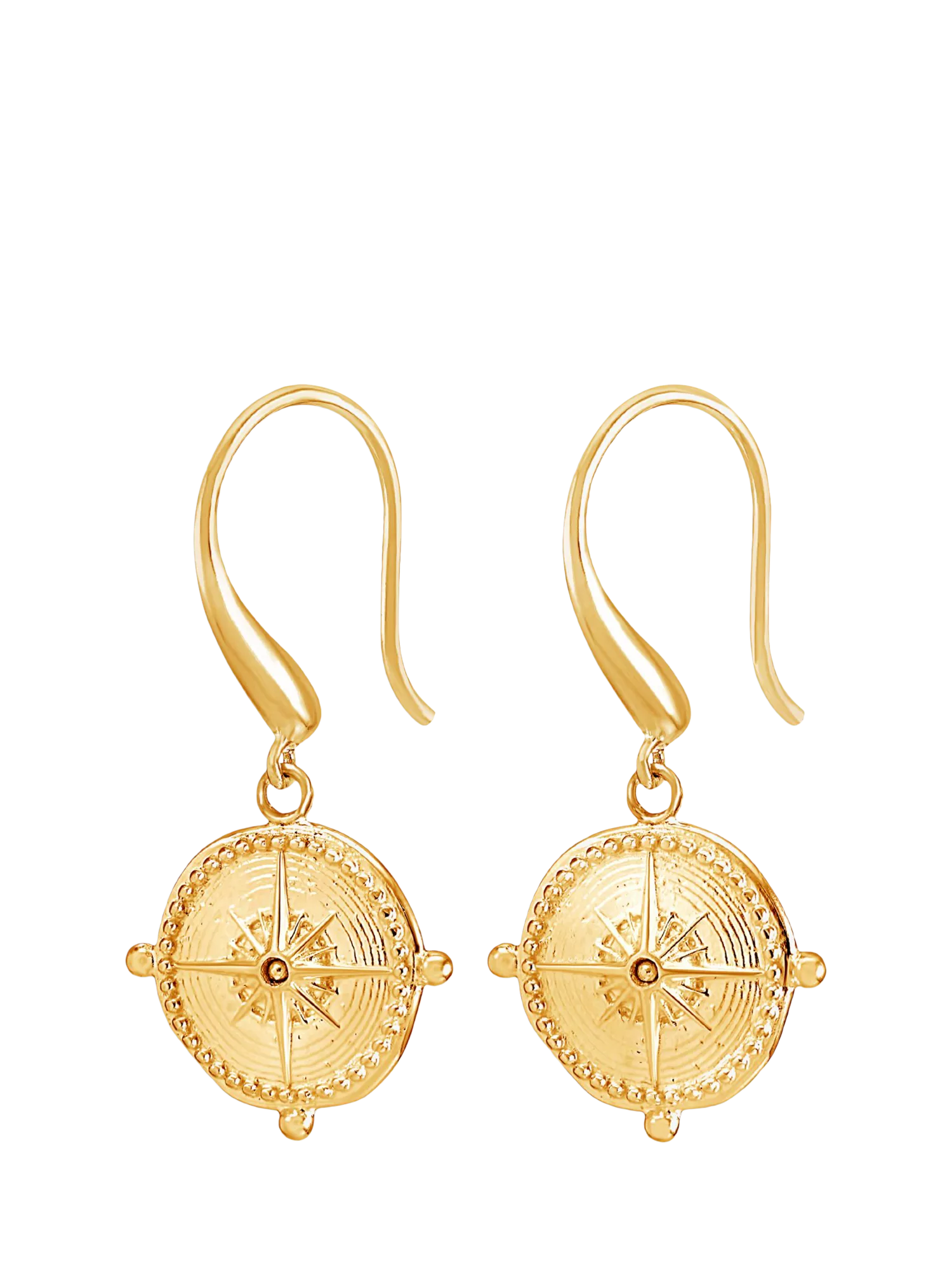 This pair of earrings feature handcrafted sterling silver True North compasses suspended on Dower & Hall signature ear wires.