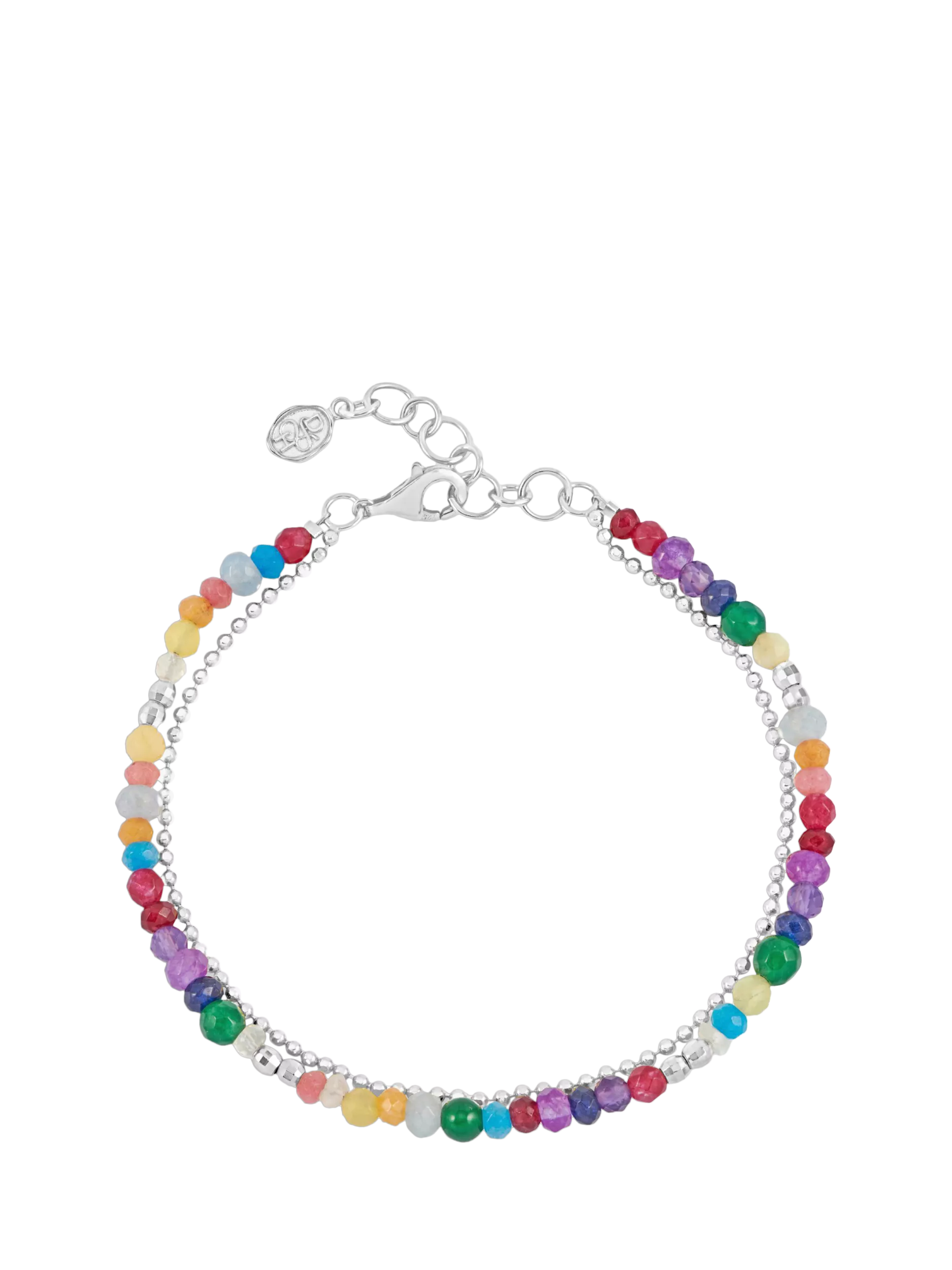 Thread by hand in the brand's London studio, the Tutti Frutti Orissa Bracelet is bursting with a vibrant selection of gemstones. These colourful gems are complemented with sparkling sterling silver beads and chain that will shimmer in the sunlight. The bracelet is adjustable between 7-8 inches, and complete with a signature lobster catch.