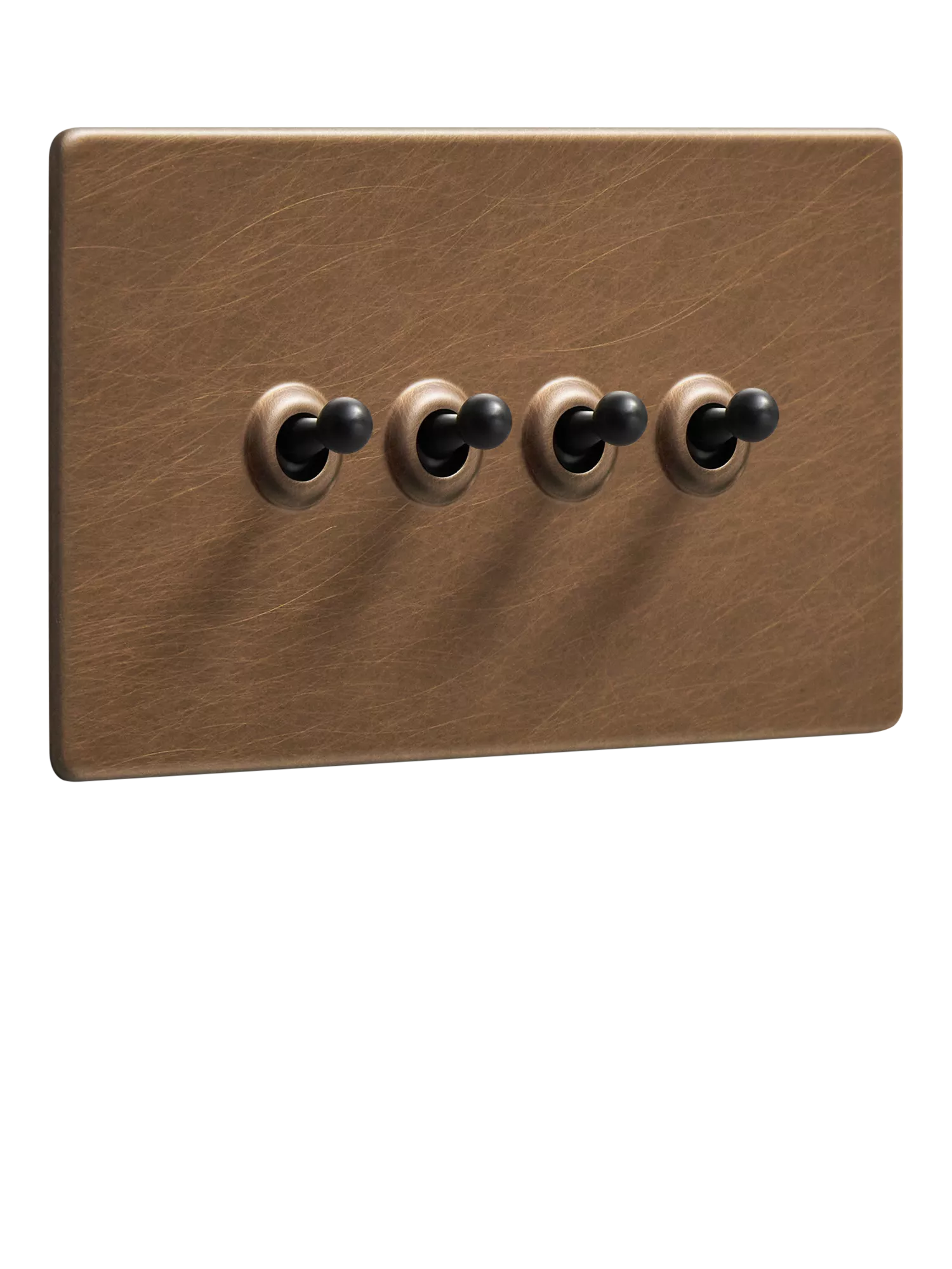 The antique brass quadruple toggle switch by Dowsing & Reynolds offers style and practicality in equal measure. Each toggle controls a separate circuit, ideal for flexible lighting setups, while the traditional ‘dolly’ switch lends itself to heritage décor schemes.