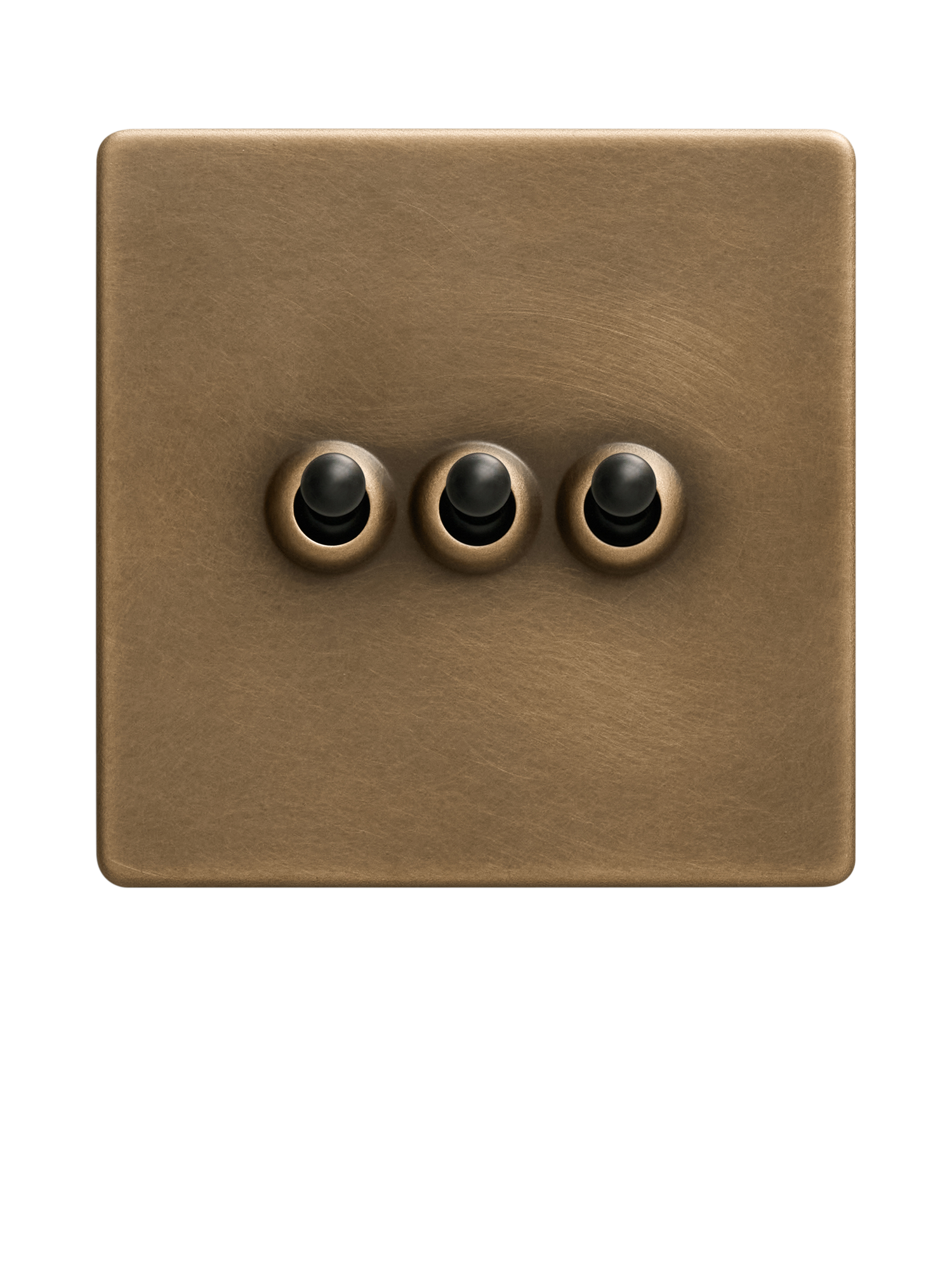 Dowsing & ReynoldsAntique Brass Triple Toggle Switch, Black Toggles