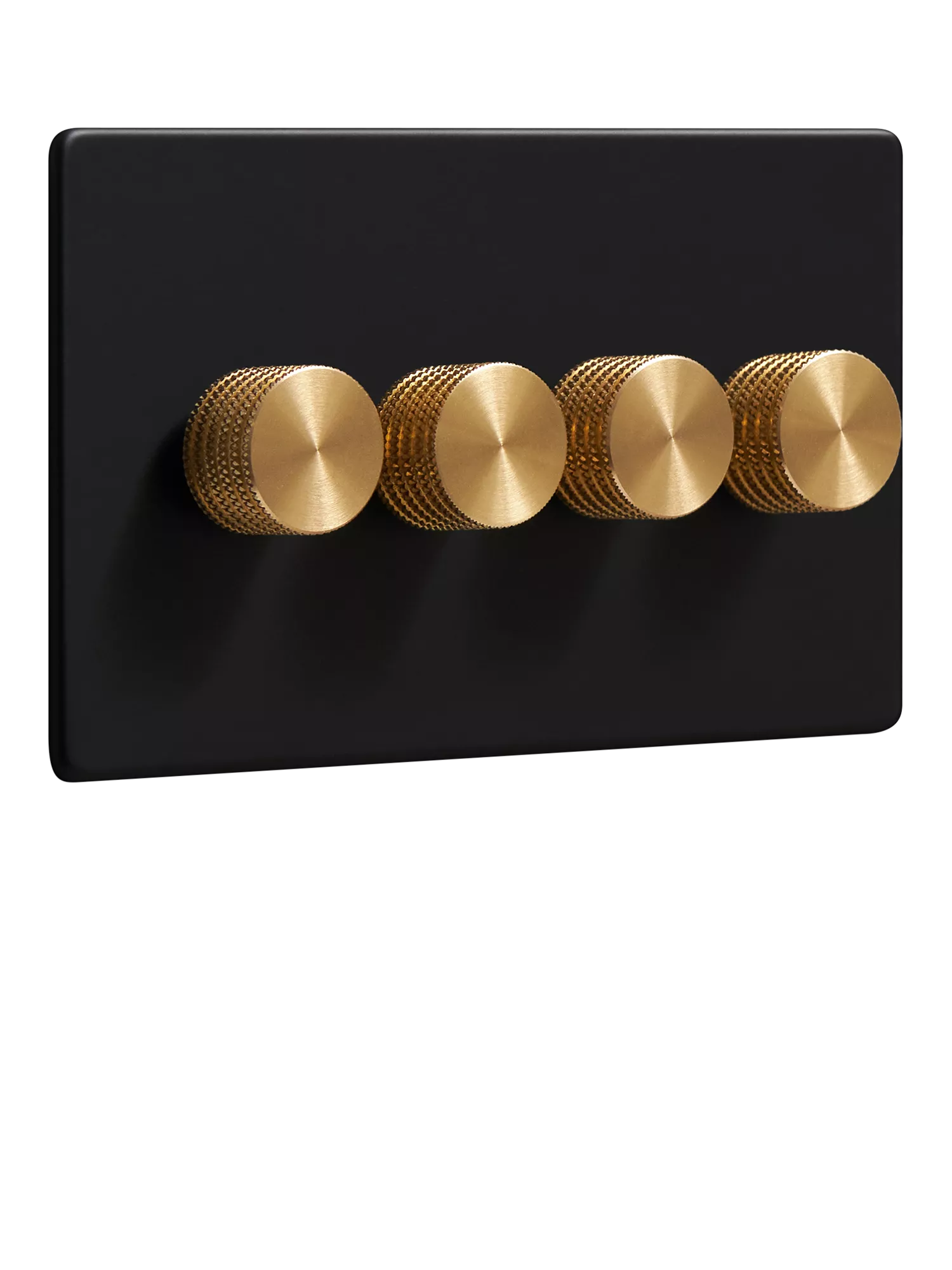 Dowsing & ReynoldsMatt Black Quadruple Dimmer Switch, Brass Knobs