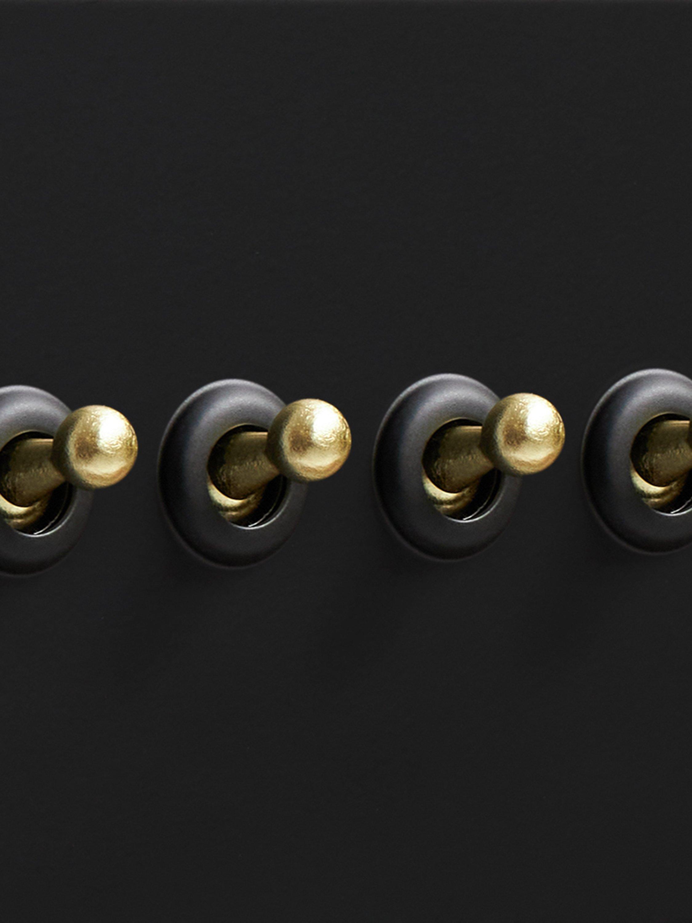This quadruple toggle switch in matt black by Dowsing & Reynolds balances bold design with everyday practicality. Each toggle operates a separate circuit, making it great for layered lighting setups in kitchens, living rooms or hallways. With a clean, flush-fitting design and screwless backplate, it’s a timeless choice that suits both contemporary and characterful homes. Choose from matching black or contrasting gold toggles depending on your style and preference.