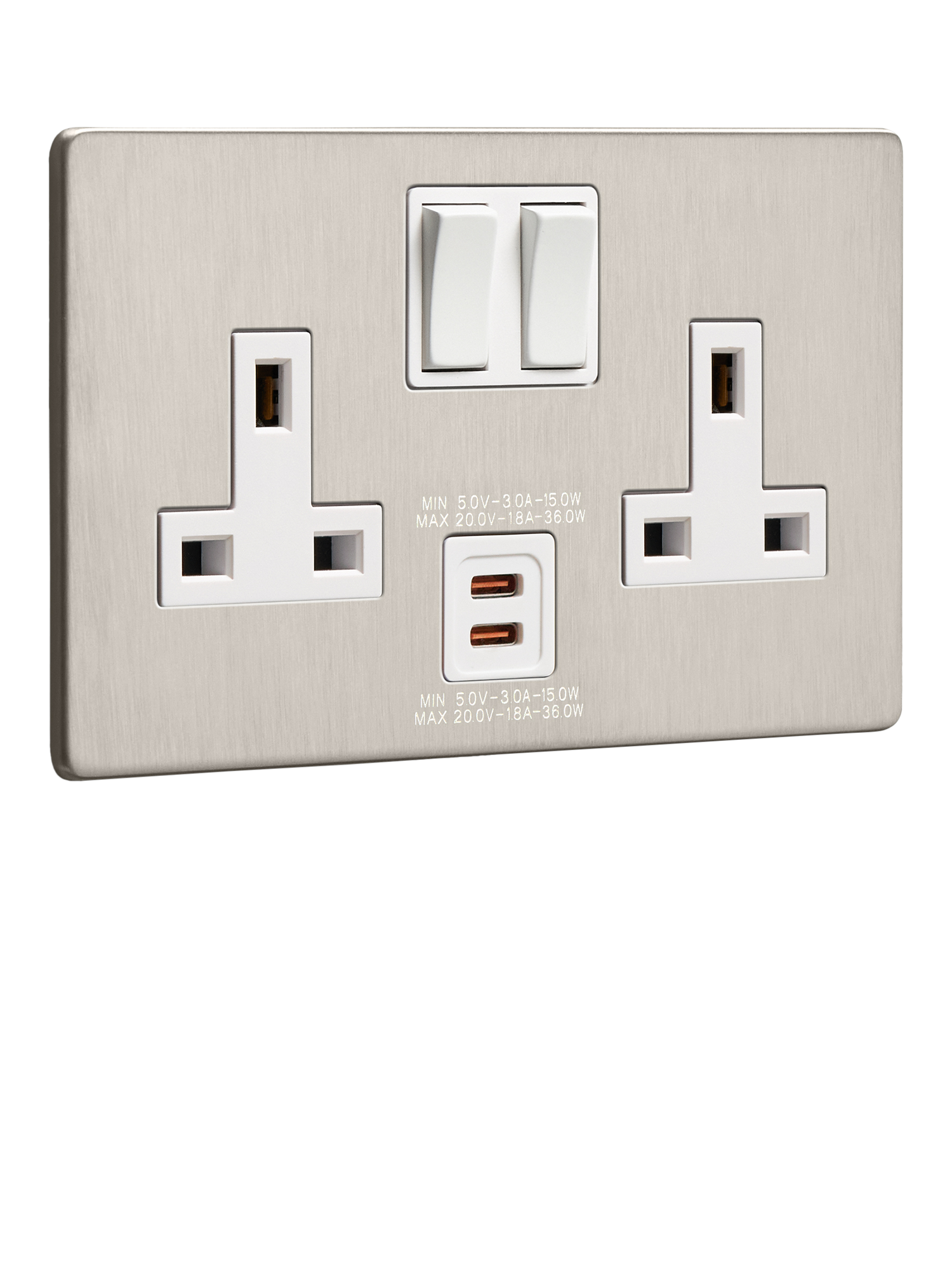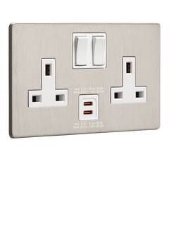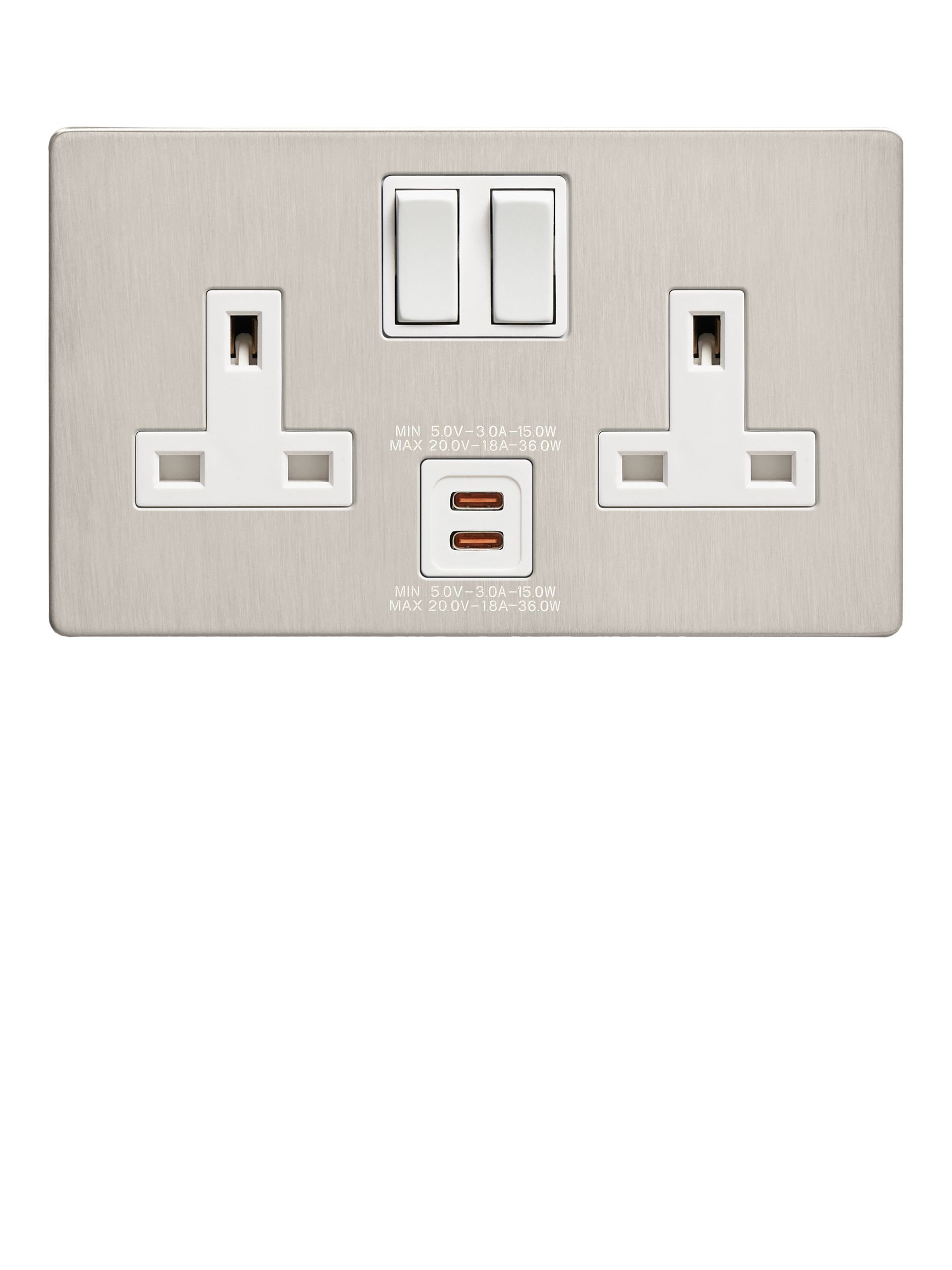 Finished in a soft, brushed silver tone, this double USB-C socket by Dowsing & Reynolds adds smart functionality to your room with a touch of contemporary polish. Charge your devices without bulky adaptors while keeping the look clean and integrated. Ideal for bedrooms, kitchens or workspaces where modern tech fits seamlessly into your design.
