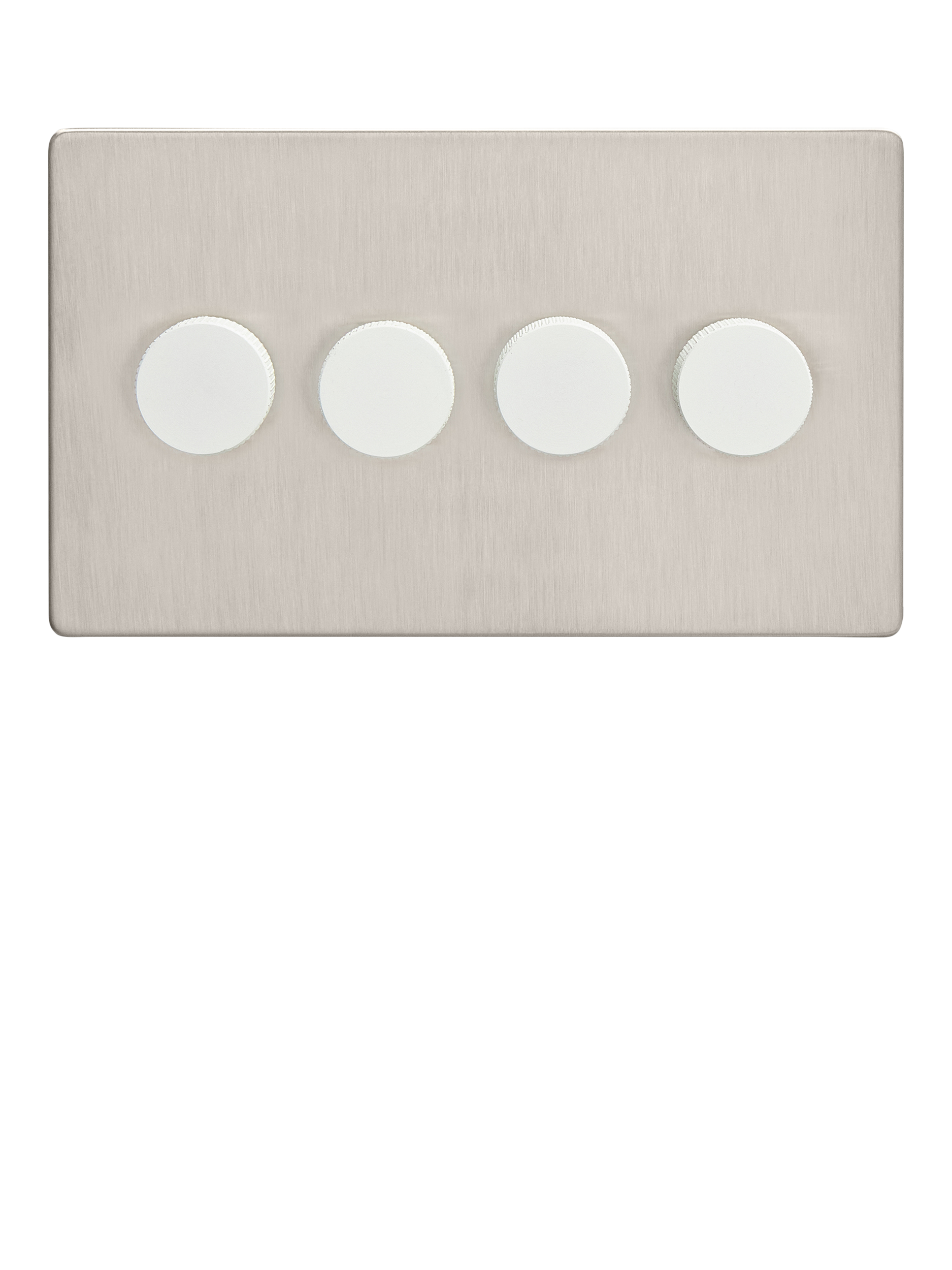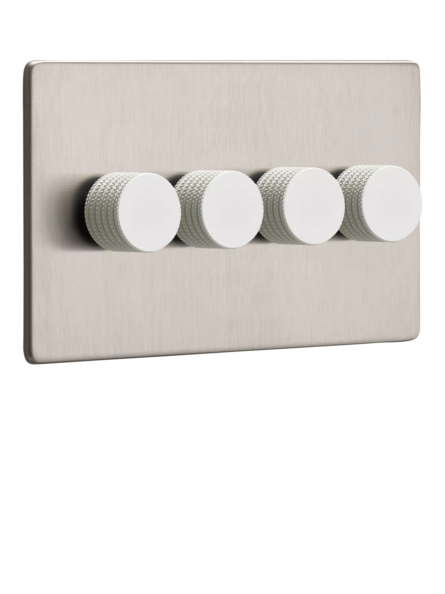 This quadruple dimmer switch by Dowsing & Reynolds is designed to give you flexible lighting control with clean, minimal styling. Finished in a soft, brushed silver tone, it blends effortlessly into any interior while offering maximum usability. From kitchens to open-plan lounges, it’s ideal for managing complex lighting setups in one unified design. Choose from silver or white dimmer dials to coordinate with your interior style.