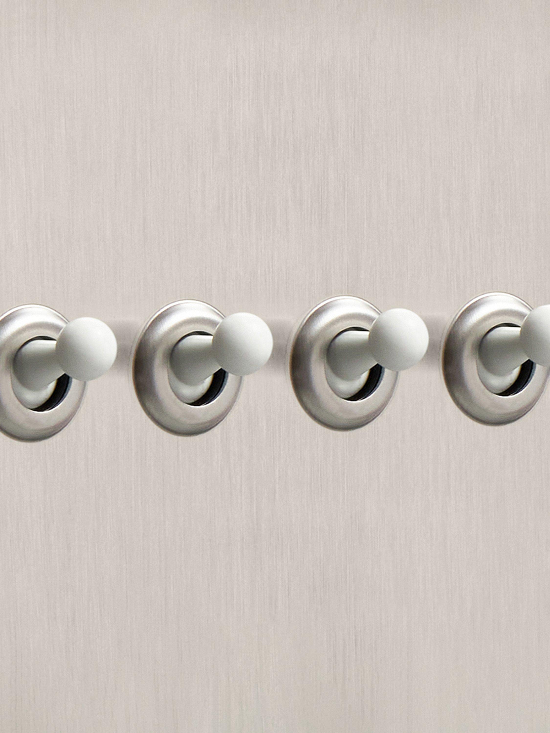 Finished in a sophisticated soft silver, this quadruple toggle switch by Dowsing & Reynolds brings a contemporary feel to classic functionality, perfect for managing complex lighting setups without disrupting your décor. The muted metallic tone pairs well with natural textures and cooler palettes, offering a hint of contrast without stealing focus. It’s especially well-suited to large multifunctional rooms where multiple lighting light sources need to be controlled from one light switch. Available with matching silver or contrasting white toggles.