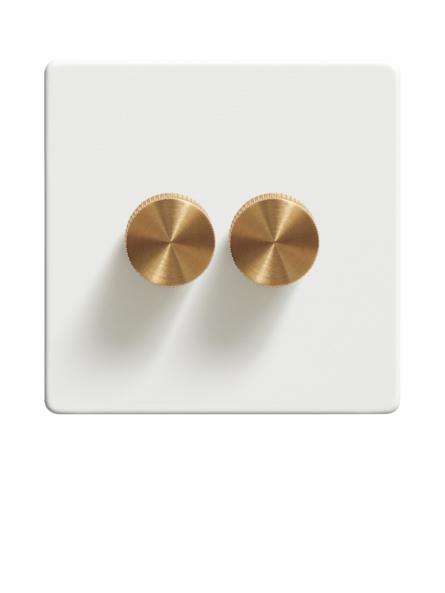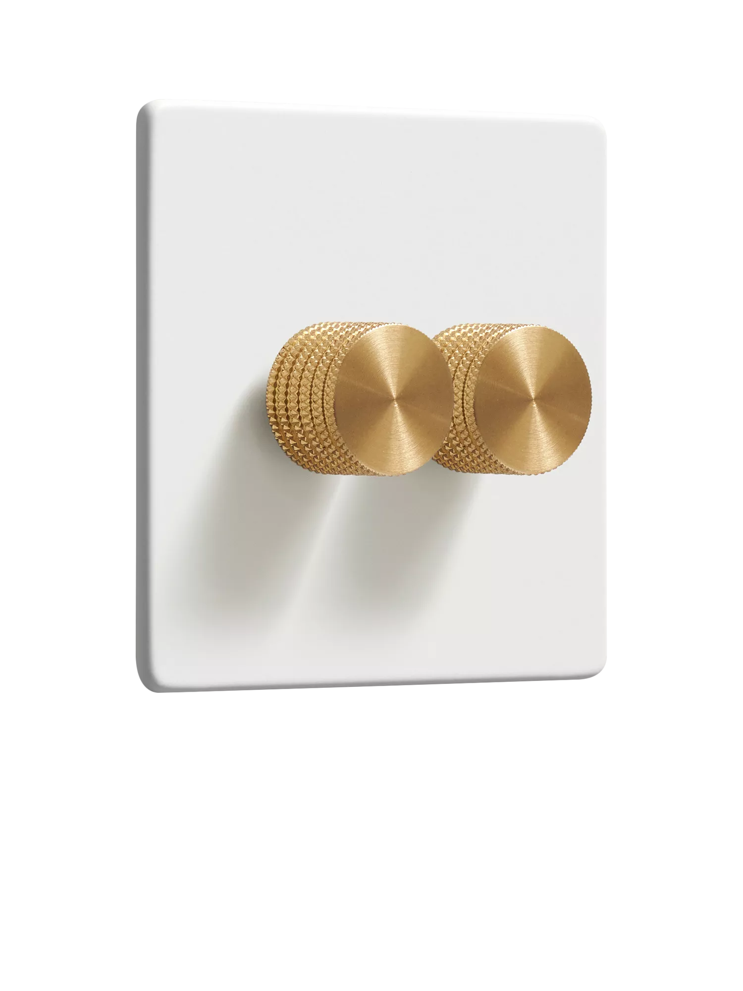 Dowsing & ReynoldsSoft White Double Dimmer Switch, Brass Knobs