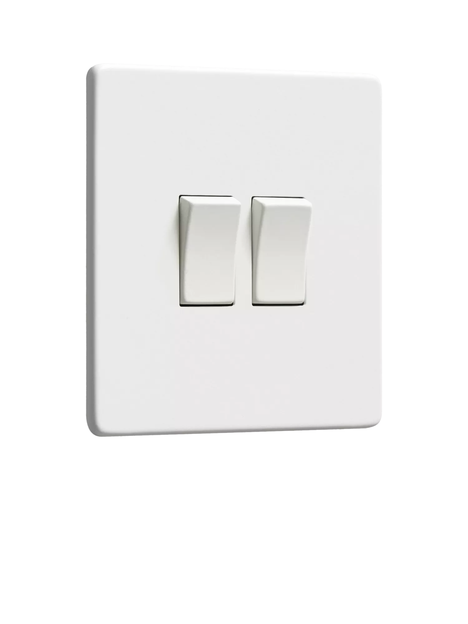 Finished in soft white, this double rocker switch by Dowsing & Reynolds lets you control two lighting zones without compromising on design. The understated tone adds a serene quality to any space, while the functional, flush-fitting design keeps spaces looking seamlessly cohesive. Perfect for bedrooms, living areas or entryways where you want to control two lighting circuits from the same switch. Select white or gold rockers to suit your décor scheme.