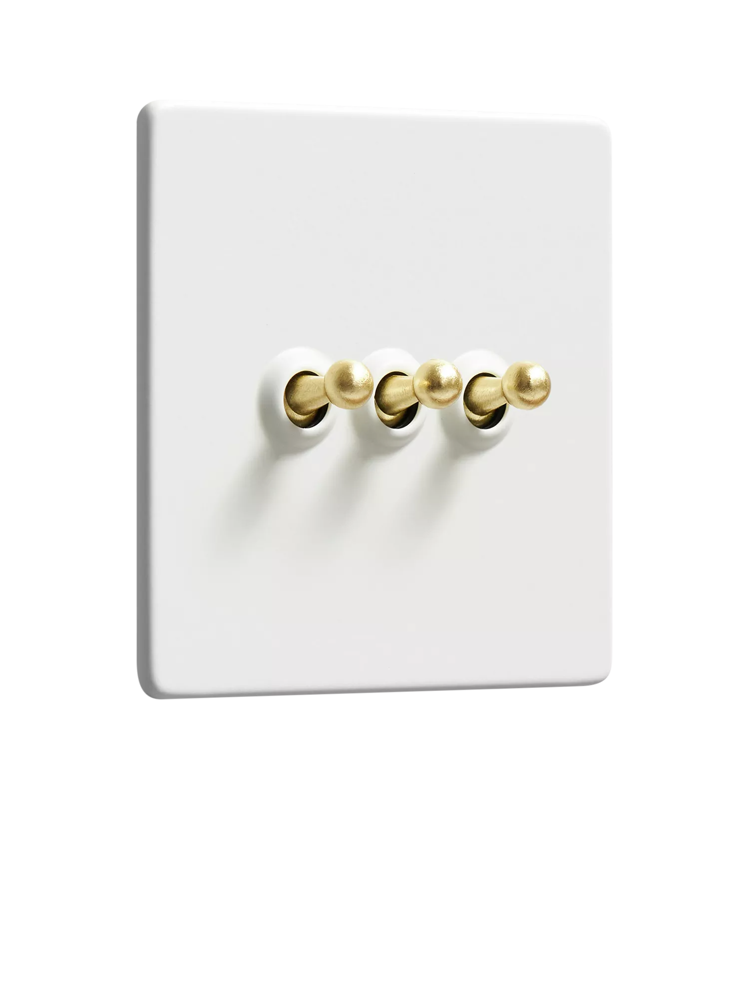 Dowsing & ReynoldsSoft White Triple Toggle Switch, Gold Toggles