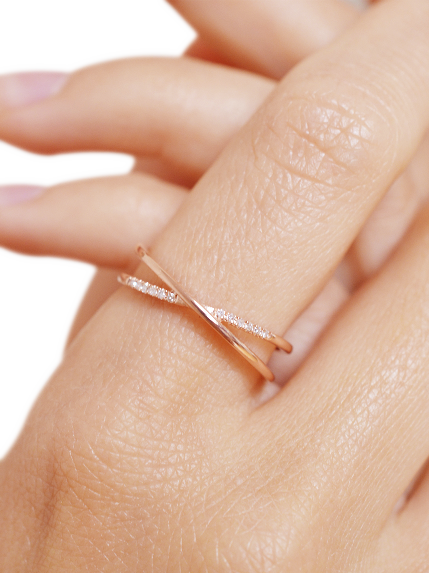 A timeless series of re-interpretations of a classic pavé band: this Crossover ring puts 10 natural diamonds beautifully on display in a crossover design.