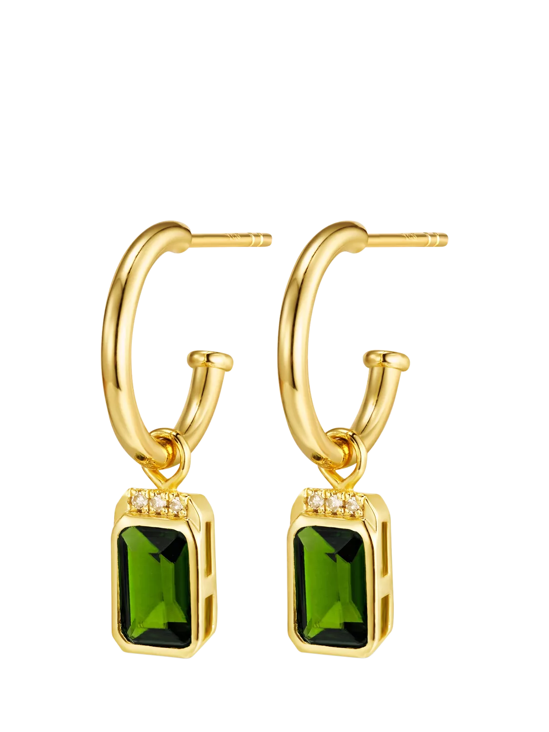 Nothing exudes timeless elegance more than our vintage-inspired Noëlleset. Featuring a mesmerizing green Diopside gemstone in a refined octagonsetting and 3x natural diamonds, this single hoop effortlessly evokes thecharm and sophistication of a bygone era into modern everyday life. Diopside is known as a gentle, uplifting mood booster, promoting emotional balance and calmness and opening up the heart.