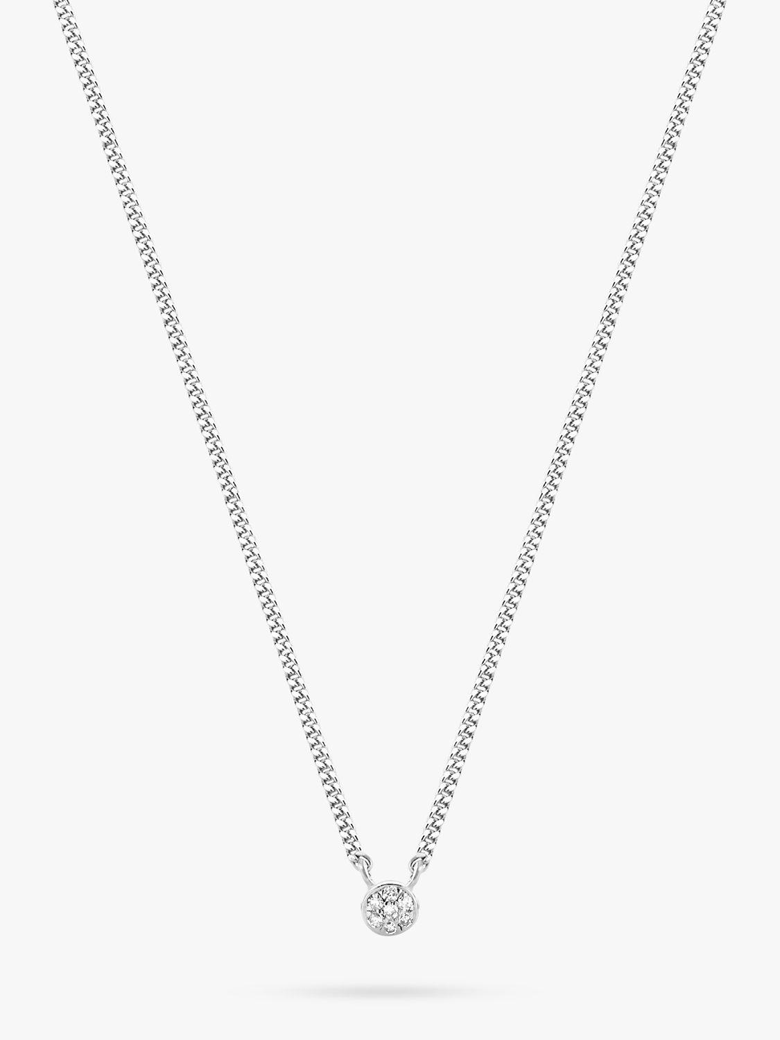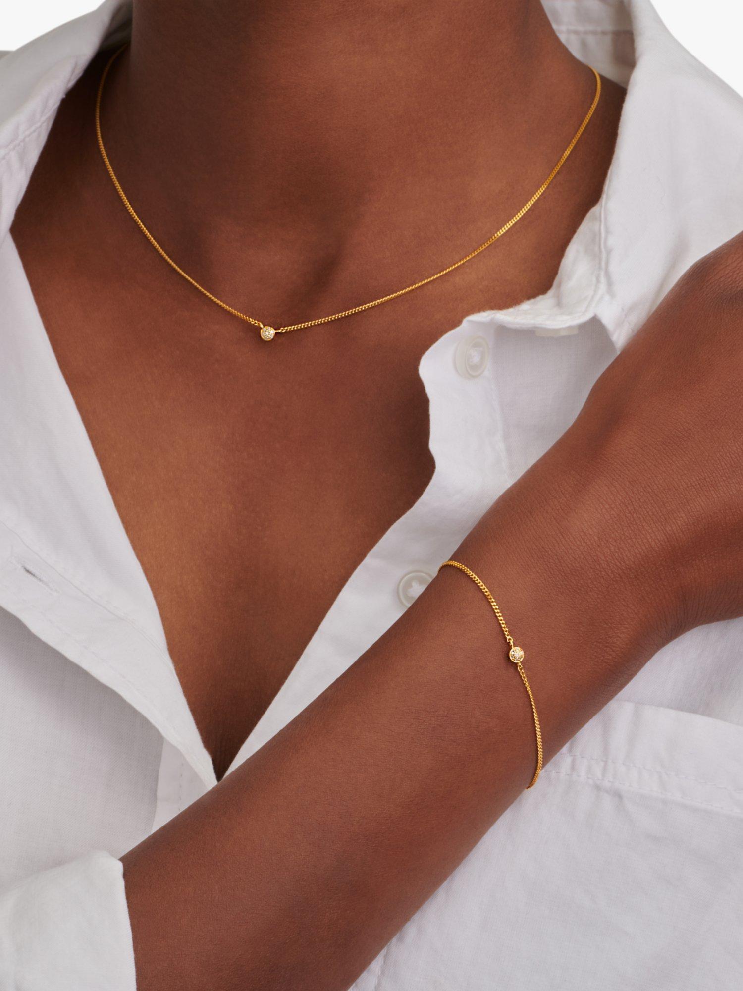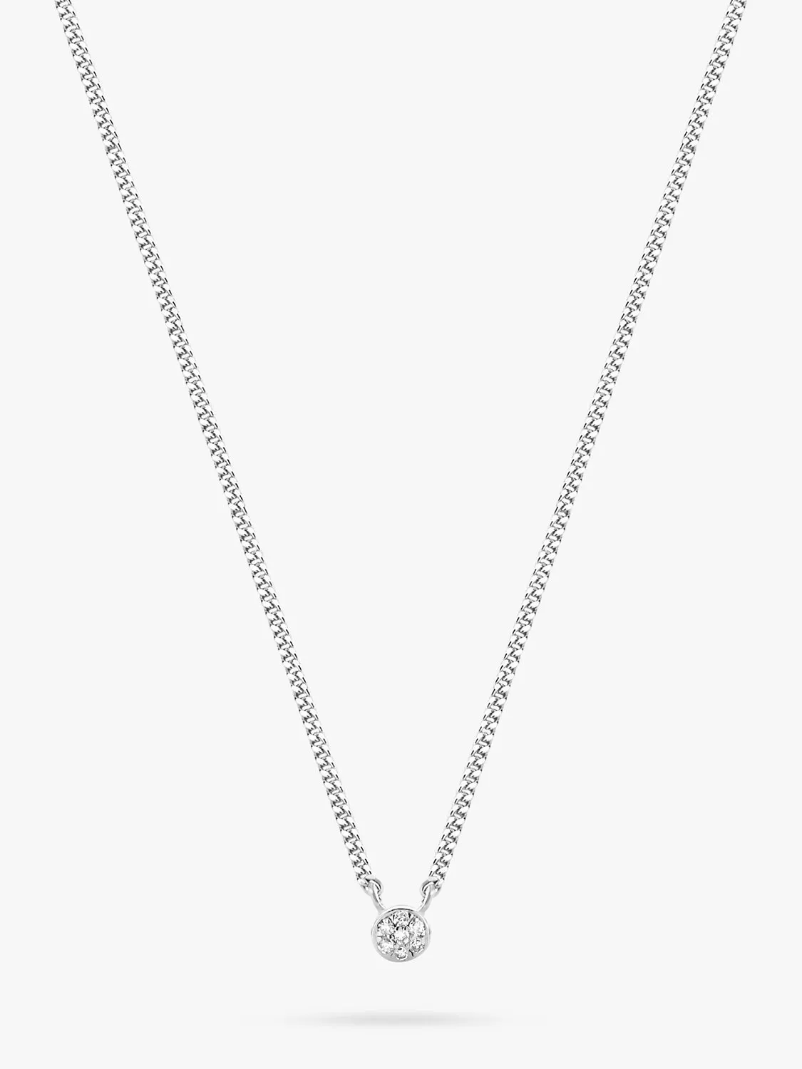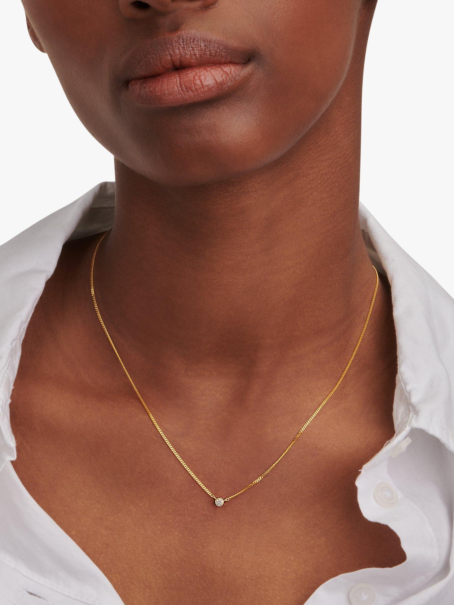 "Less is more" - the First Diamond Necklace is the sublime exponent of this credo. If you are taking your first steps into diamond jewellery, perhaps this necklace could be the one to give you the luxurious feeling you're looking for. It has 7 shimmering diamonds to create the illusion of 1 alluring diamond. The chain is adjustable in length to ensure a great fit.