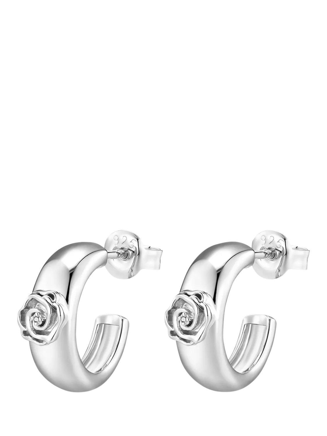These hoops aren't just a "budding" tribute to nature, they re a full-blown floral affair for the soul. A pair of wider hoop earrings, flaunting lovely rose flowers, each with a natural white diamond at heart. Perfectly balancing boldness and grace, they make every day blossom with charm.