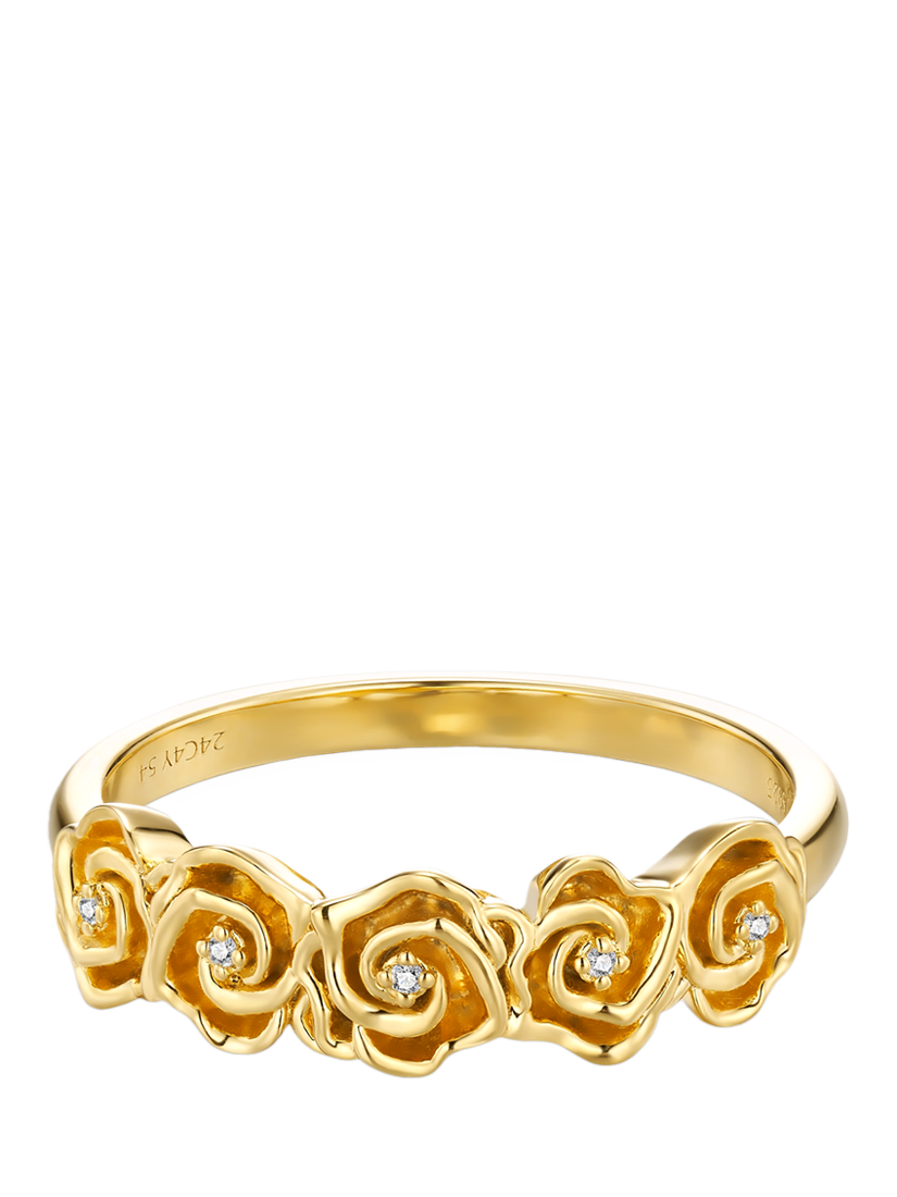 This ring isn't just a "budding" tribute to nature, it's a full-blown floral affair for the soul. A wider band, flaunting 5x lovely rose flowers, each with a natural white diamond at heart. Perfectly balancing boldness and grace, it makes every day blossom with charm.
