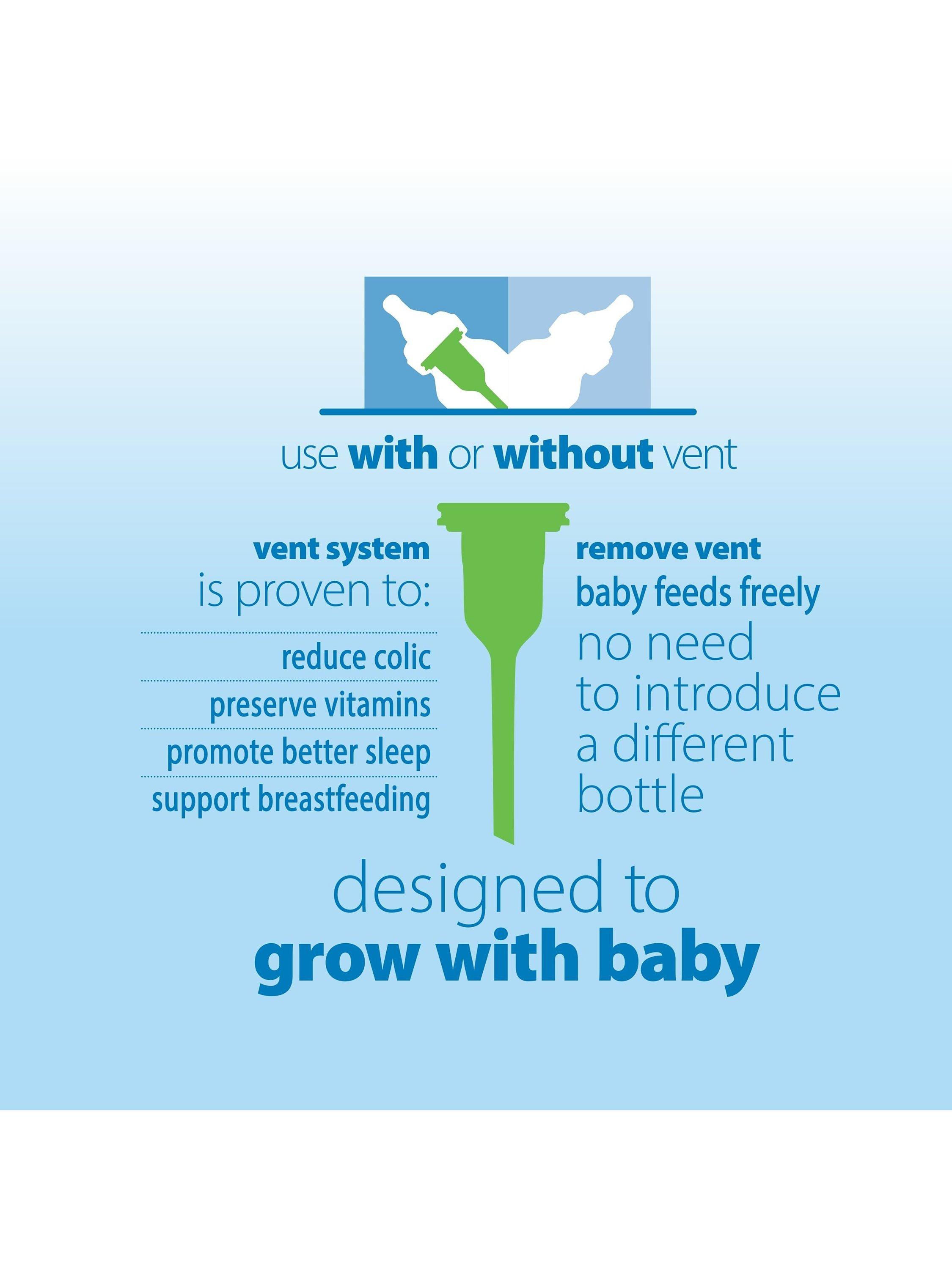 - Two vent options, one proven bottle. No need to introduce a different bottle once baby grows out of colic.