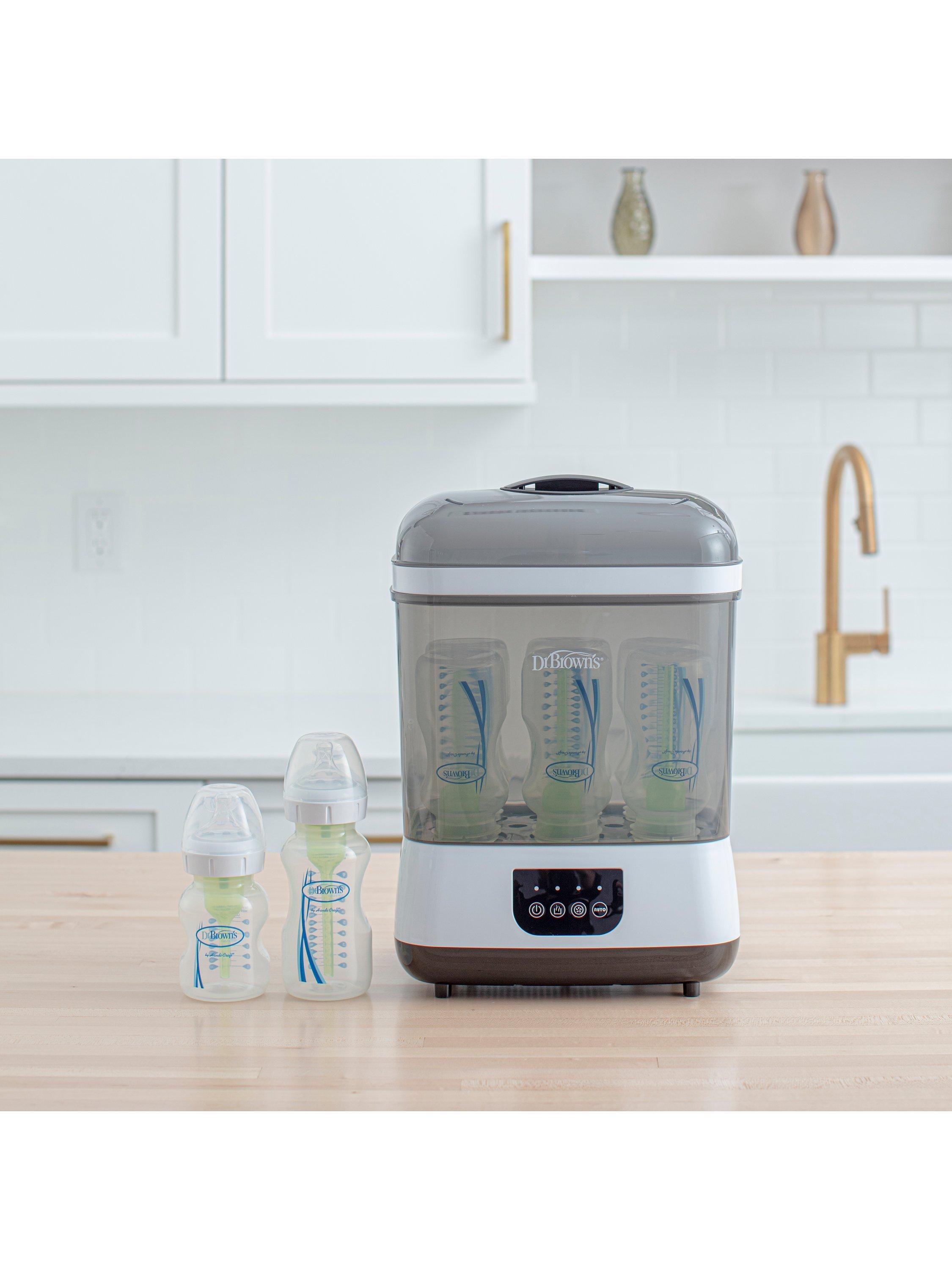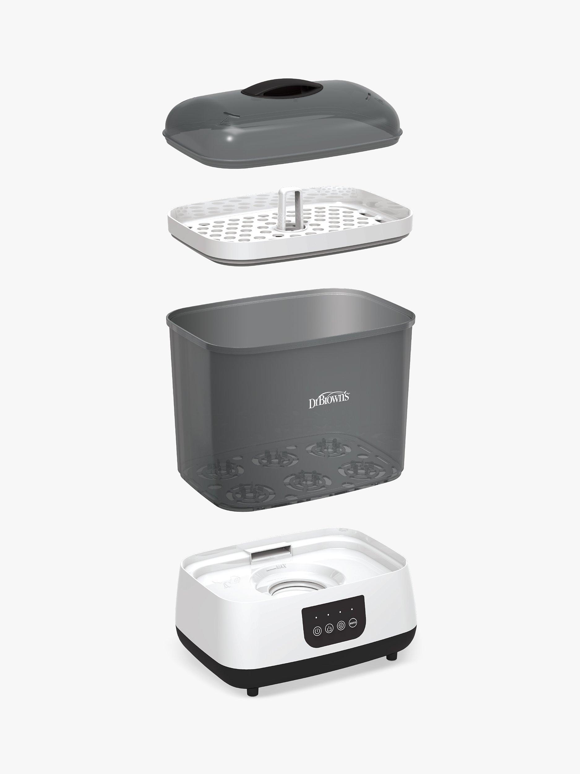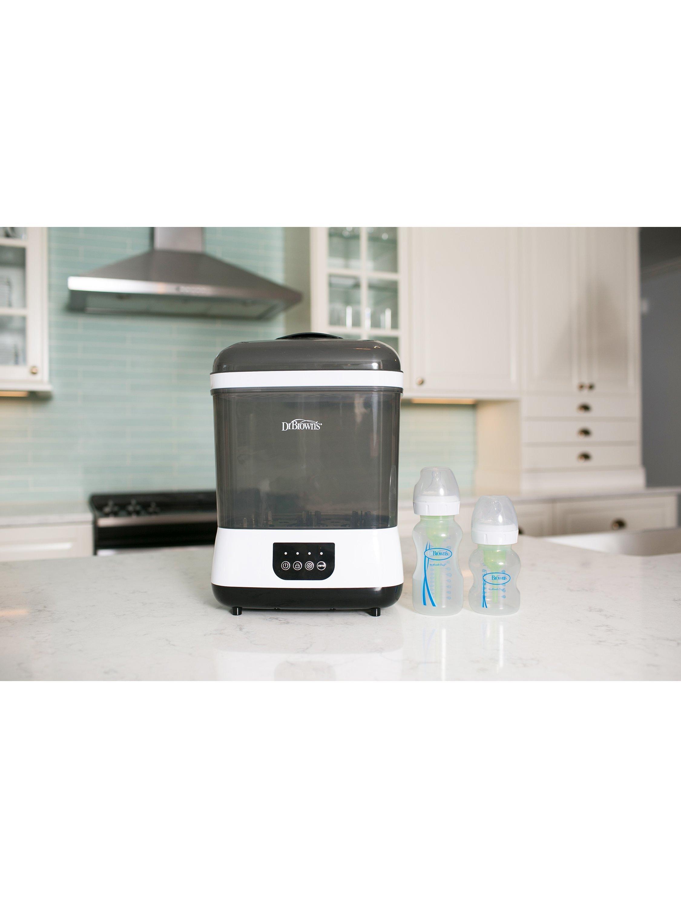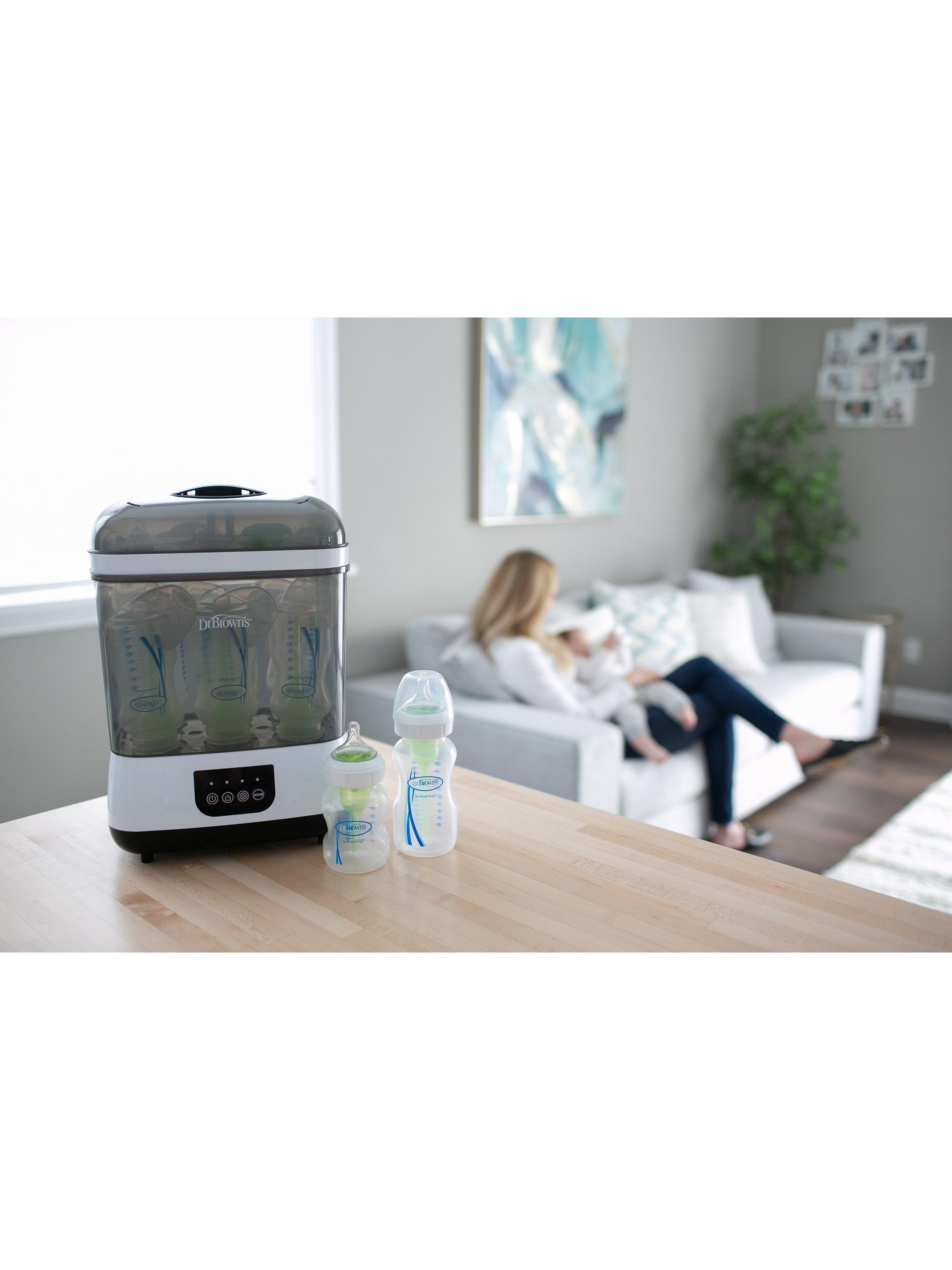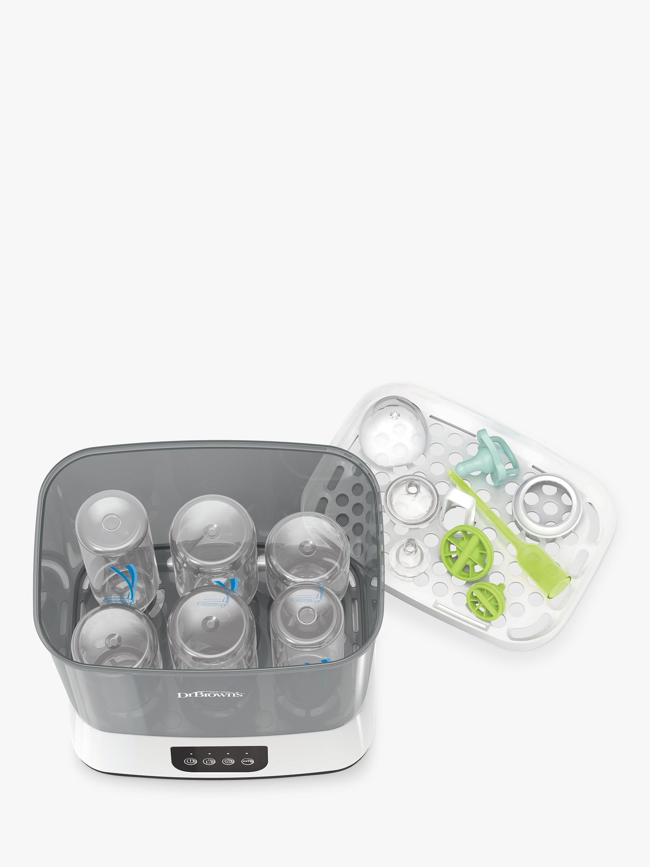 Steam clean, dry, store, and more. Steam sterilises and dries up to six baby bottles at once, plus breast pump parts, soothers, and teethers with the Dr. Brown’s™ clean steam bottle steriliser.