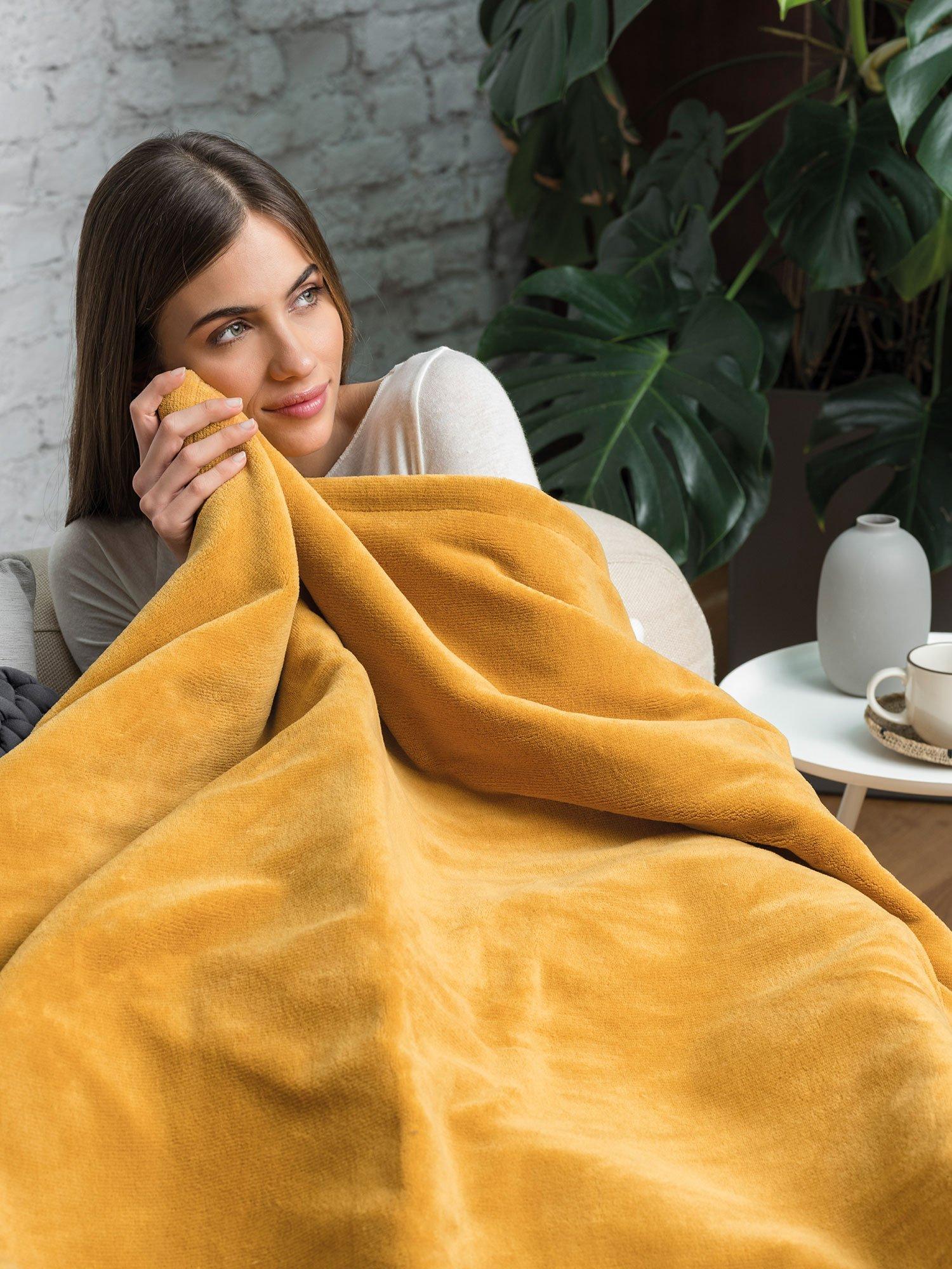 Dreamland's best-selling Mustard throw large size 160 x 120 cm offers the ultimate in luxury, perfect for relaxing on the sofa while being cocooned in warmth under the heated throw. Great to take the chill away, or when in need of a warm hug, if feeling under the weather, or hungover. Intelliheat+ Technology, cleverly responds to temperature changes while you sleep and relax.