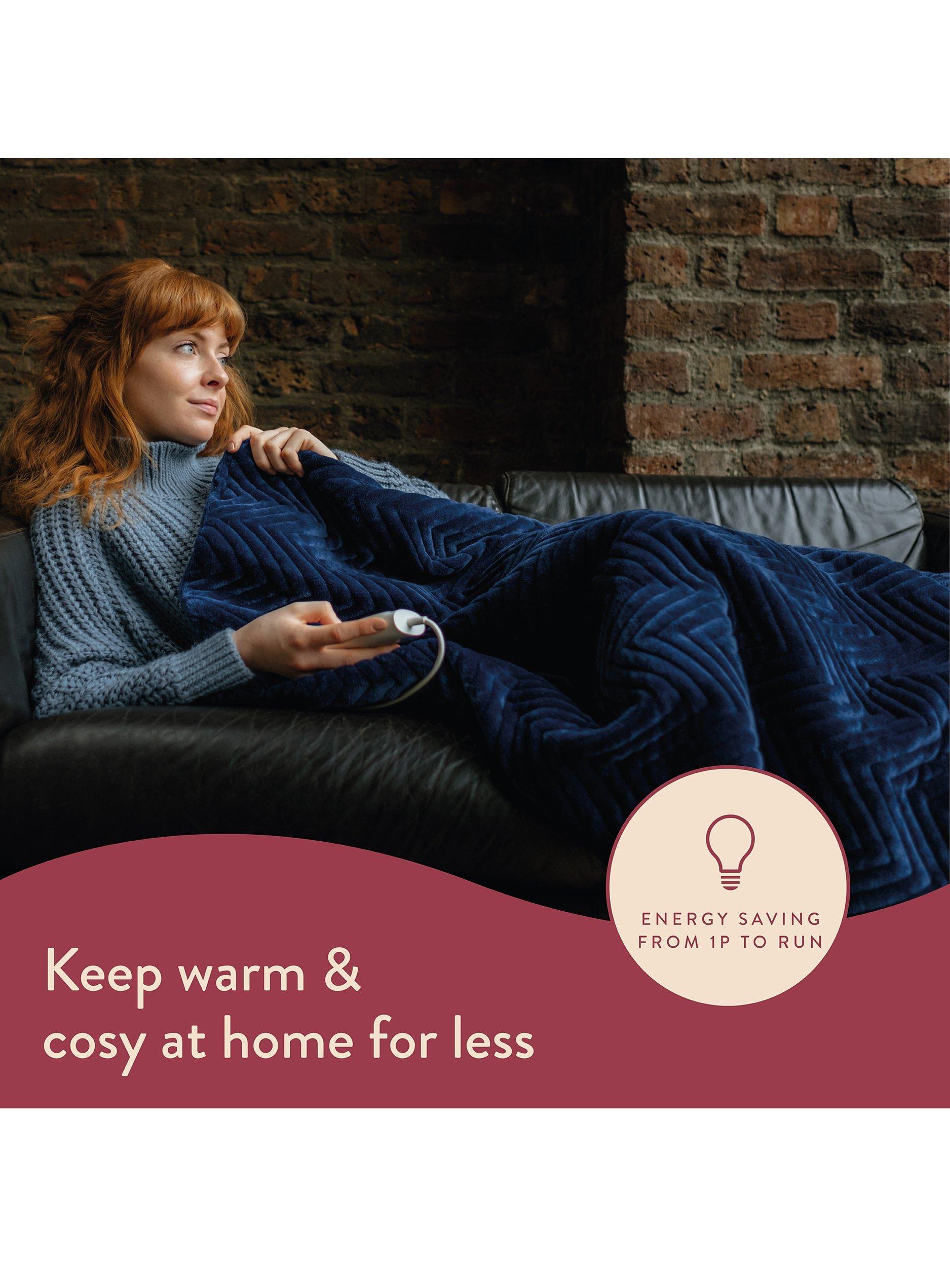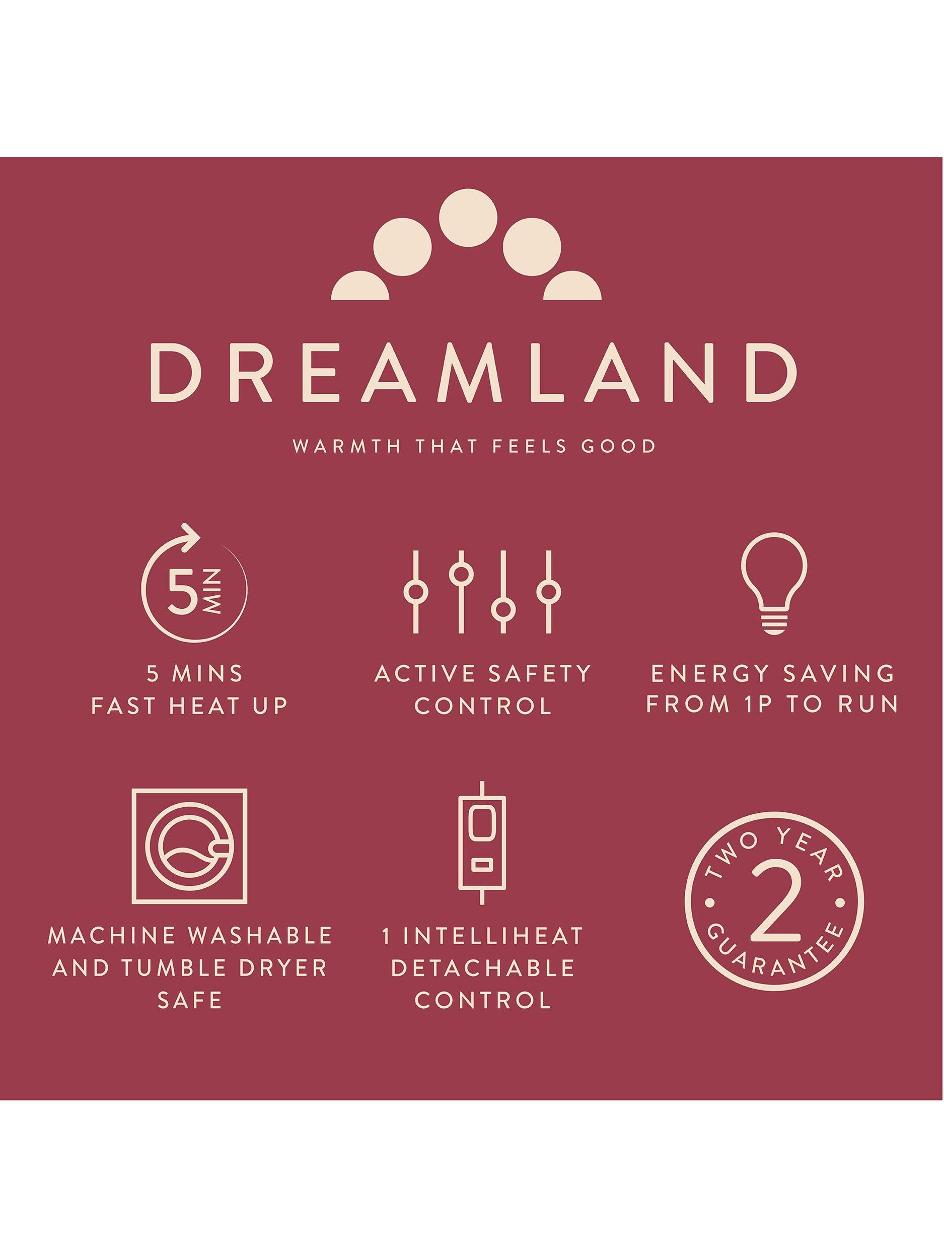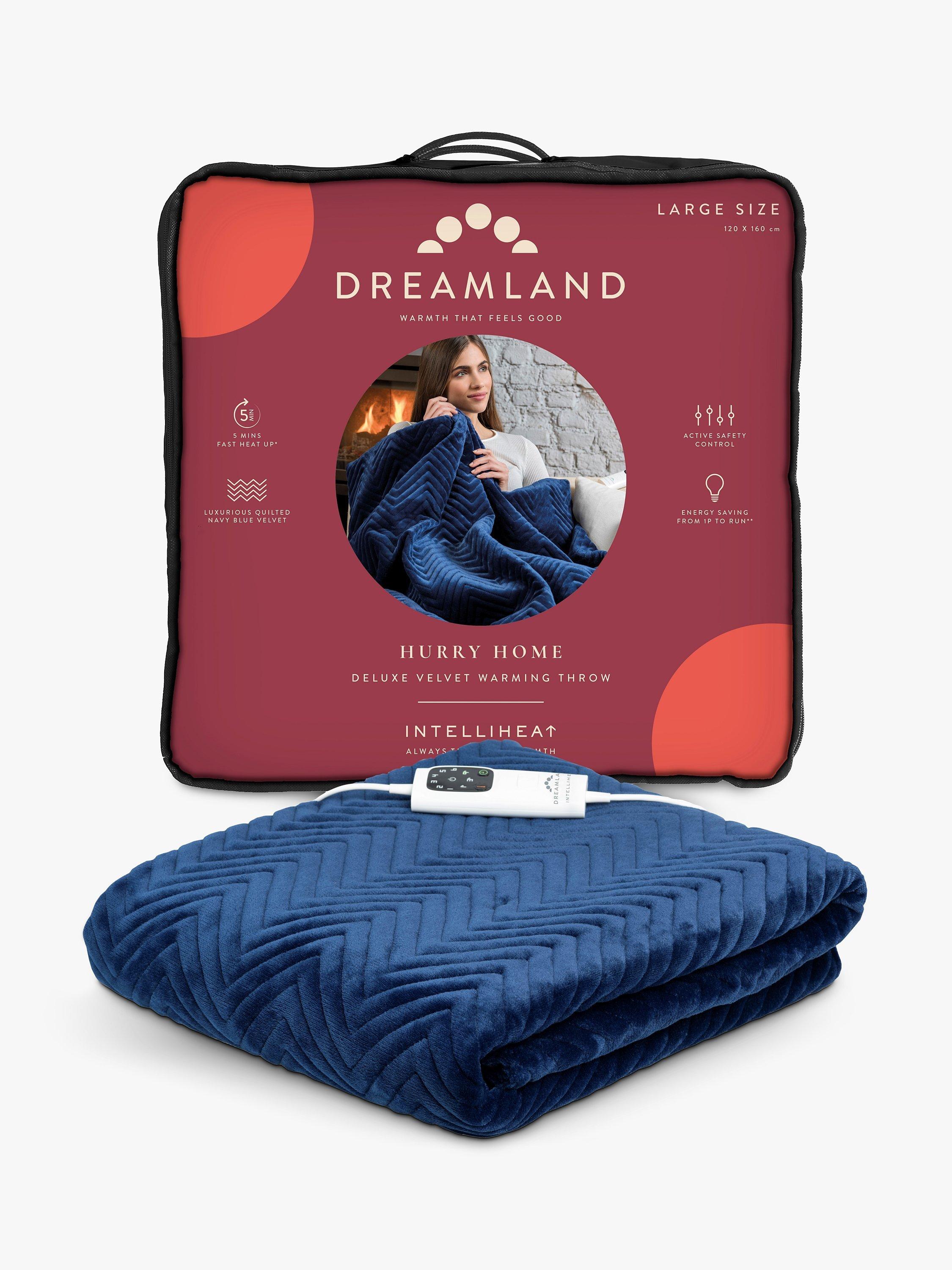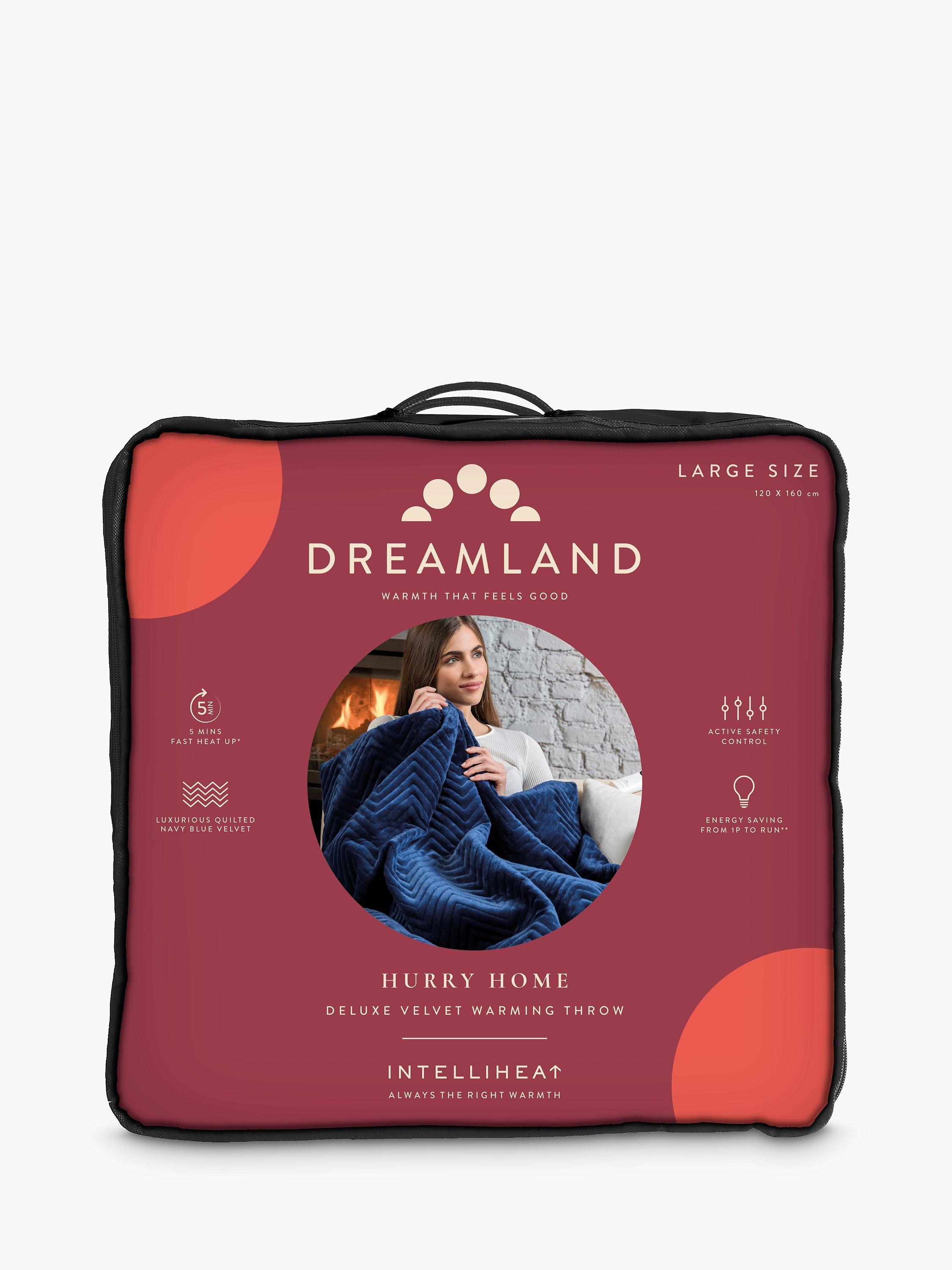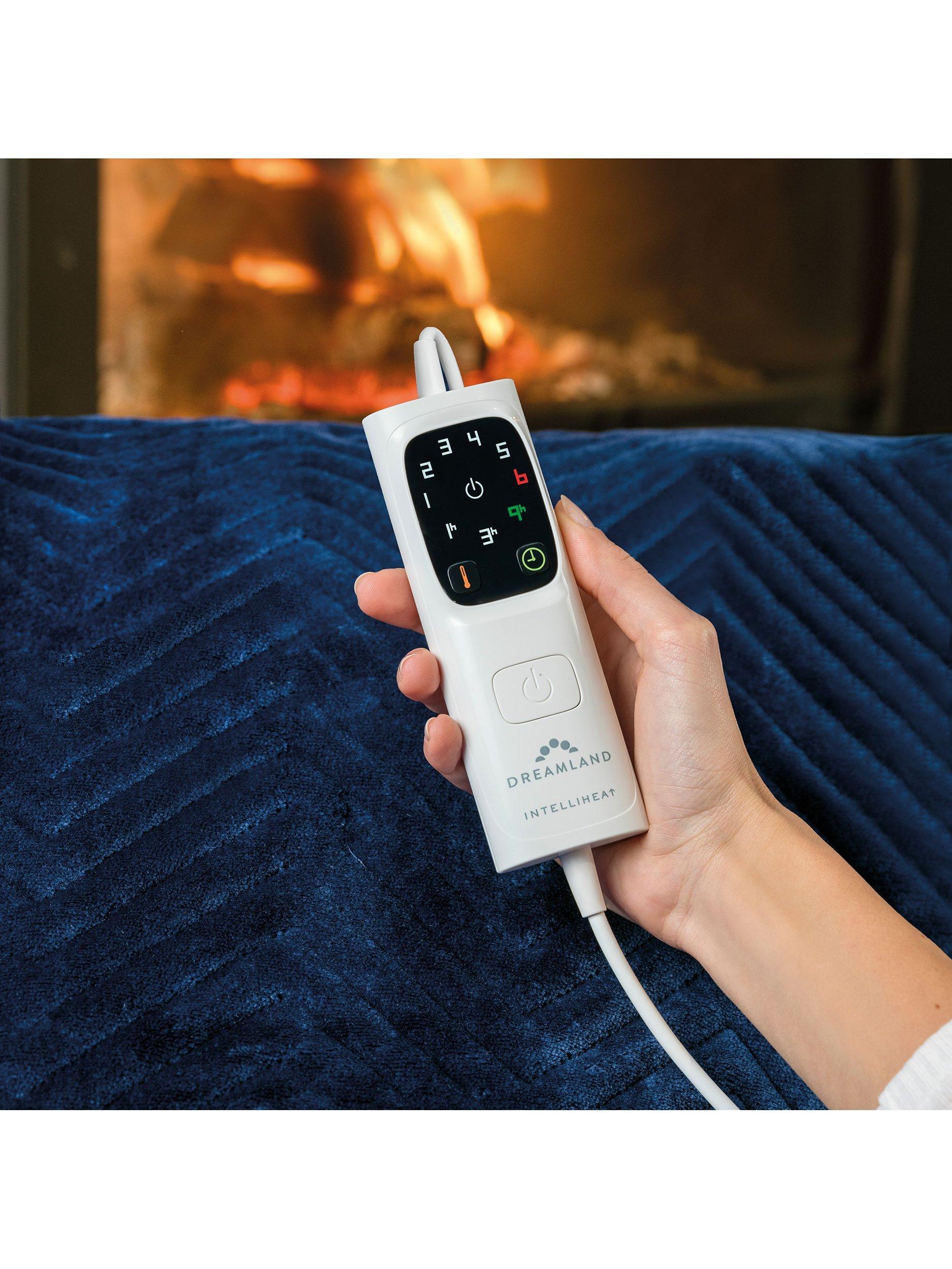 Dreamland's Deluxe Grey Velvet Herringbone Quilted Throw is super-soft and perfect to snuggle under, you will be warm and cosy in minutes thanks to the fast heat Intelliheat + technology. Cleverly responds to temperature changes while you sleep and relax. 5 minute fast heat up time, 6 temperature settings, 1, 3 or 9 hour auto shut off timer, detachable digital control, machine washable and tumble dry safe.