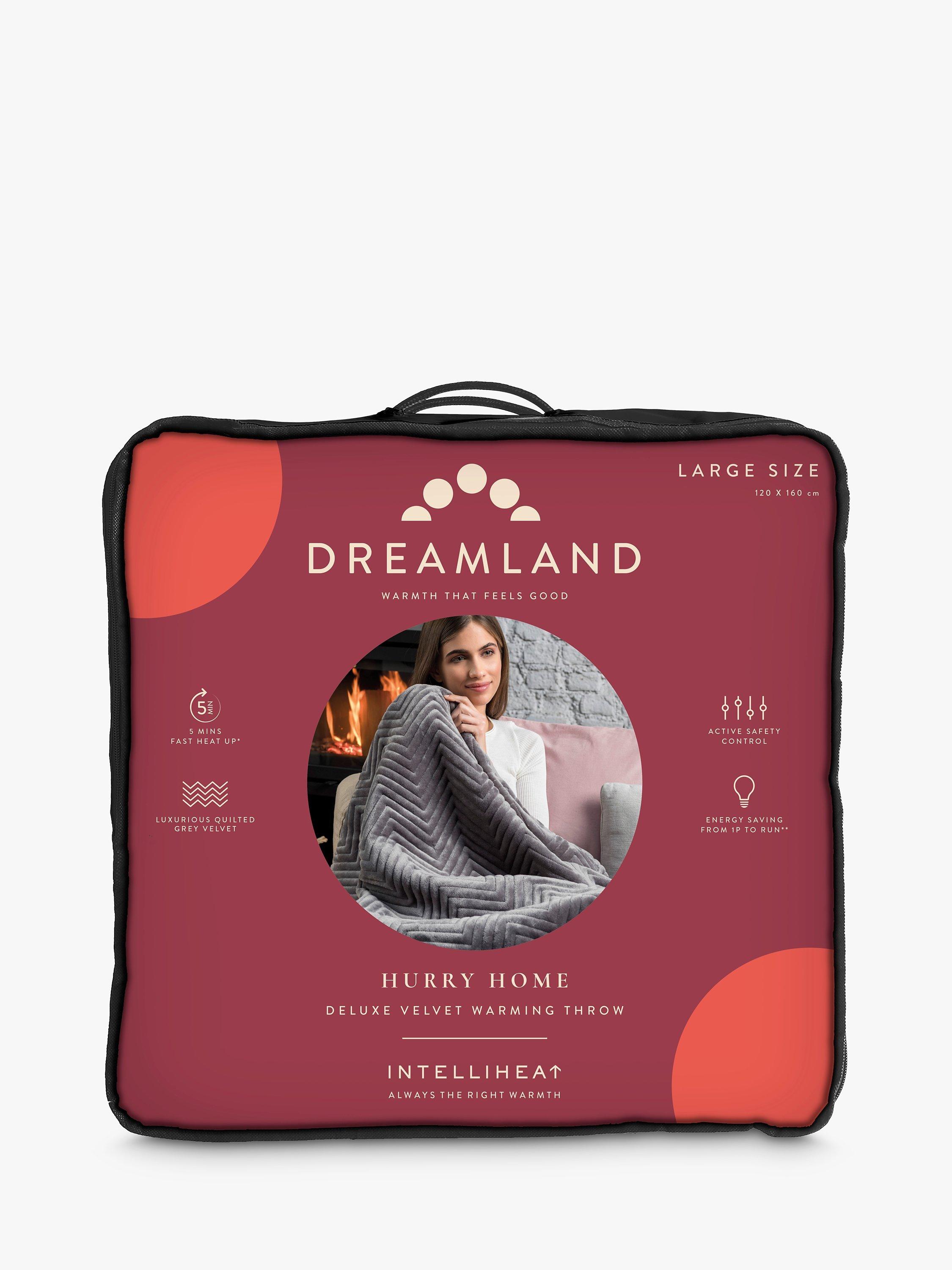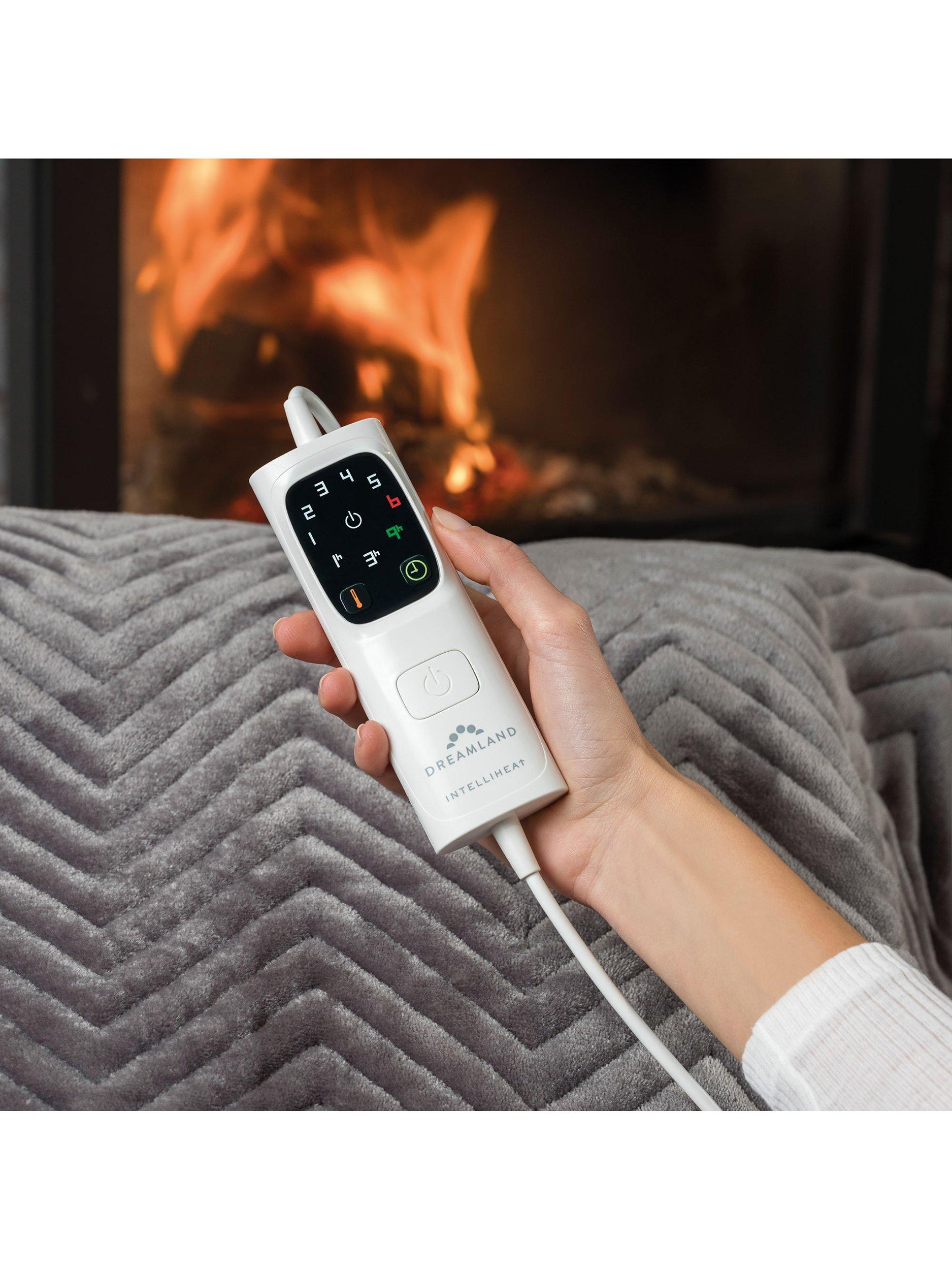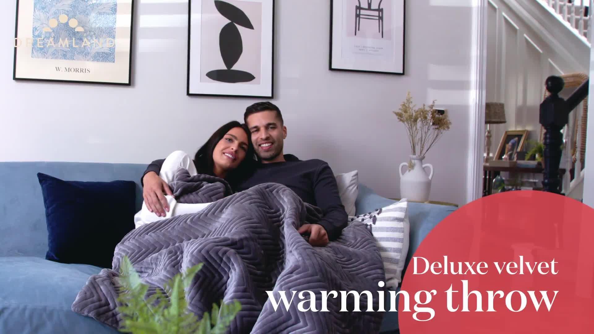 Dreamland's Deluxe Grey Velvet Herringbone Quilted Throw is super-soft and perfect to snuggle under, you will be warm and cosy in minutes thanks to the fast heat Intelliheat + technology. Cleverly responds to temperature changes while you sleep and relax. 5 minute fast heat up time, 6 temperature settings, 1, 3 or 9 hour auto shut off timer, detachable digital control, machine washable and tumble dry safe.