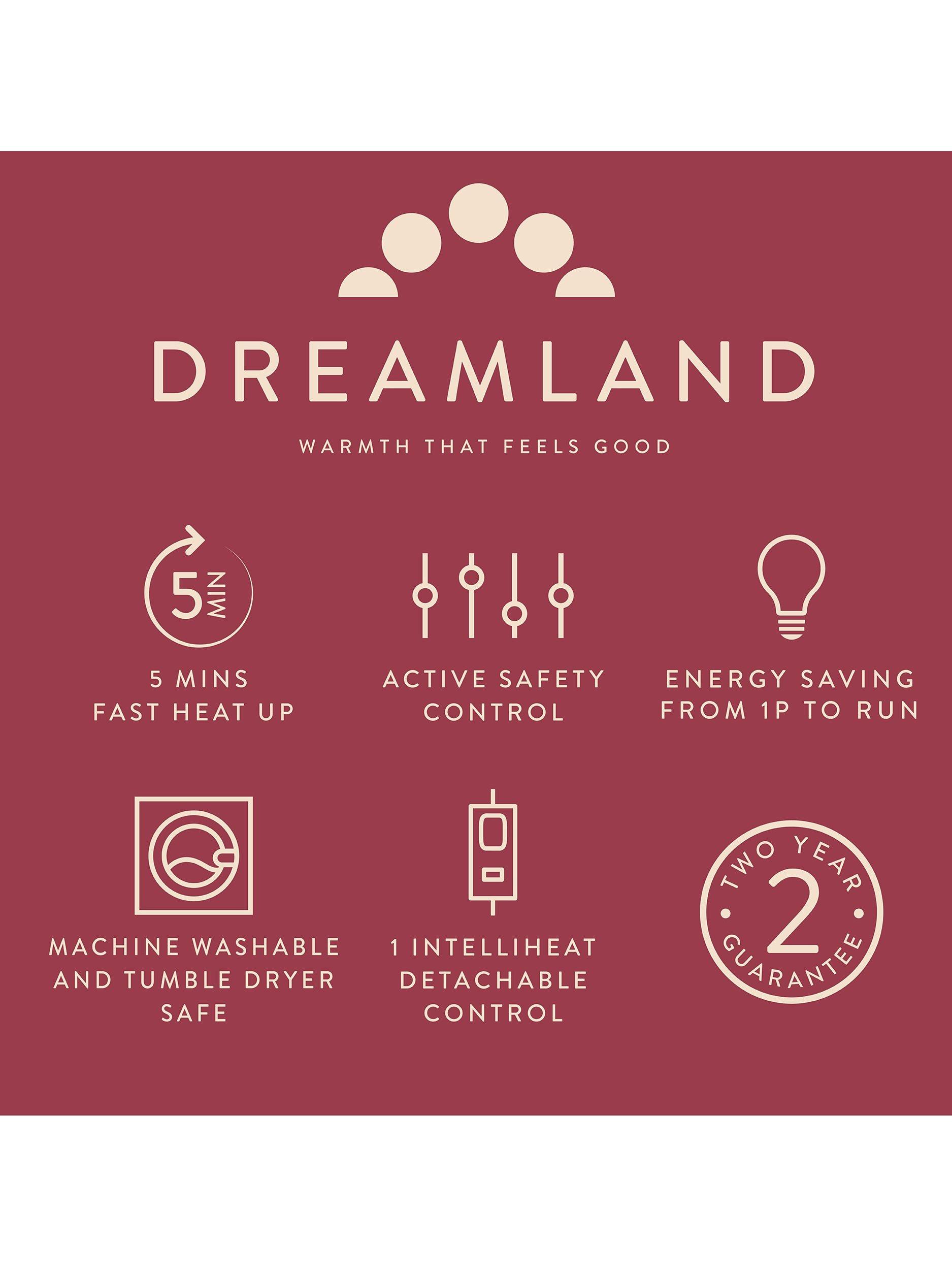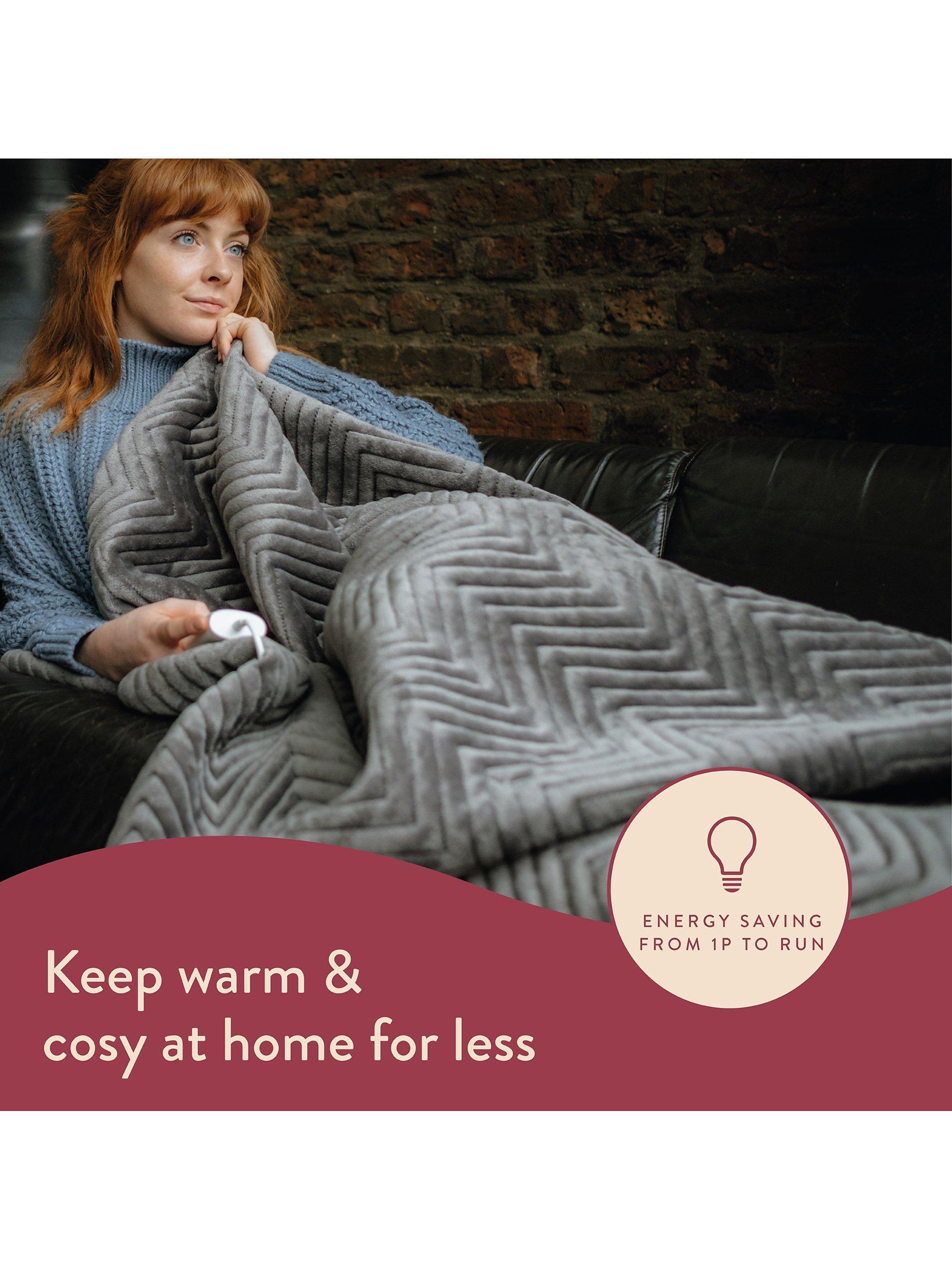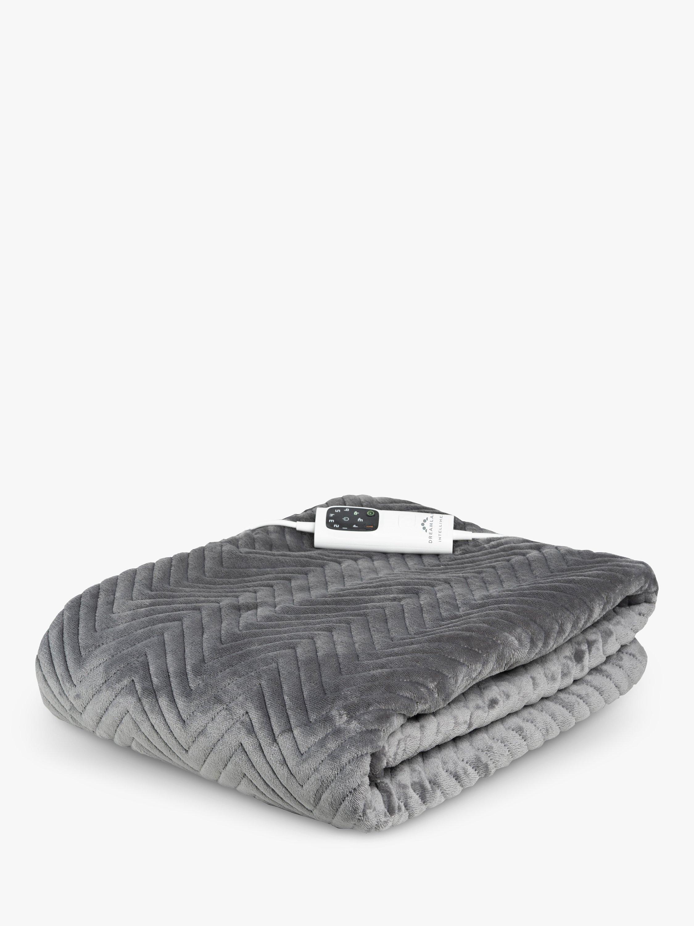 Dreamland's Deluxe Grey Velvet Herringbone Quilted Throw is super-soft and perfect to snuggle under, you will be warm and cosy in minutes thanks to the fast heat Intelliheat + technology. Cleverly responds to temperature changes while you sleep and relax. 5 minute fast heat up time, 6 temperature settings, 1, 3 or 9 hour auto shut off timer, detachable digital control, machine washable and tumble dry safe.