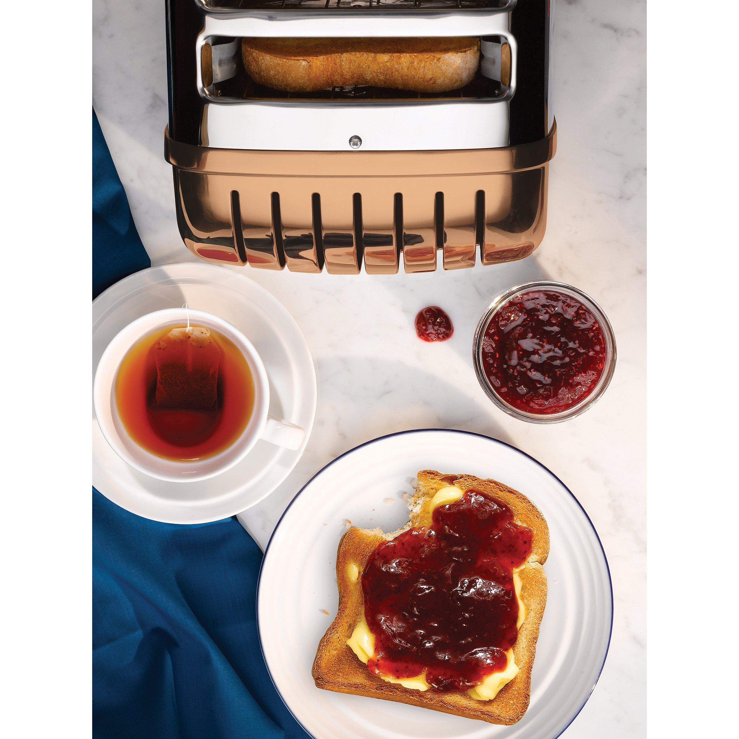 Not only can you select the number of slots in operation – useful for saving electricity – you can also switch between bagel/tea cake and defrost settings. You even can buy an optional sandwich cage to further extend its range, and there’s an adjustable foot to prevent worktop wobble
