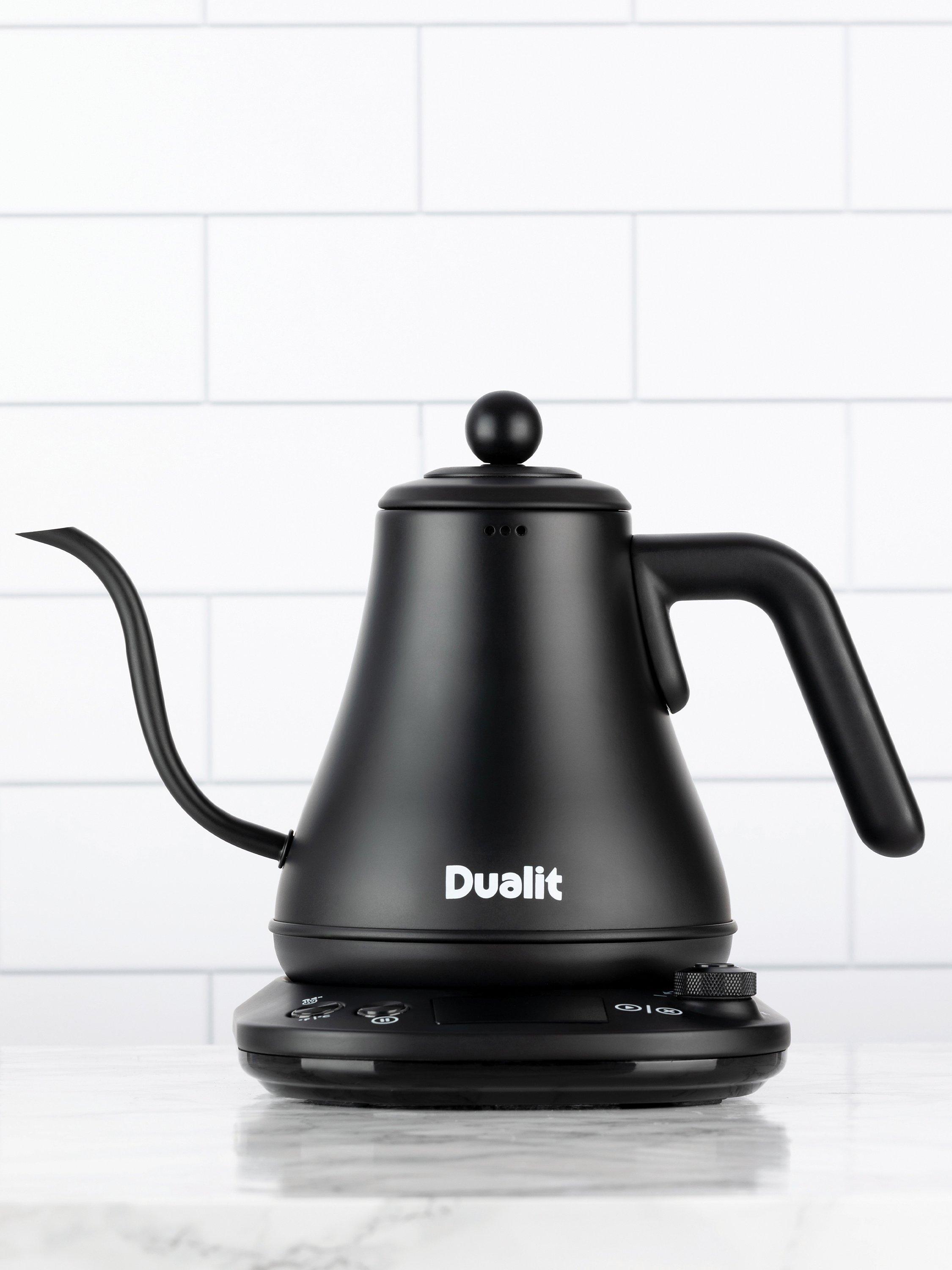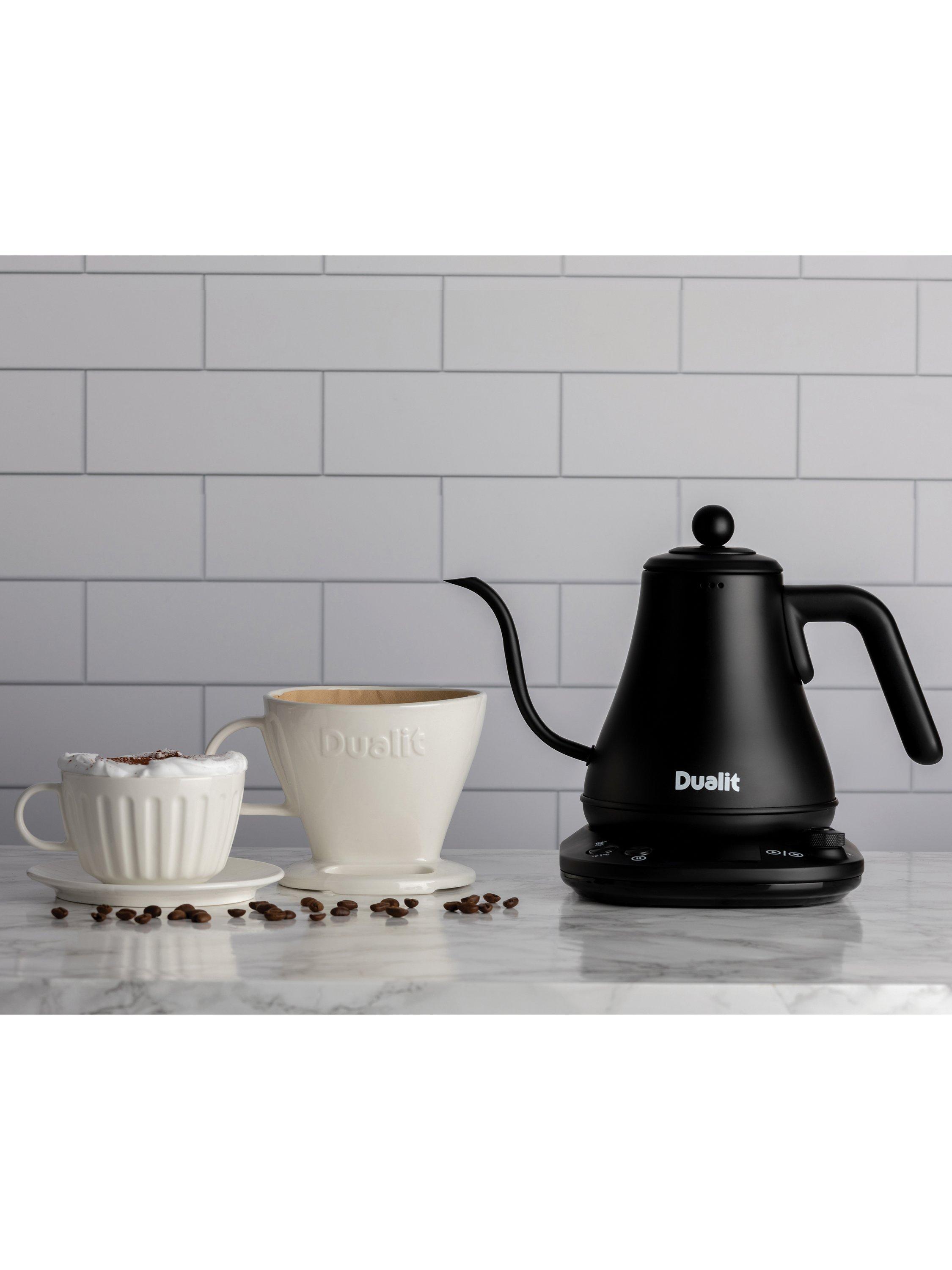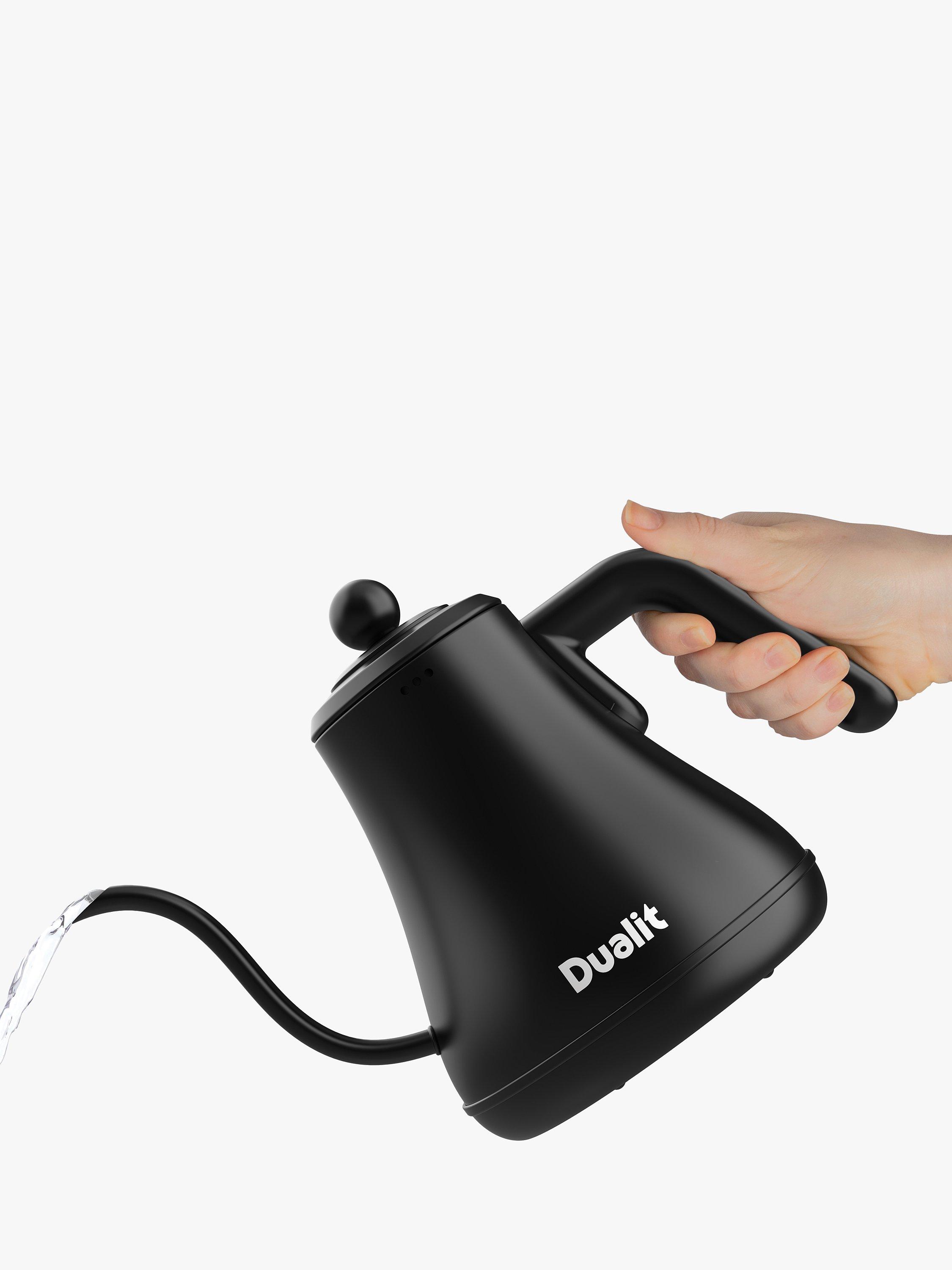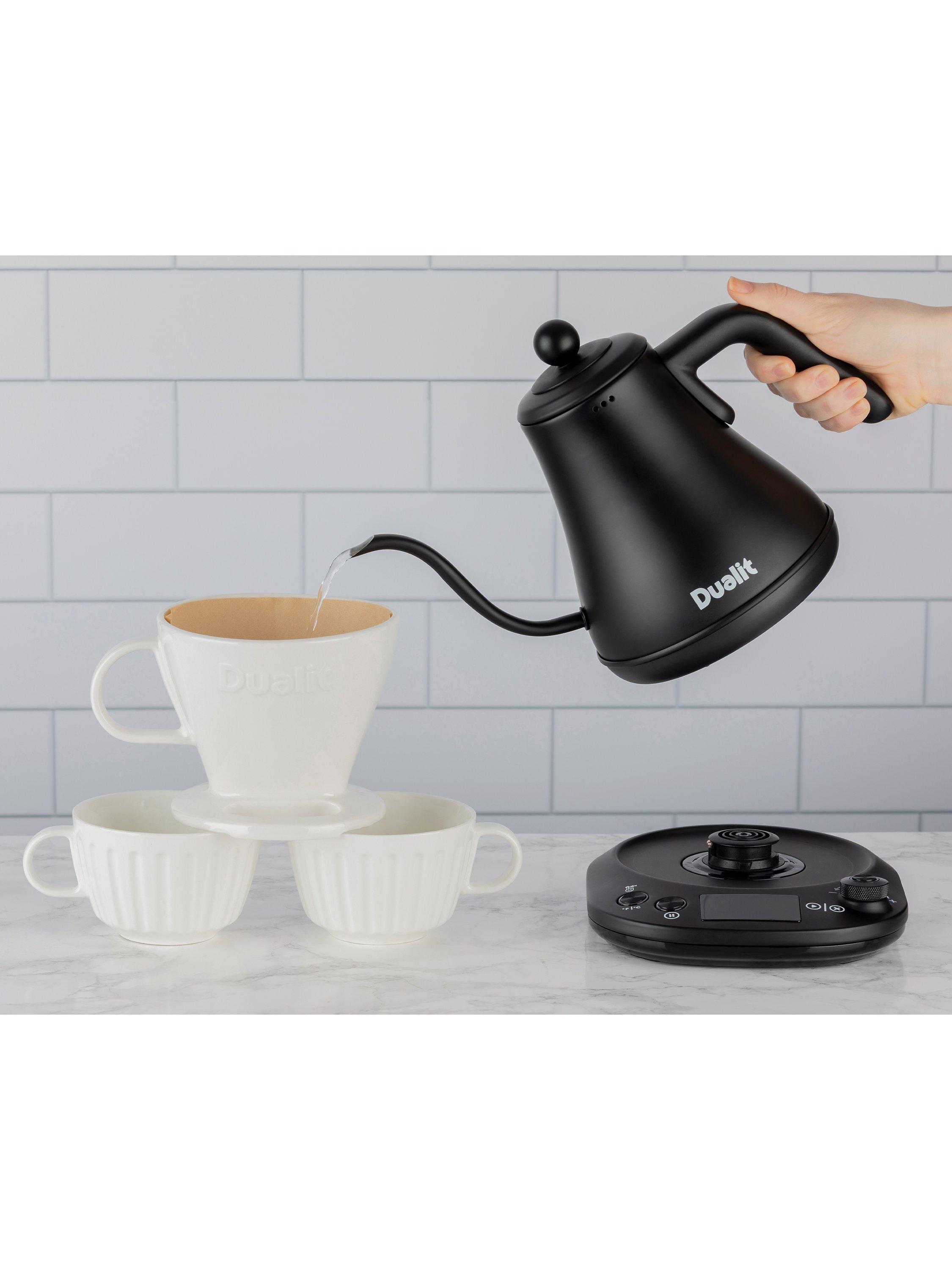 Dualit’s electric Pour Over Kettle is ideal for using with drip through coffee makers or for when you need a precise brewing temperature. The precision spout allows for a more even flow of water for a consistent and slow extraction of coffee, this means the maximum flavour and aroma is extracted from the coffee grounds for an exceptional filter coffee. The Pour Over Kettle also offers a better reach than traditional kettles, thanks to the long and curved gooseneck spout.