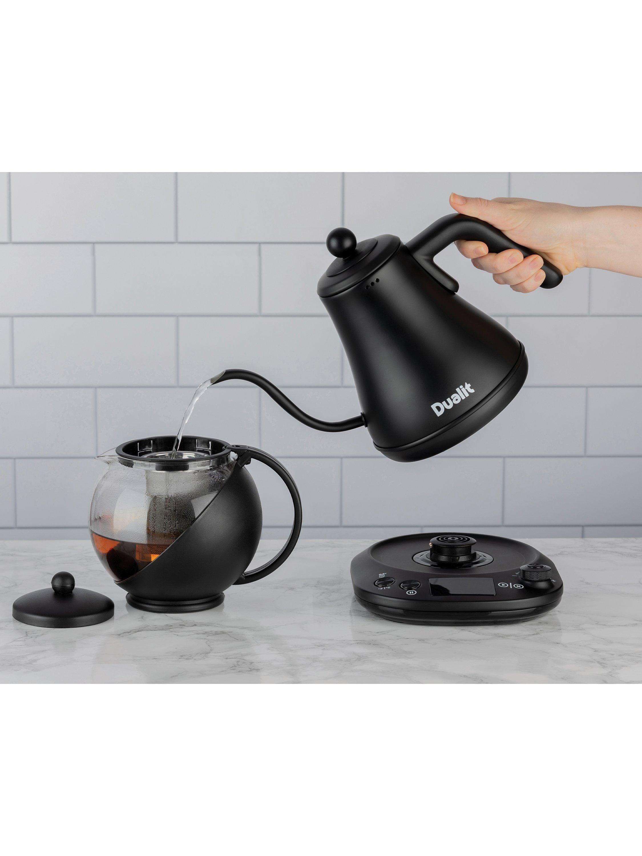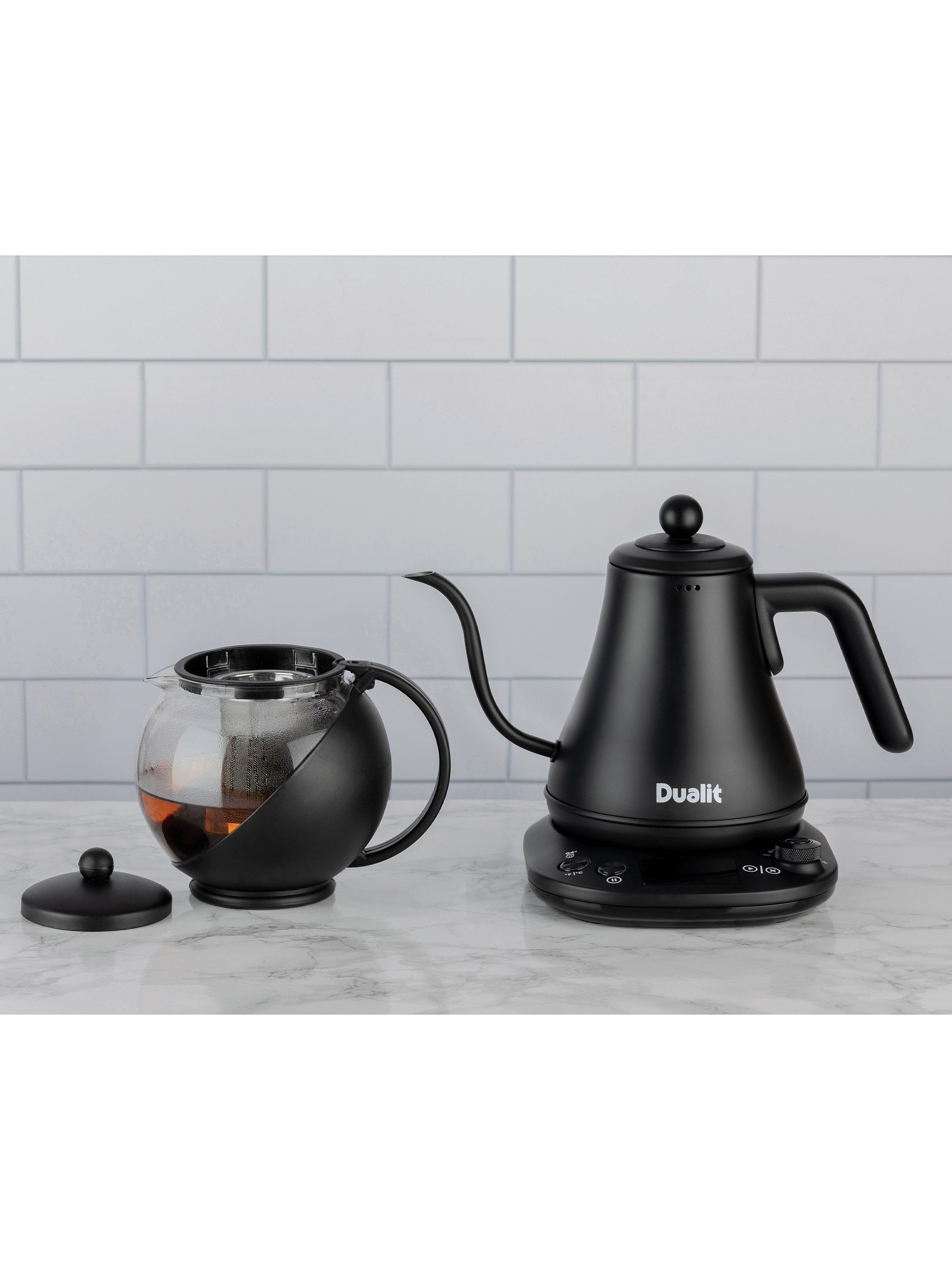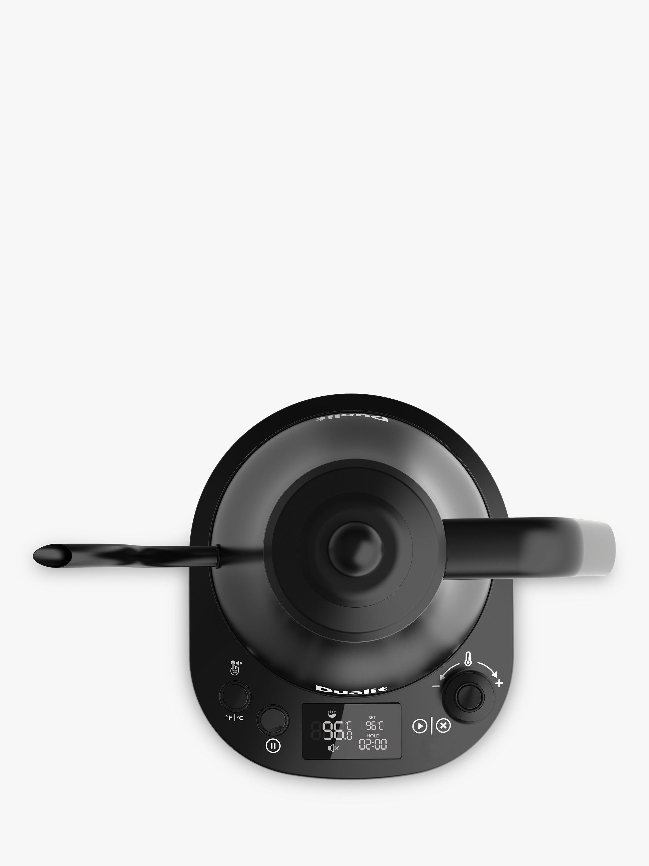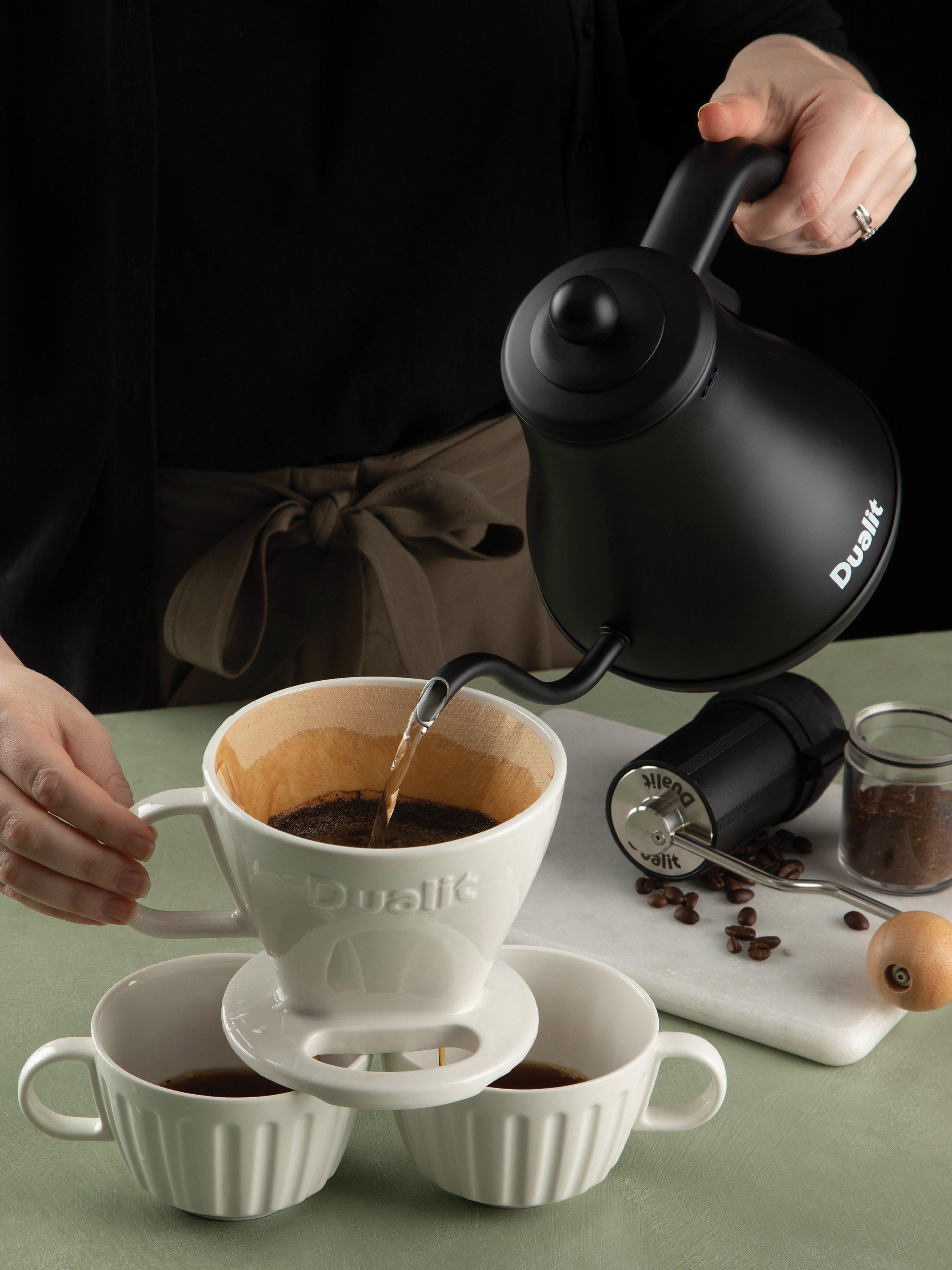 Dualit’s electric Pour Over Kettle is ideal for using with drip through coffee makers or for when you need a precise brewing temperature. The precision spout allows for a more even flow of water for a consistent and slow extraction of coffee, this means the maximum flavour and aroma is extracted from the coffee grounds for an exceptional filter coffee. The Pour Over Kettle also offers a better reach than traditional kettles, thanks to the long and curved gooseneck spout.