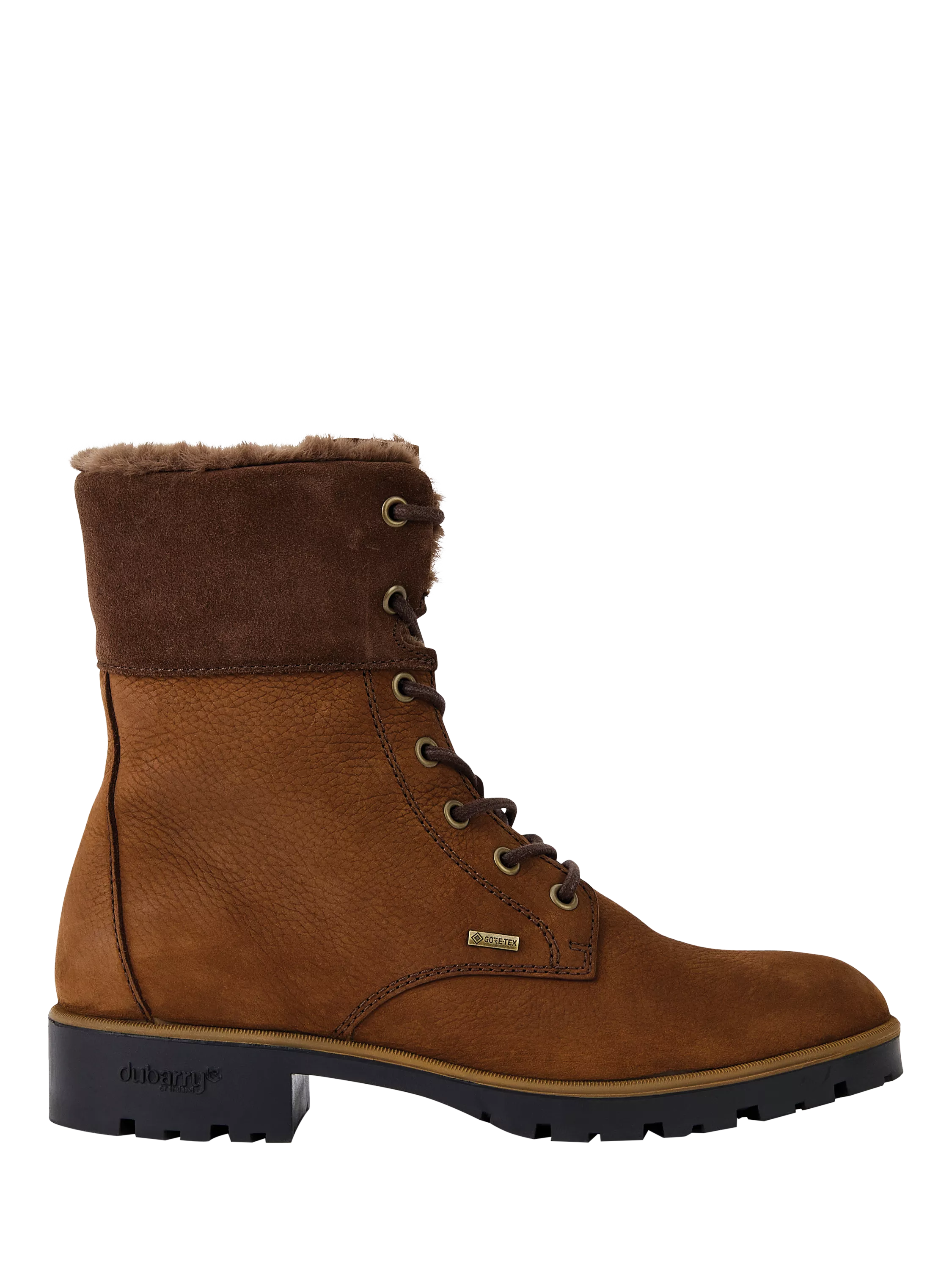 A combination of cosy and rugged, these fold-down ankle boots have a biker boot feel but are lined with snuggly faux fur. Packed with weather-resistant technology, from Dubarry's DryFast-DrysoftTM leather and GORE-TEX lining to shock-absorbing, gripping soles, they are an ideal weekend style with an edge - a great partner to Dubarry leather and wax winter jackets.