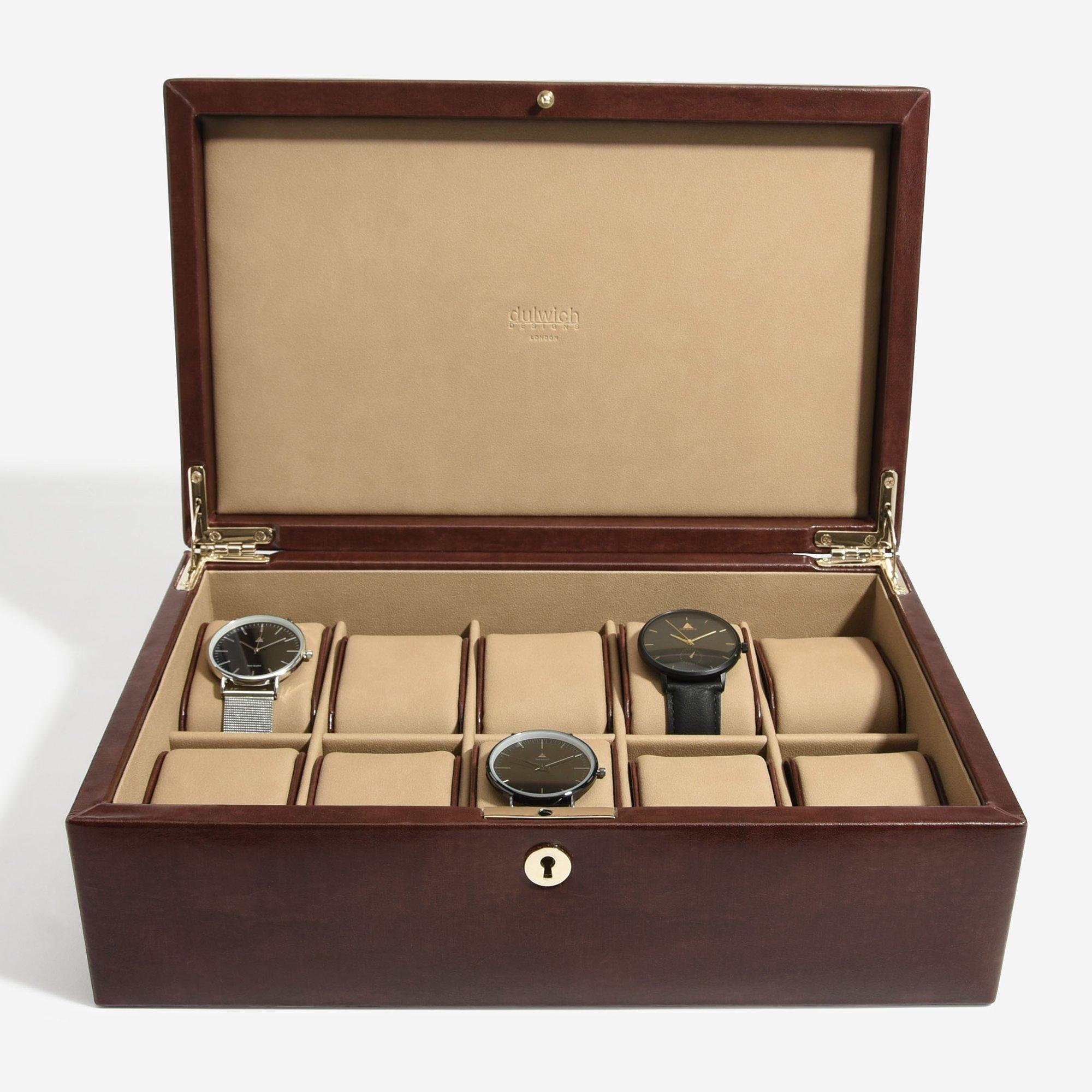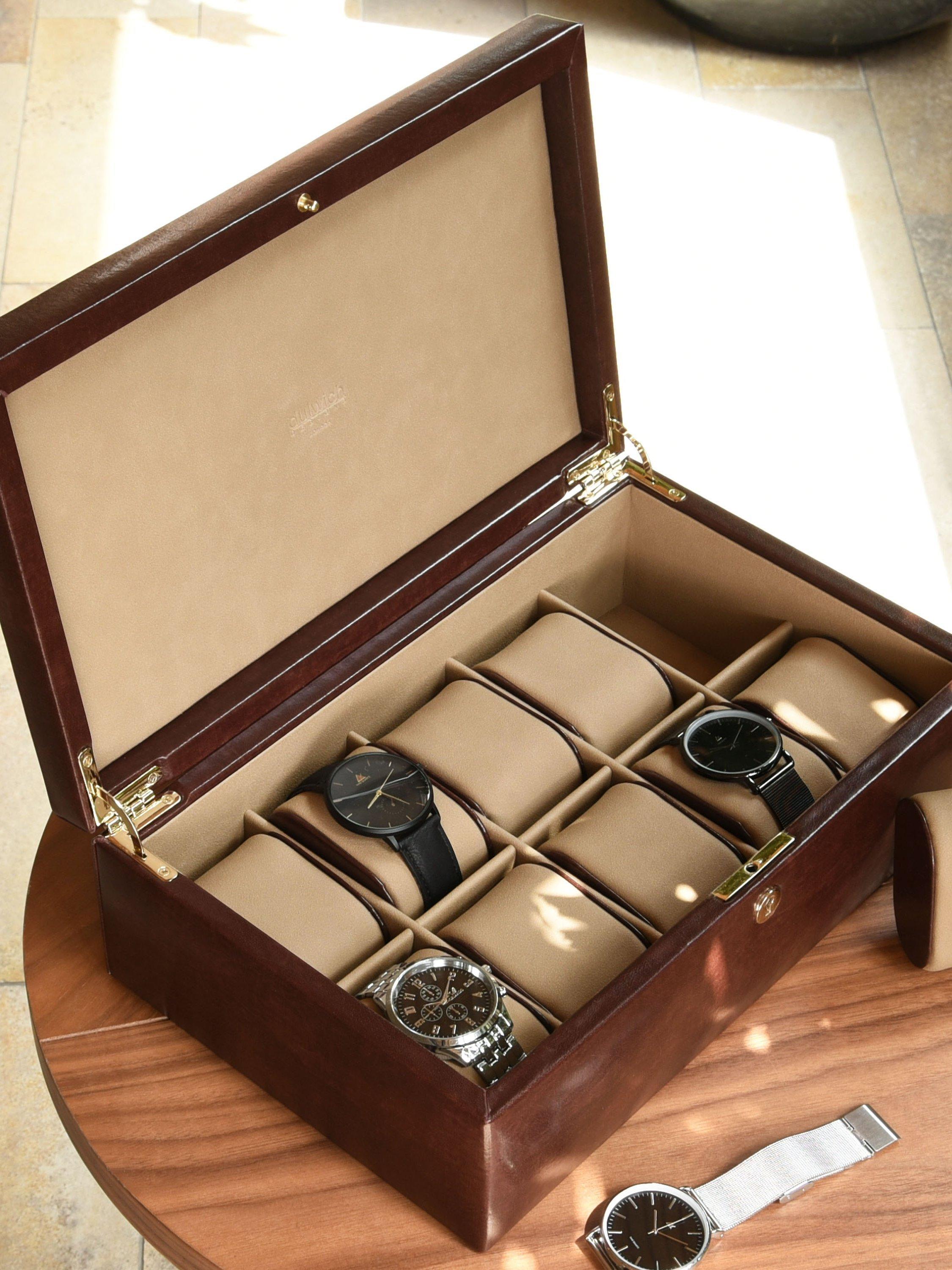 For the more established watch collector, this exquisite watch box can beautifully display up to 10 timepieces.