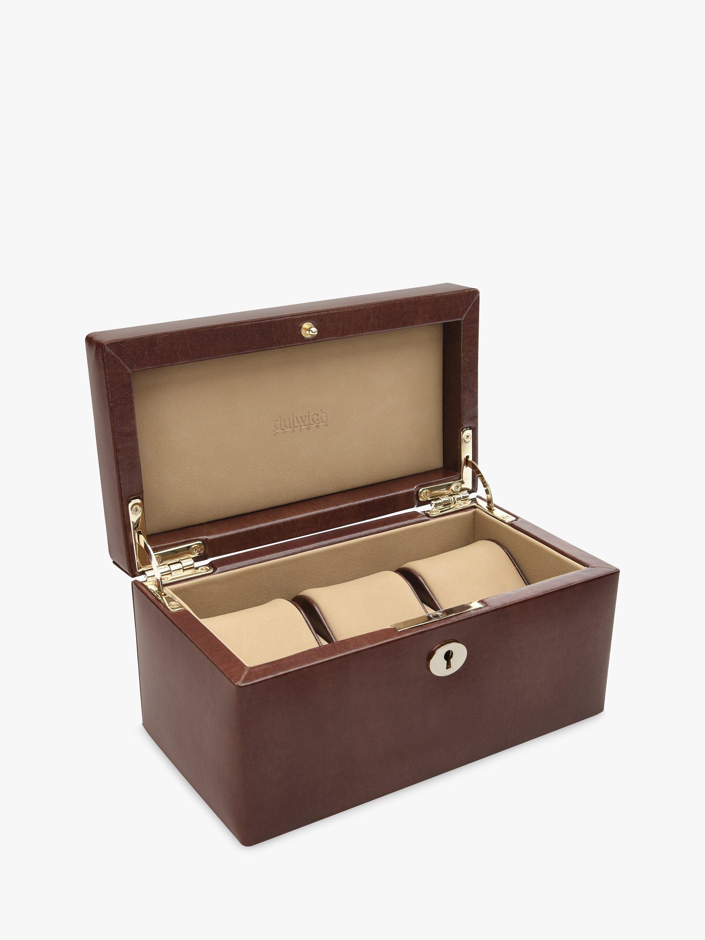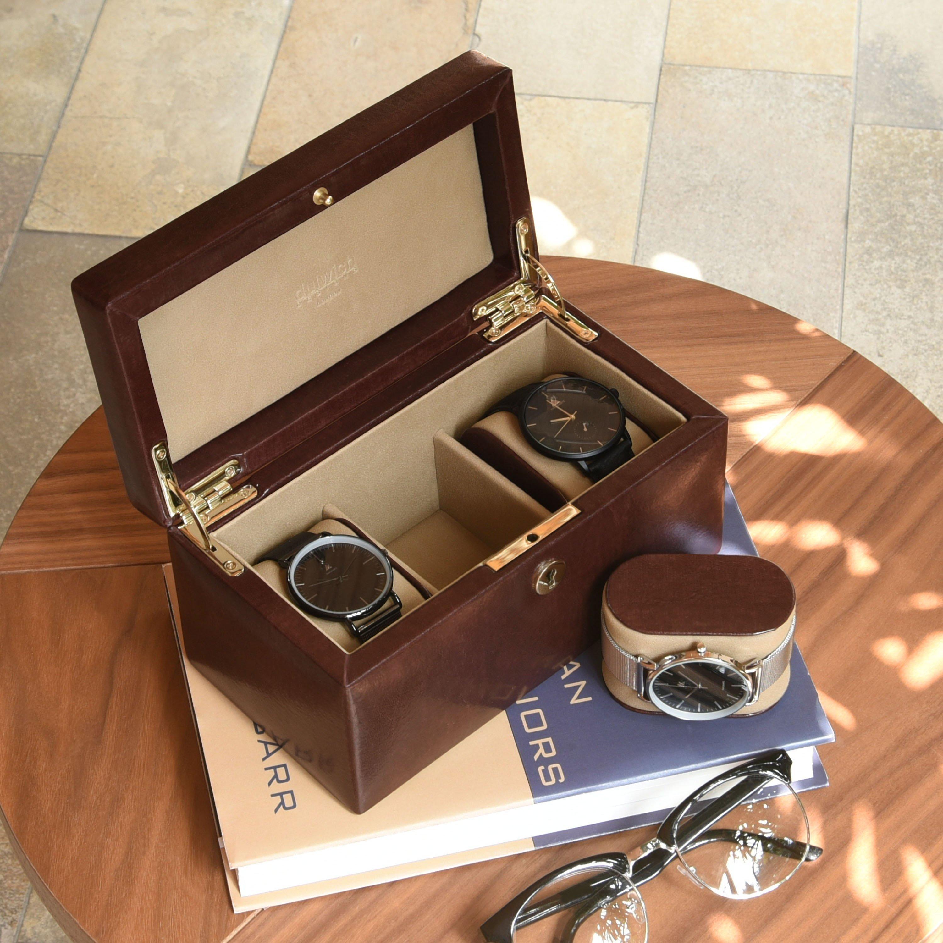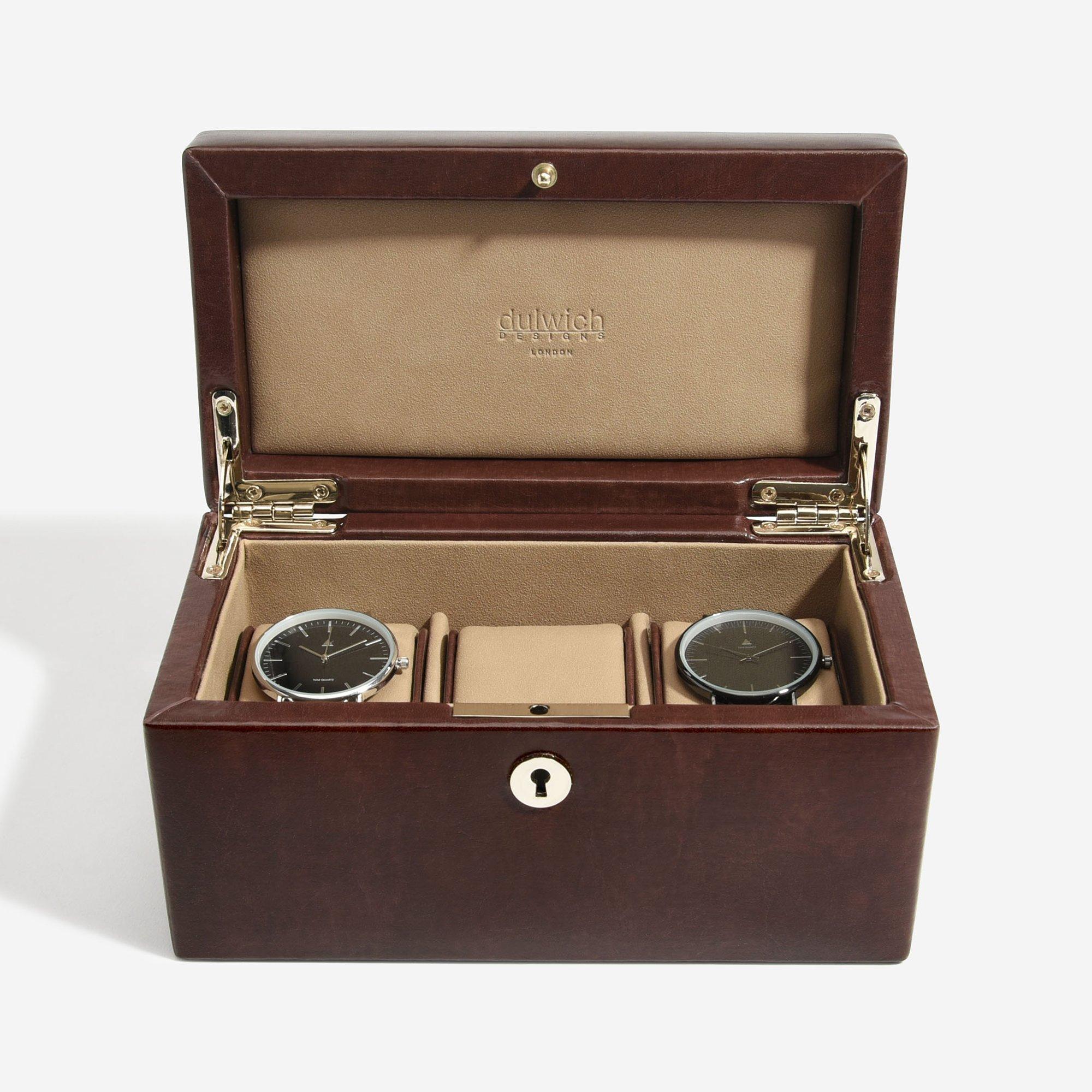 Keep your most precious timepieces stored in this elegant 3 piece watch box. Made from premier bonded leather this is the perfect home for any gentleman's watch collection.