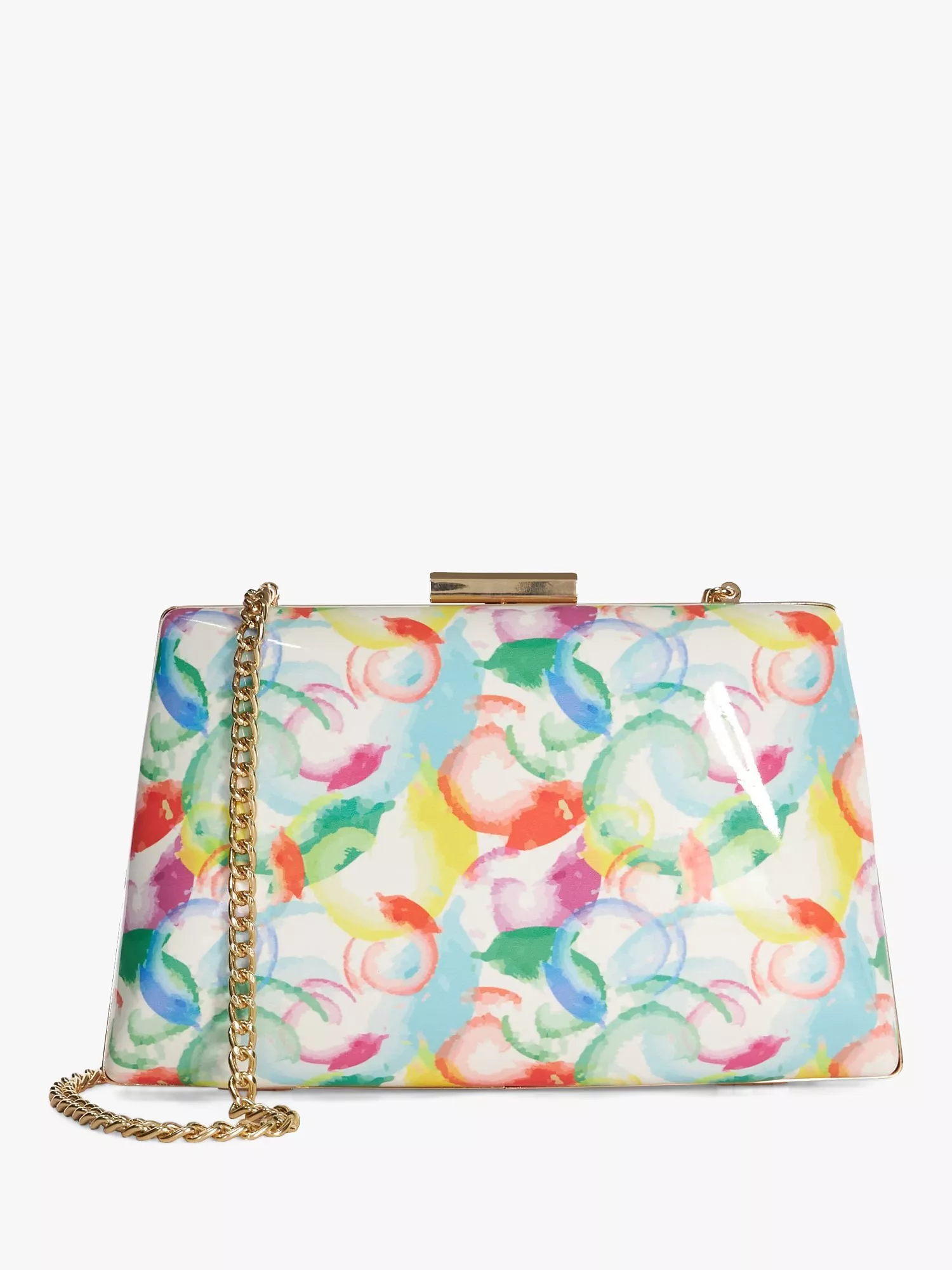 Dune LondonDune Bellaria Abstract Print Patent Angled Frame Box Clutch Bag, Multi