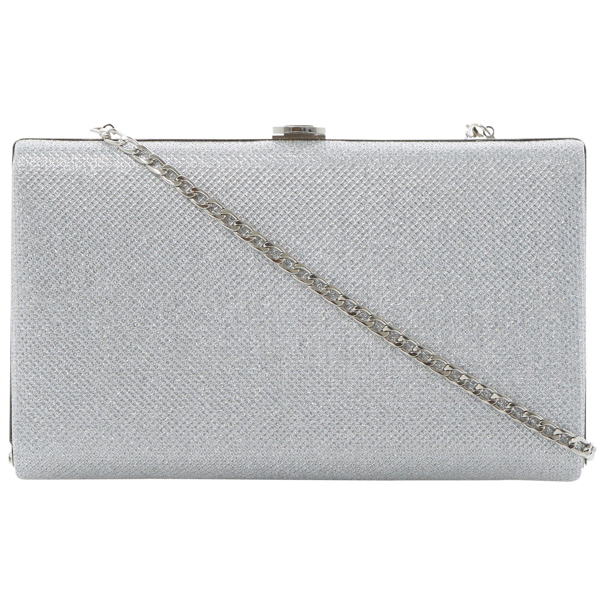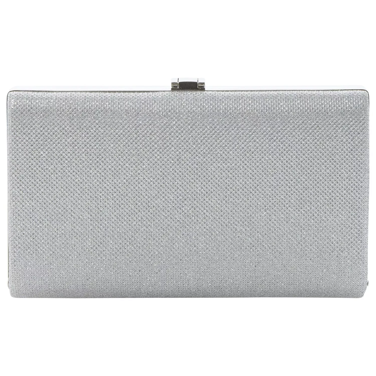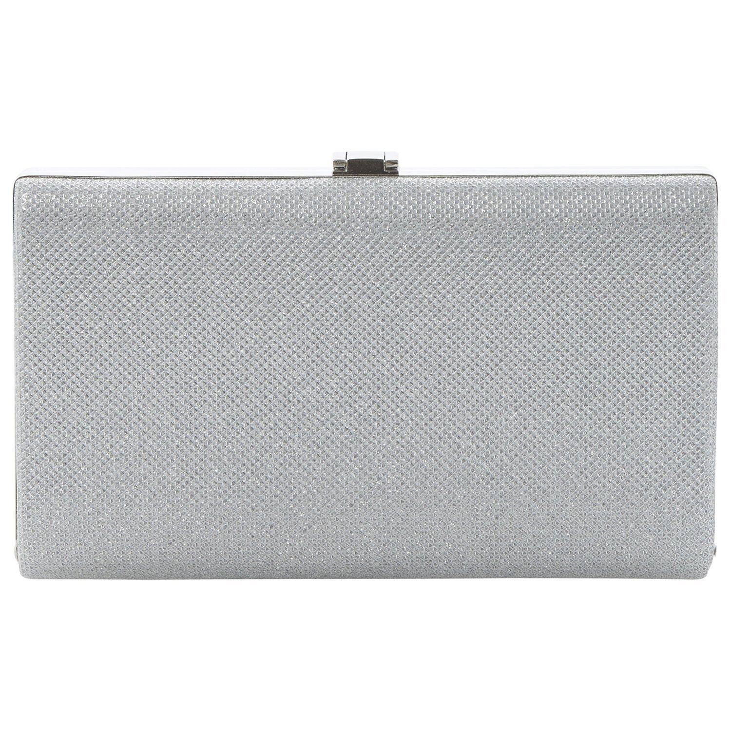 Add a subtle hint of glitz and glamour to your evening ensembles with this elegant boxy clutch bag, which contains a light metallic thread throughout the body.