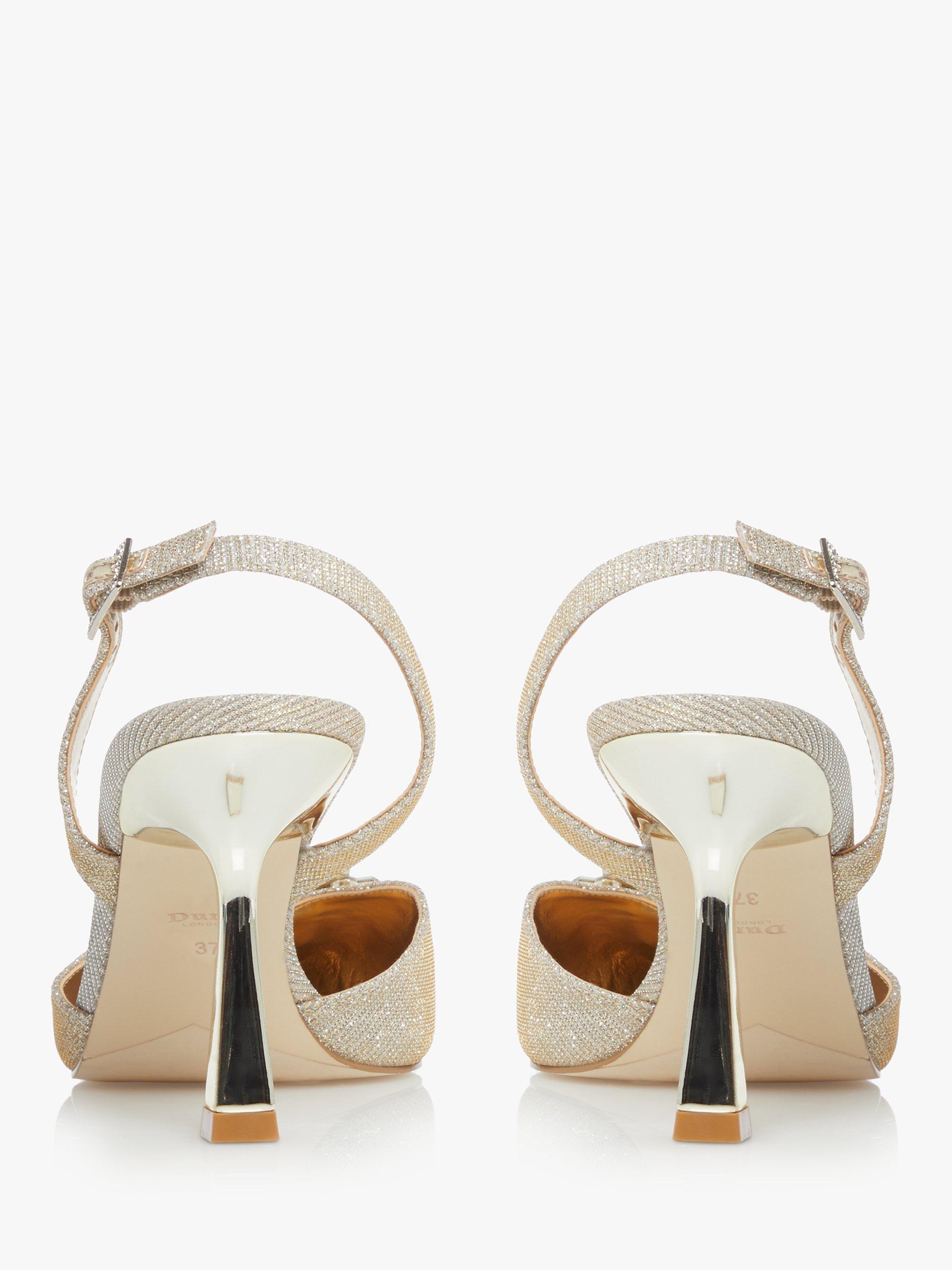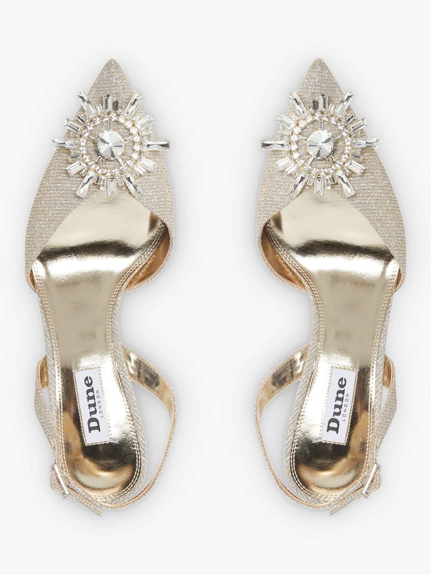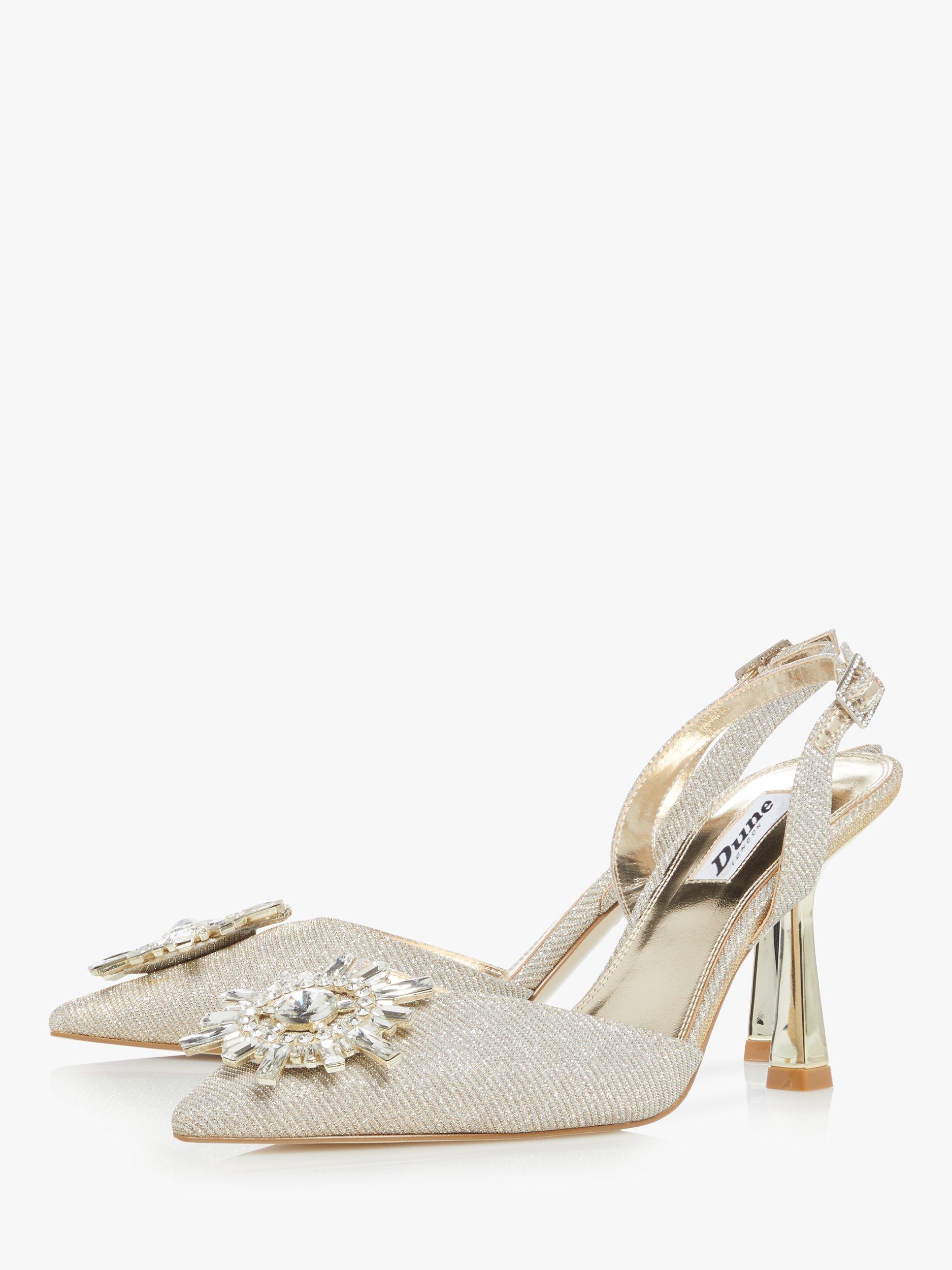Introduce elegance to your look with this slingback heel from Dune. This feminine style features an ankle strap with a classic buckle fastening. It's adorned with a sparkling stone brooch and perfect for occasions.
