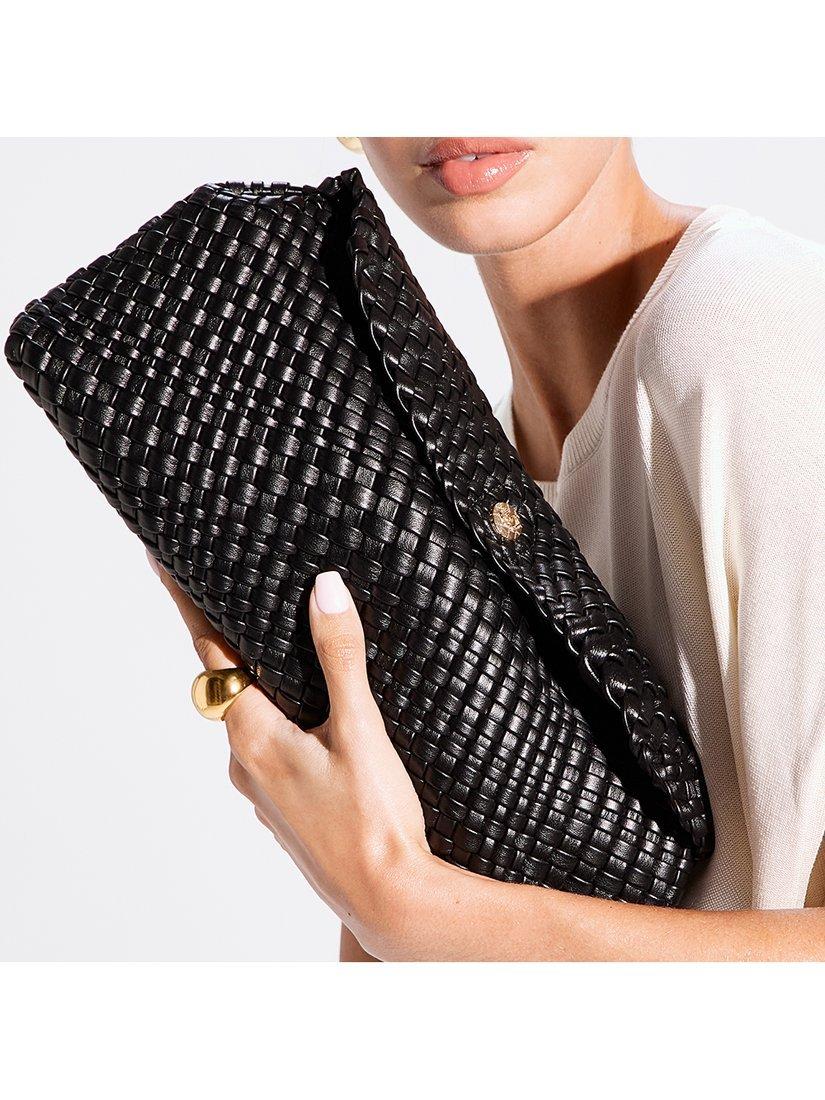 Encourage is the latest addition to Dune's coveted Deliberate family. Featuring its signature weave, this refined piece seamlessly transitions from a hand-held clutch to a chic cross-body profile thanks to the adjustable and removable strap.