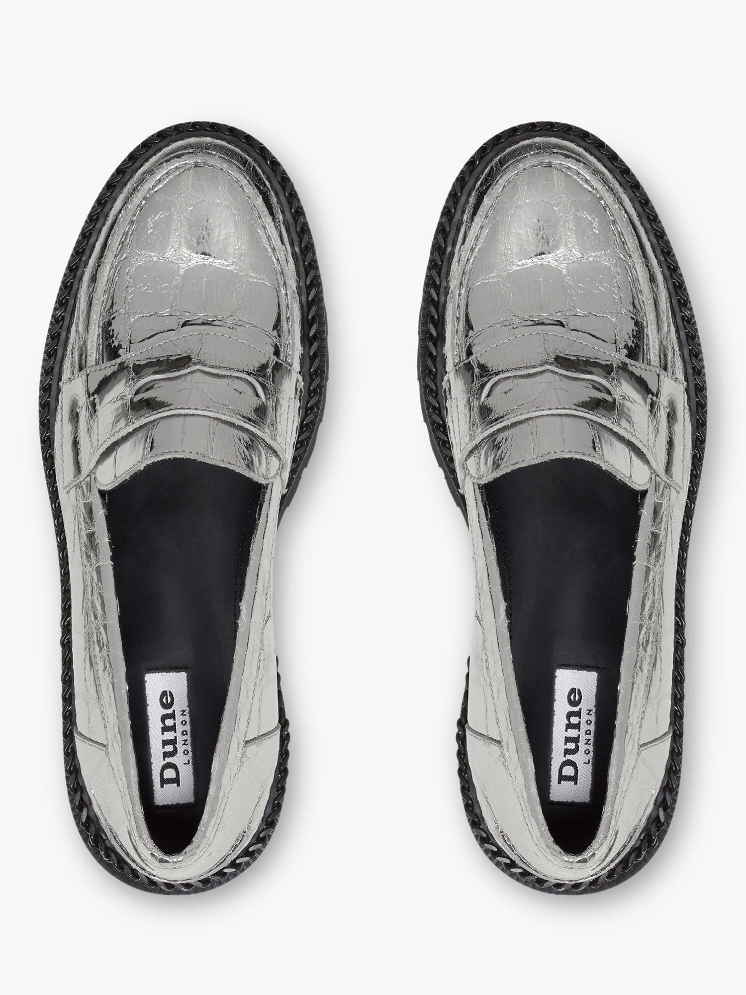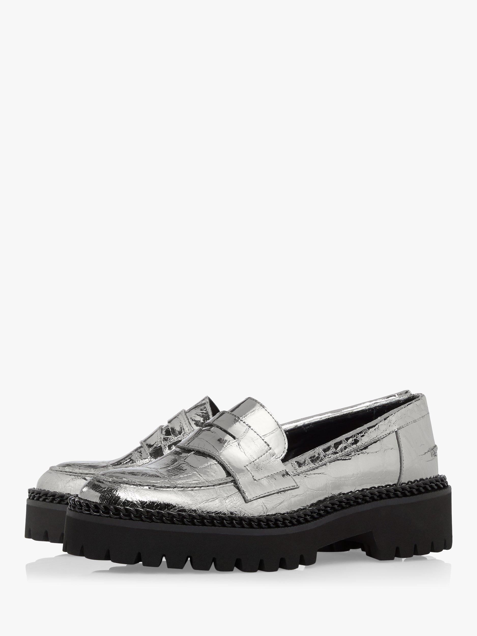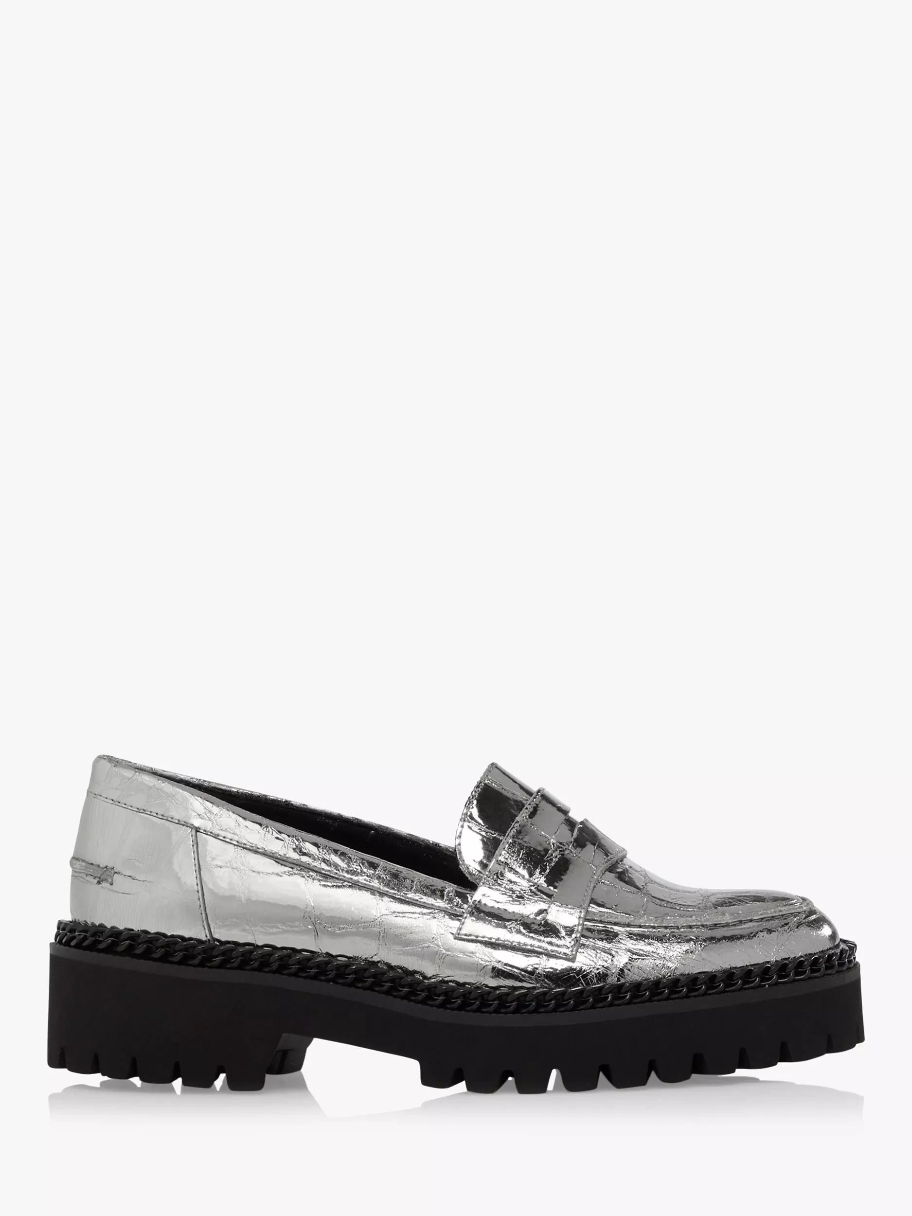 Elevate your style with the chunky Glorious loafers from Dune. Sat on a cleated sole these shoes are the perfect smart-casual option, completing the style is a metal chain effect trim to edge the sole.
