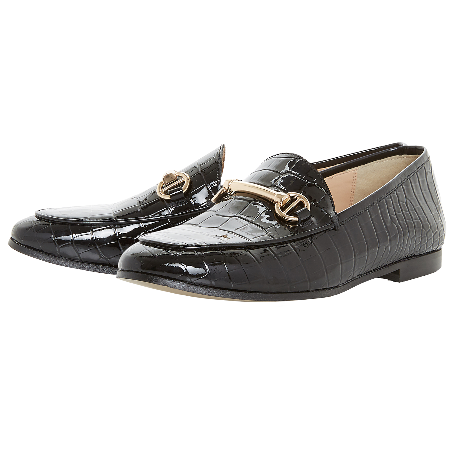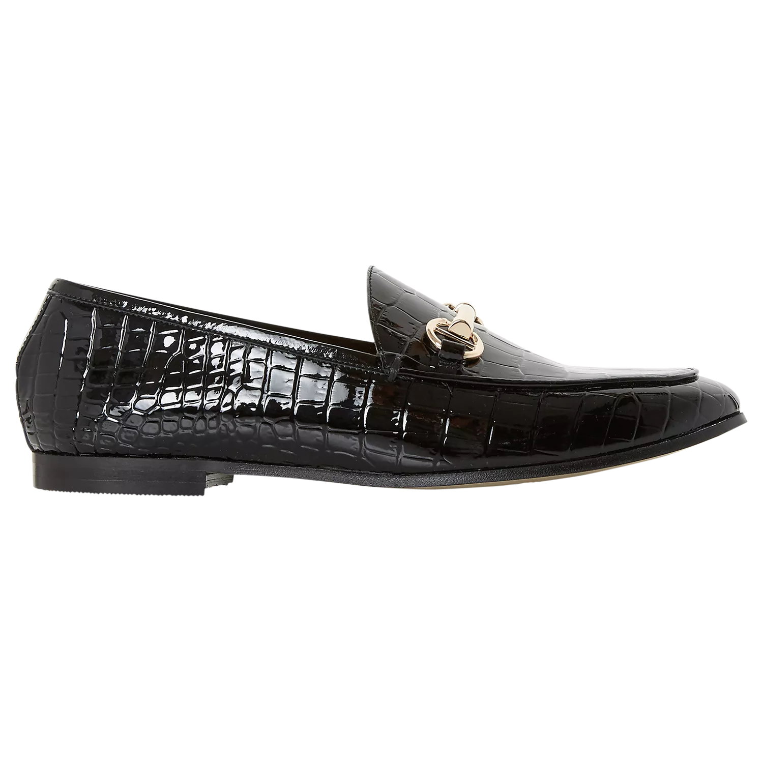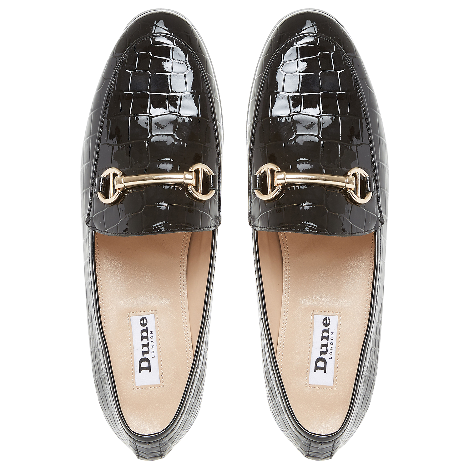 Choose a classic design with these Guilt loafers from Dune. Featuring a slip on design with traditional metallic detail at the front and a slight block heel for comfort.