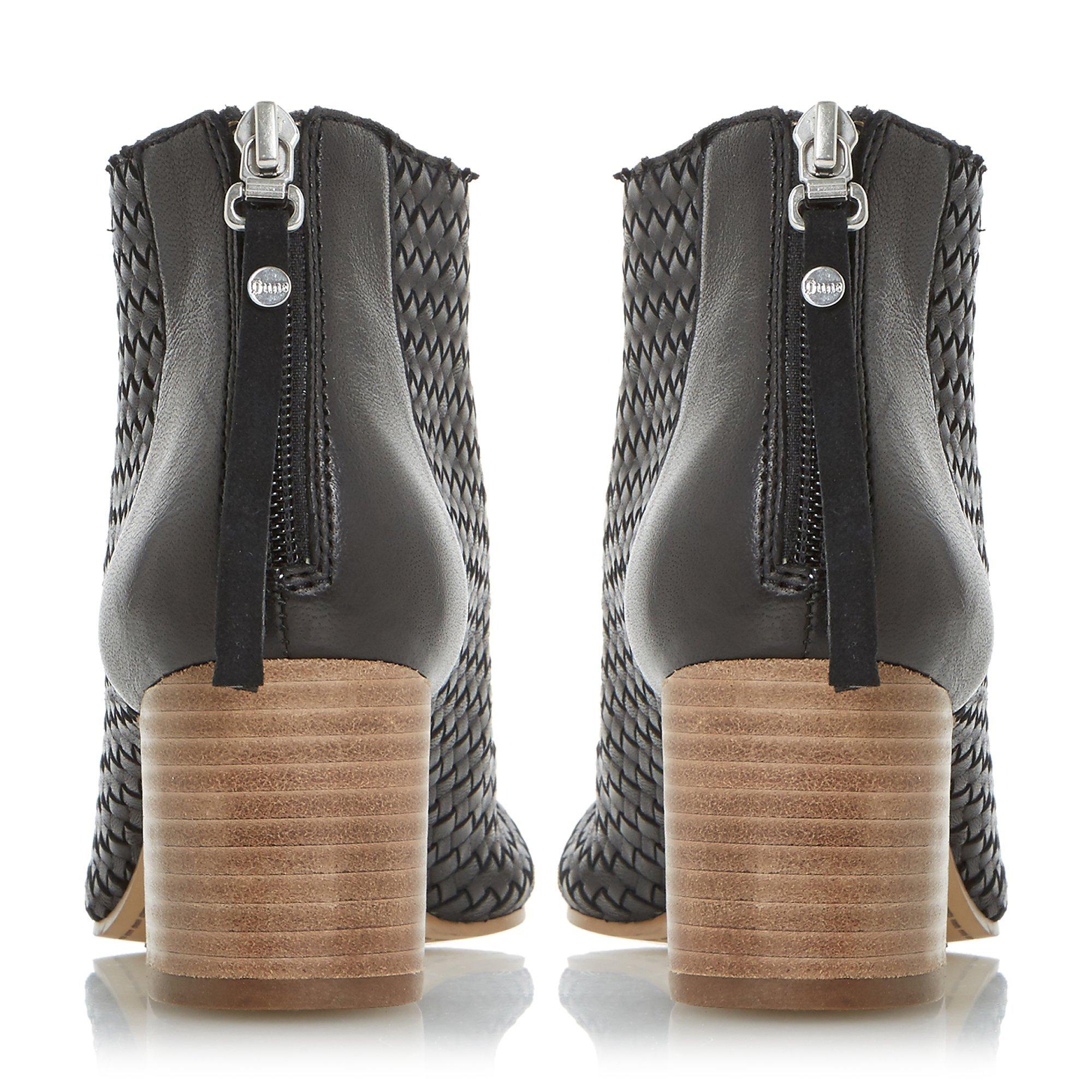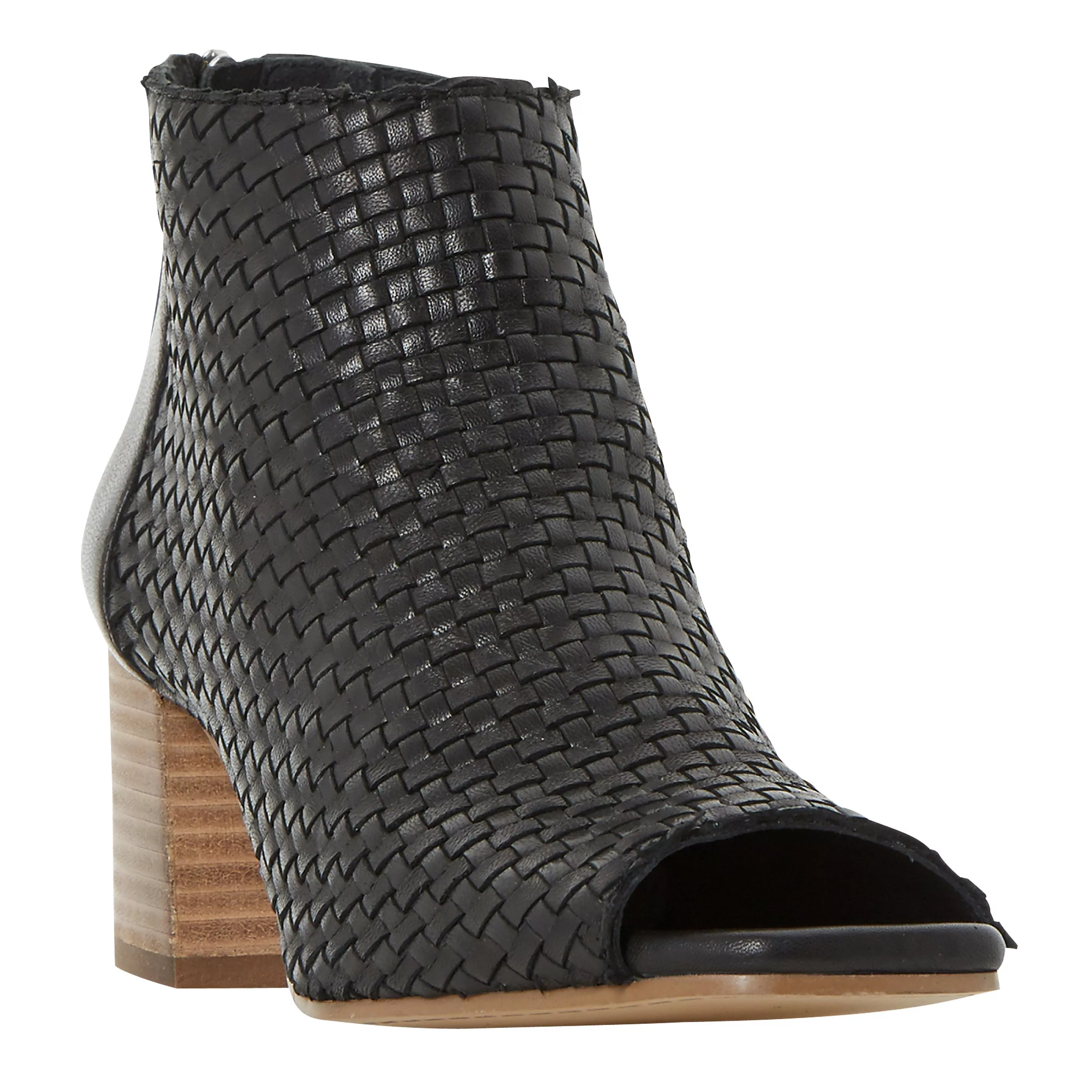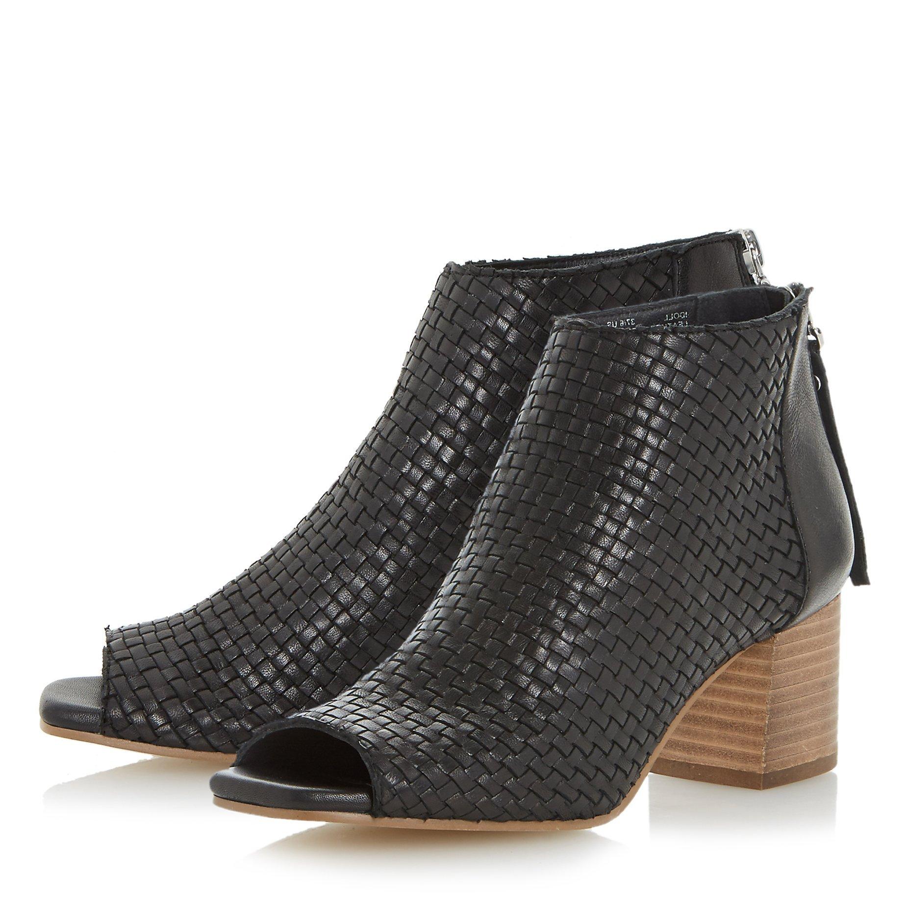 Featuring an ankle high design with a secure zip fastening at the back, an elegant peep toe and soft fabric lining. Sitting on a mid block heel, this pair are finished with a unique, weave effect on the upper.