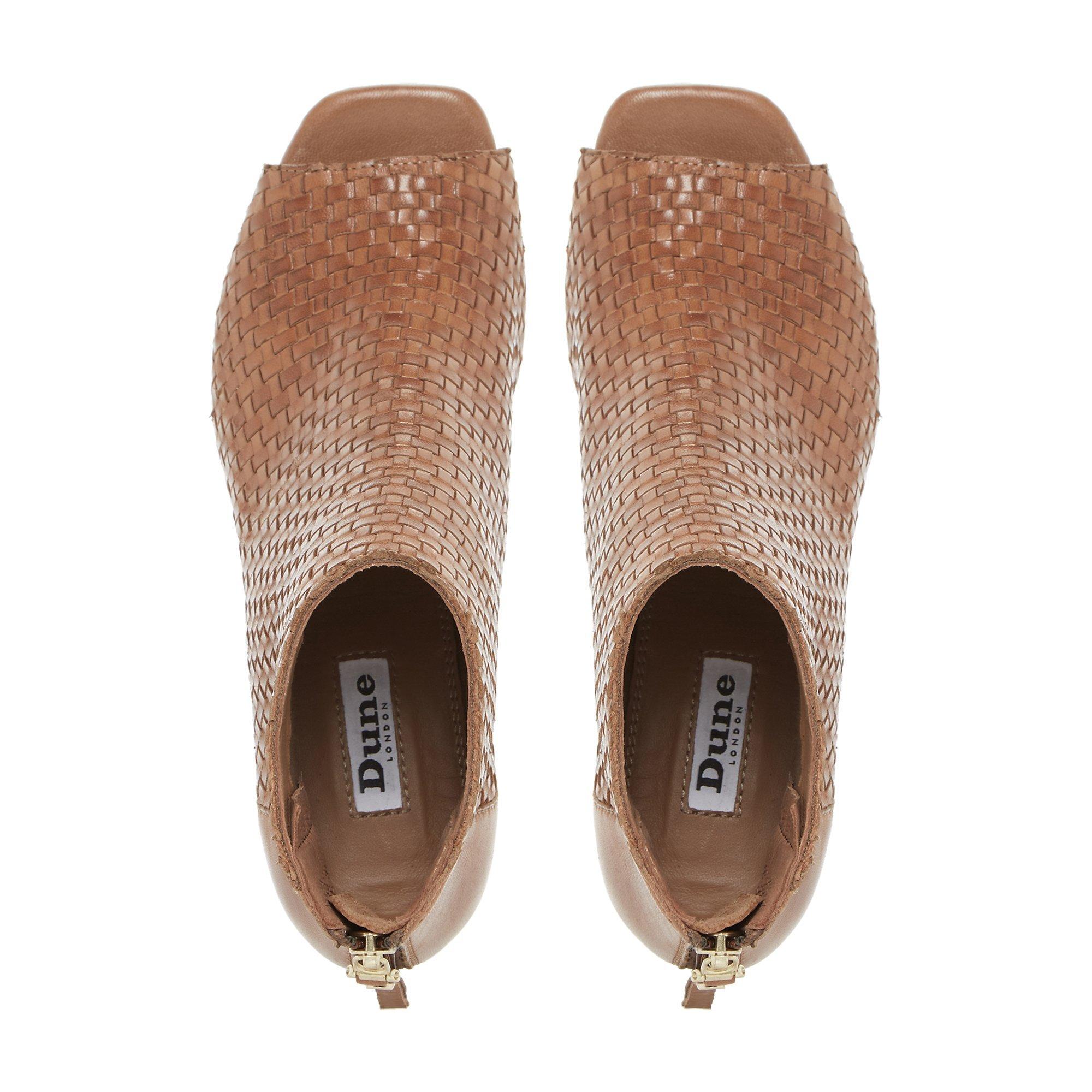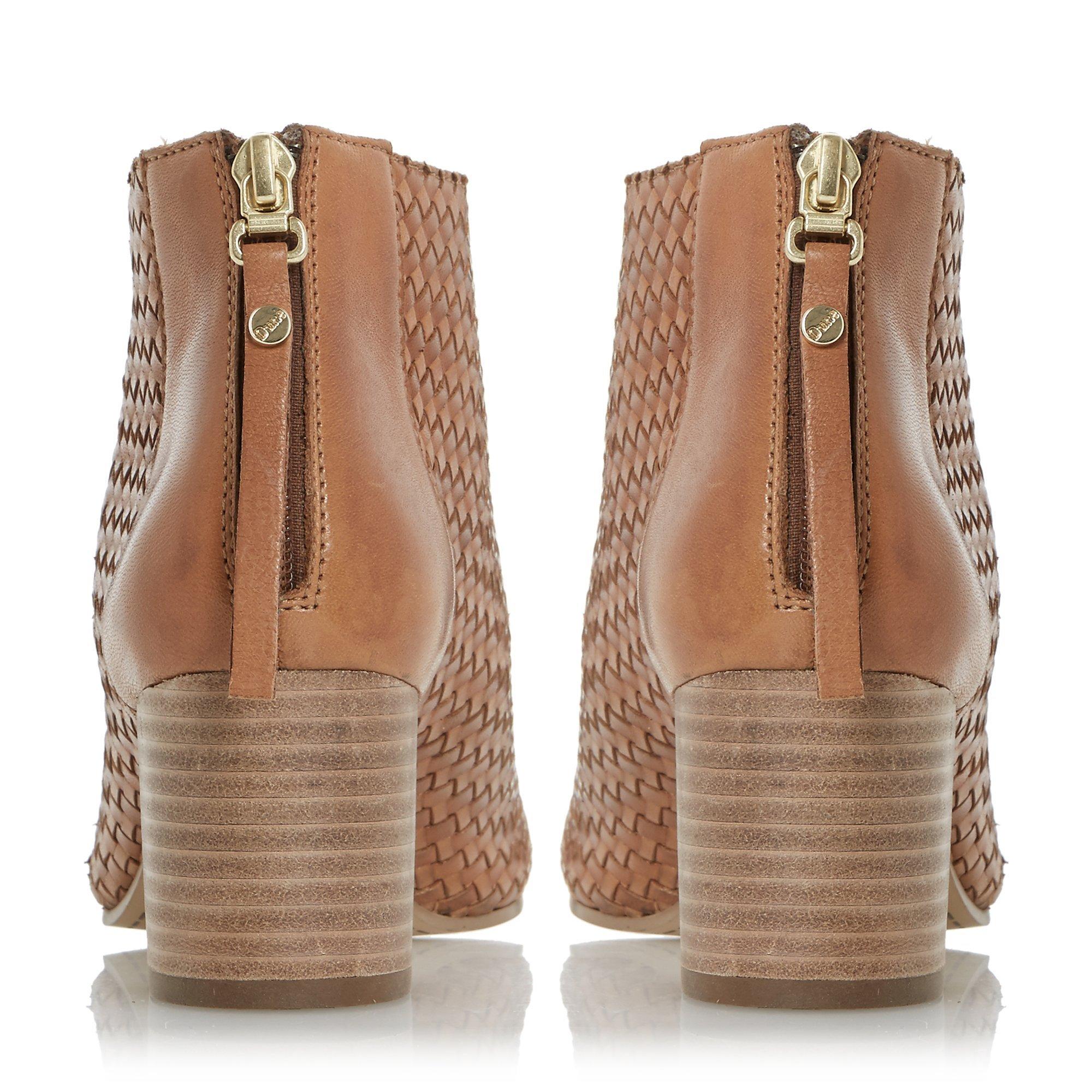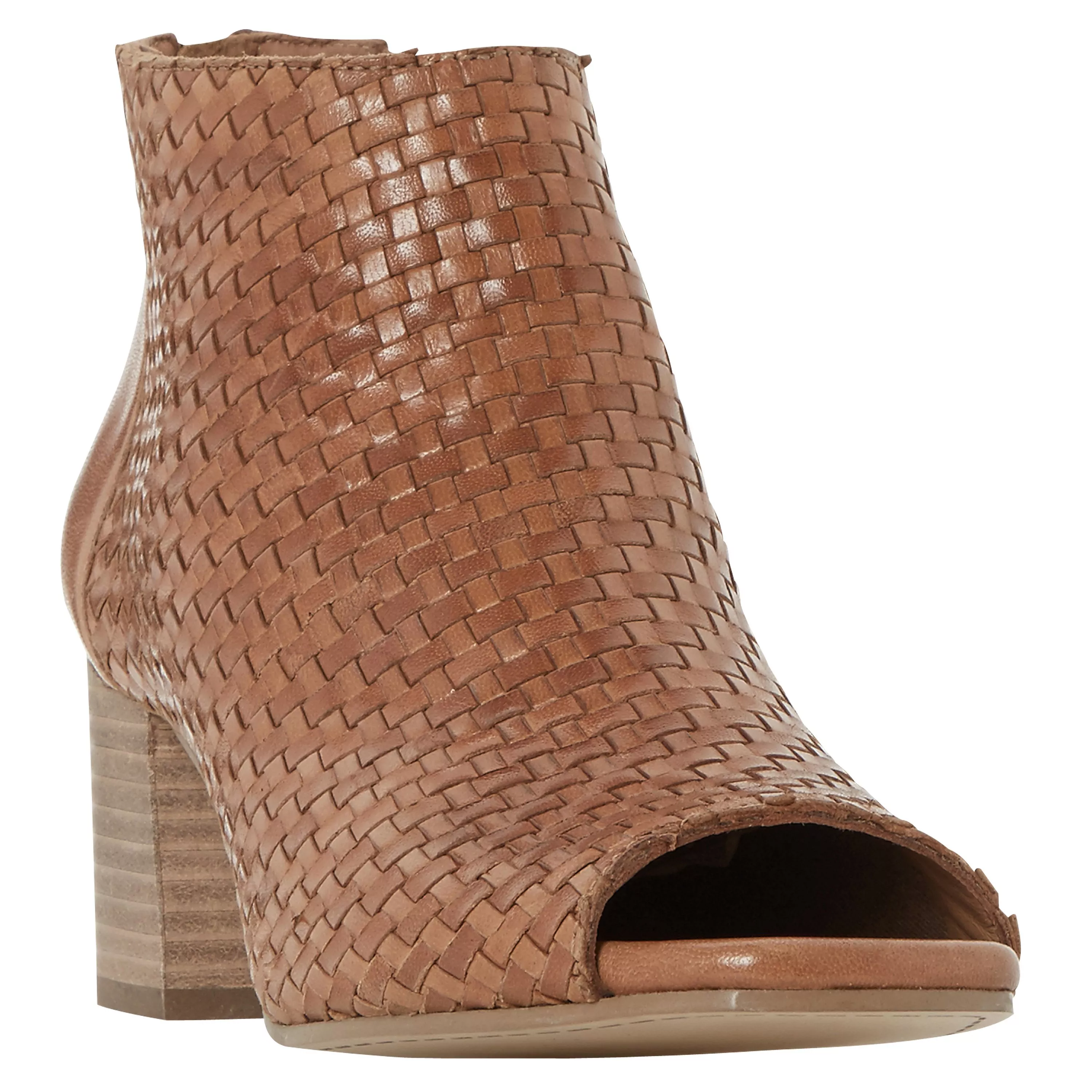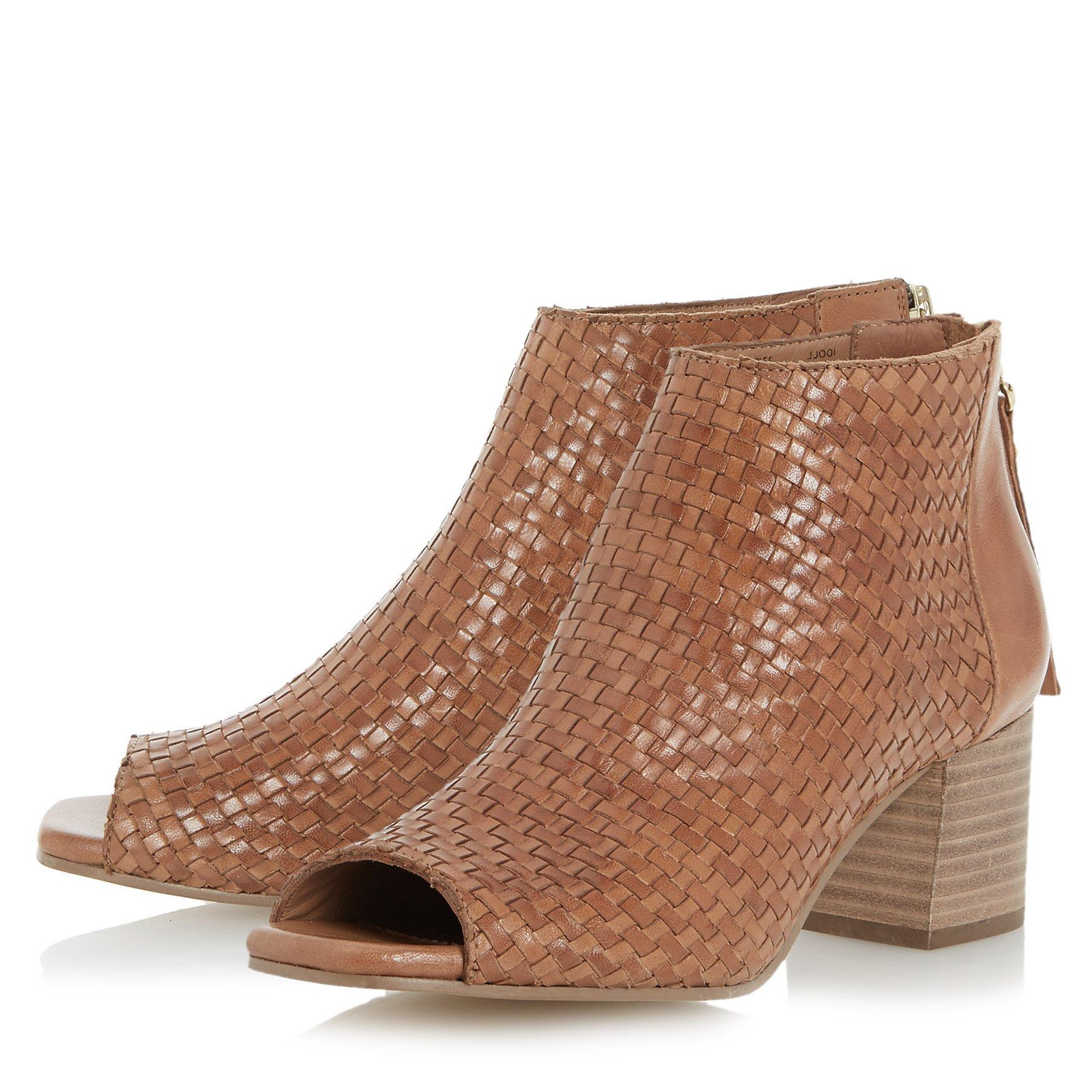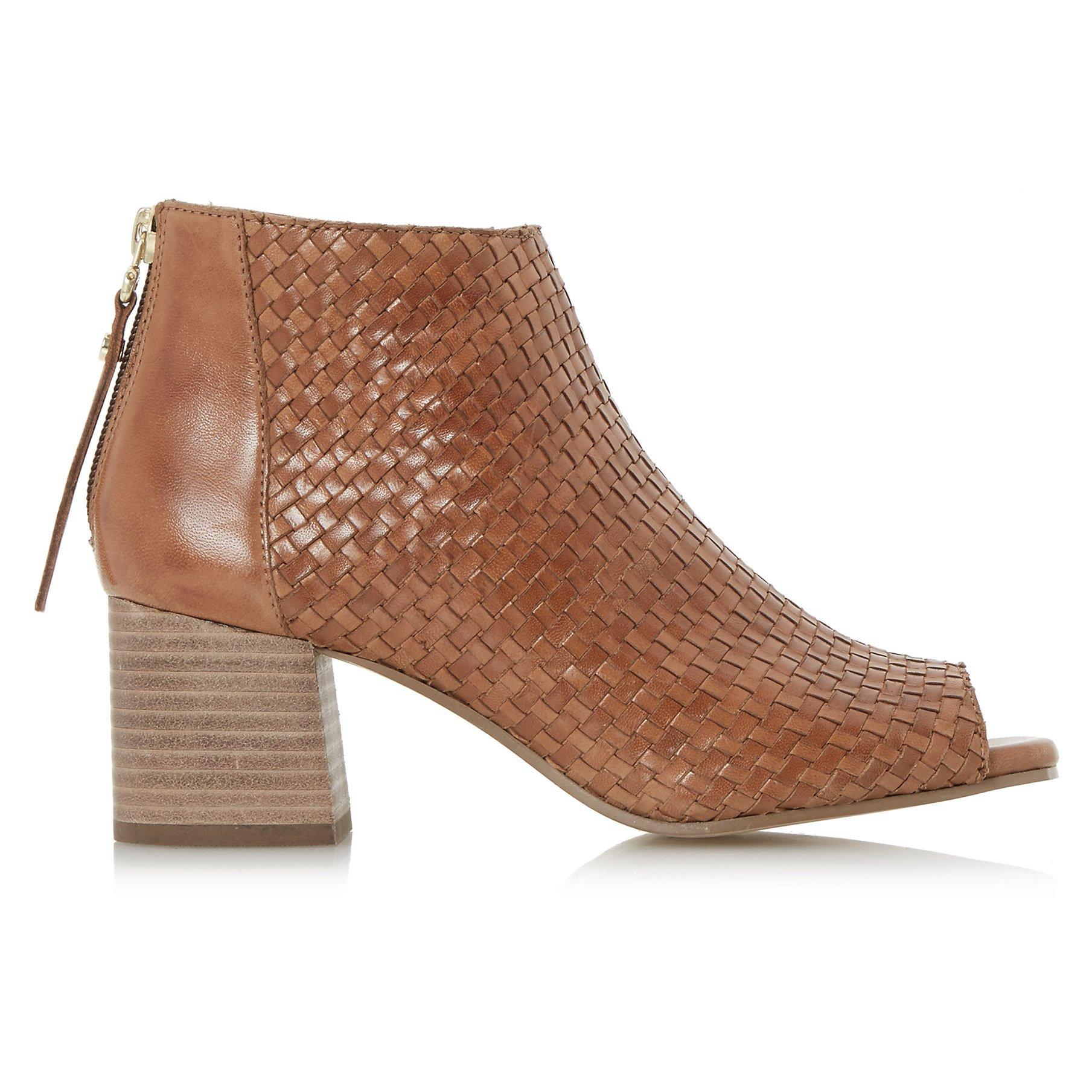 Featuring an ankle high design with a secure zip fastening at the back, an elegant peep toe and soft fabric lining. Sitting on a mid block heel, this pair are finished with a unique, weave effect on the upper.
