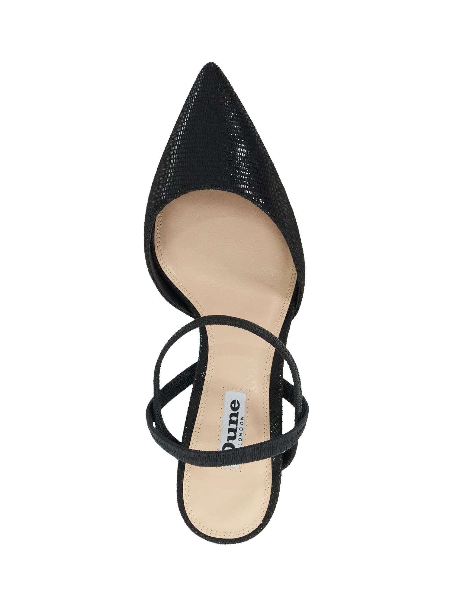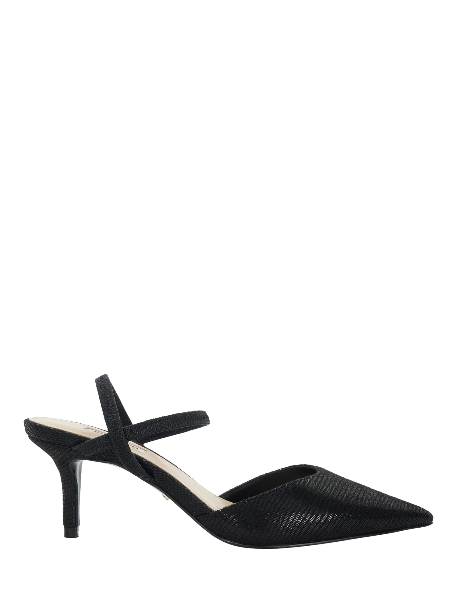 Reflecting the classic, yet sophisticated aesthetic they're known for, this pair of courts from Dune is rendered with stylish snake effect uppers. Sitting on a stiletto heel with straps across the ankle, they are finished with a pointed toe that's sure to flatter.