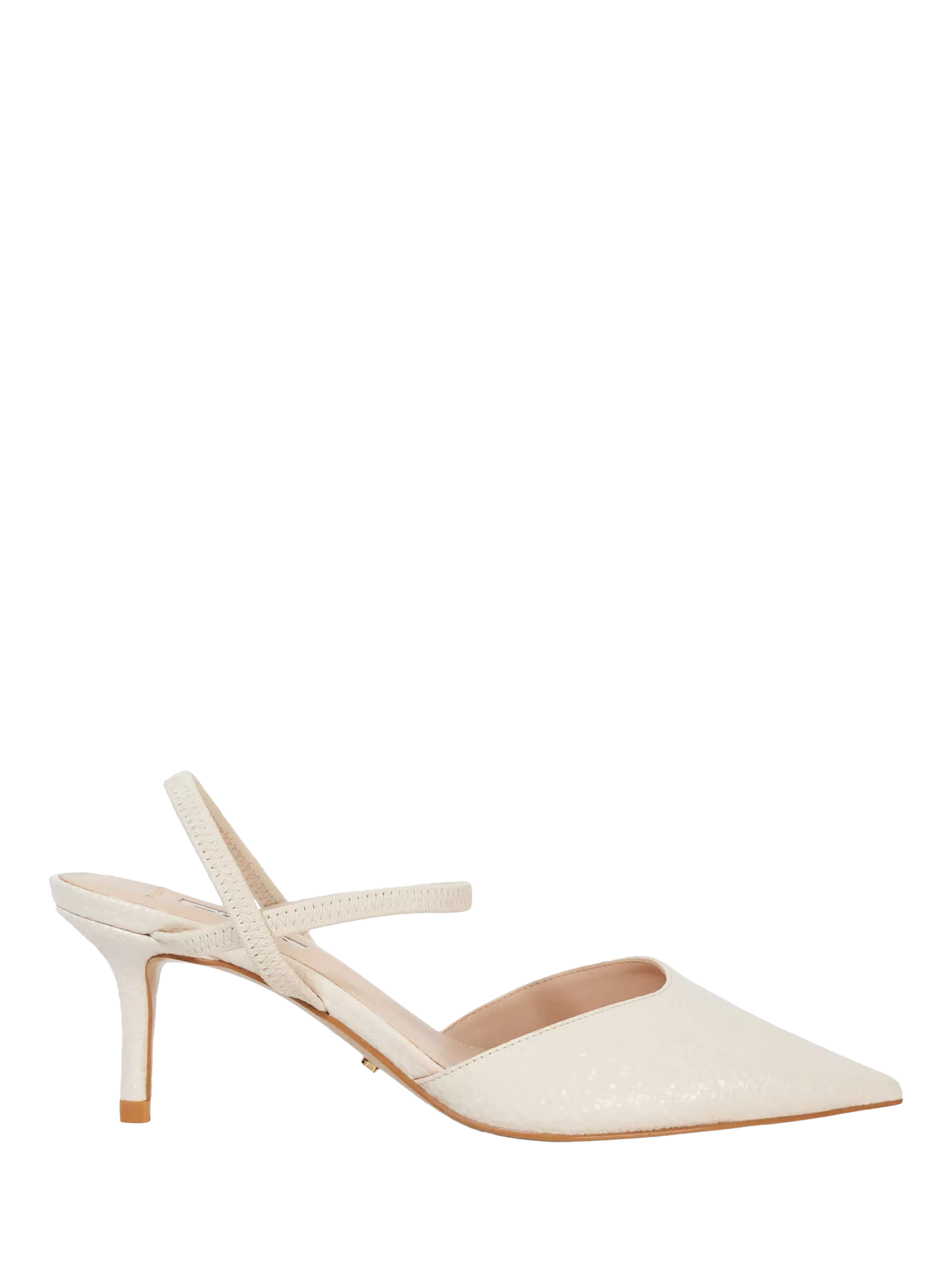 In a wide fit, this elegant pointed-toe open court silhouette features two delicate elasticated ankle straps. Resting on a comfortable mid-height heel this understated style can be dressed up or down.