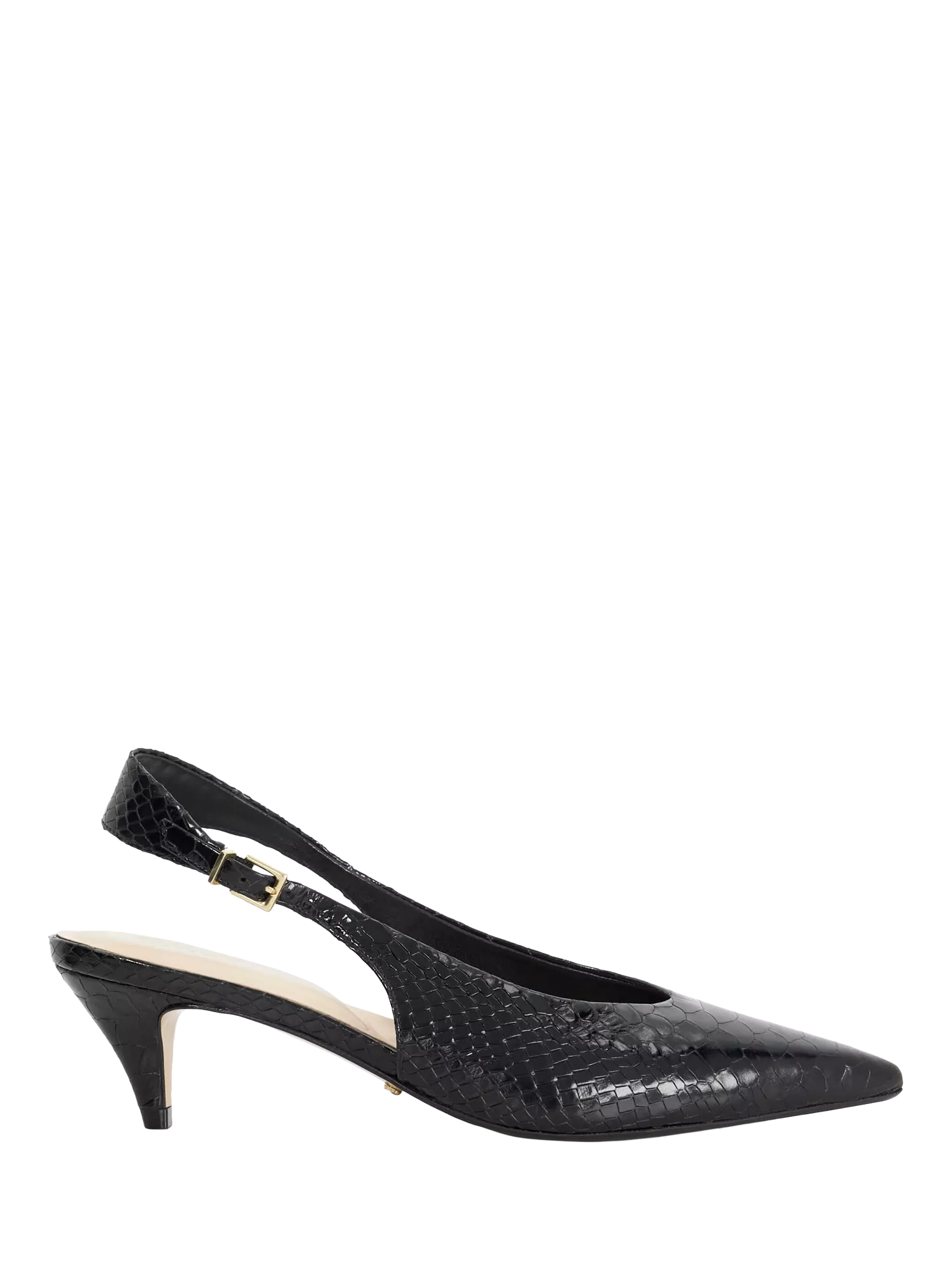Confidently clever, this court shoe balances a modern cone heel with classic pointed toes. The easy buckle slingback ensures comfort, while supple leather elevates any smart ensemble.