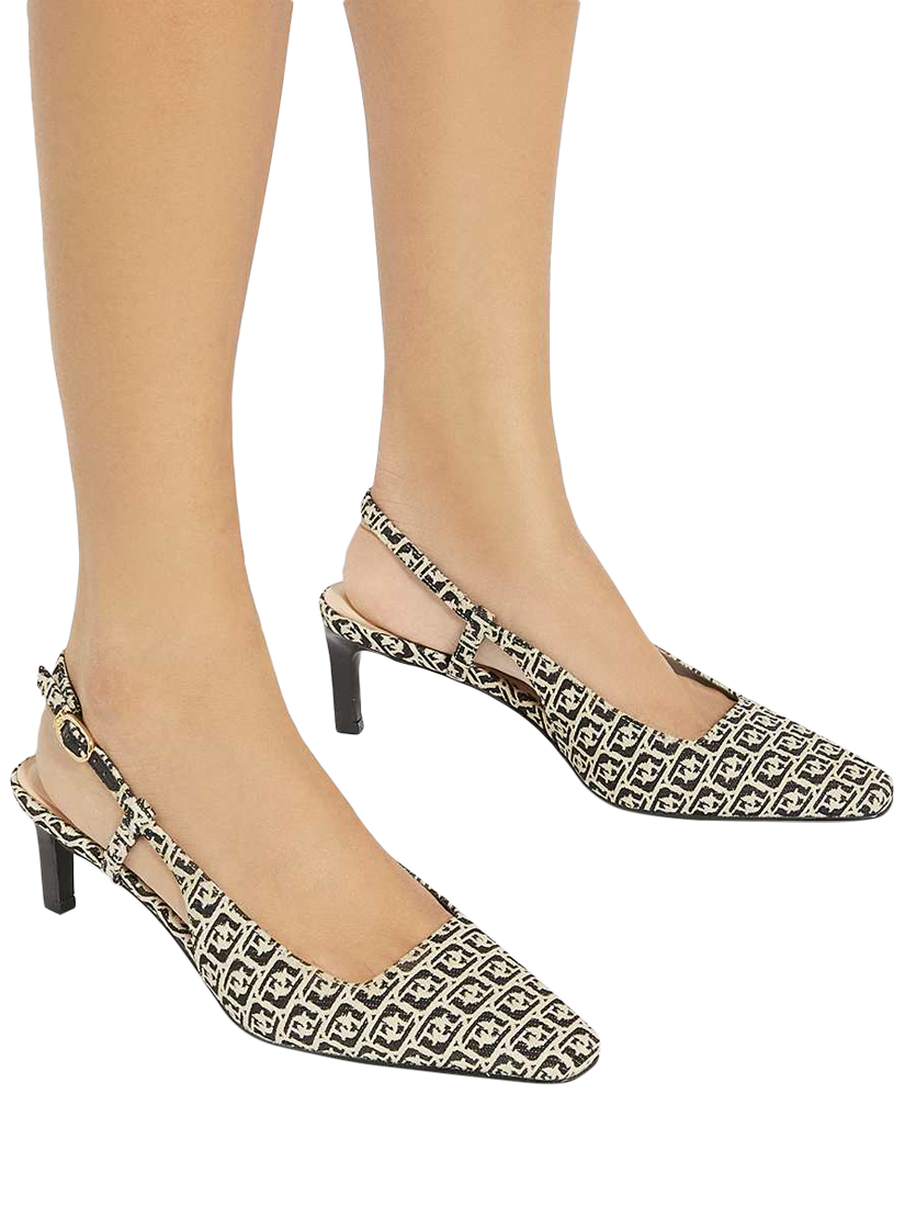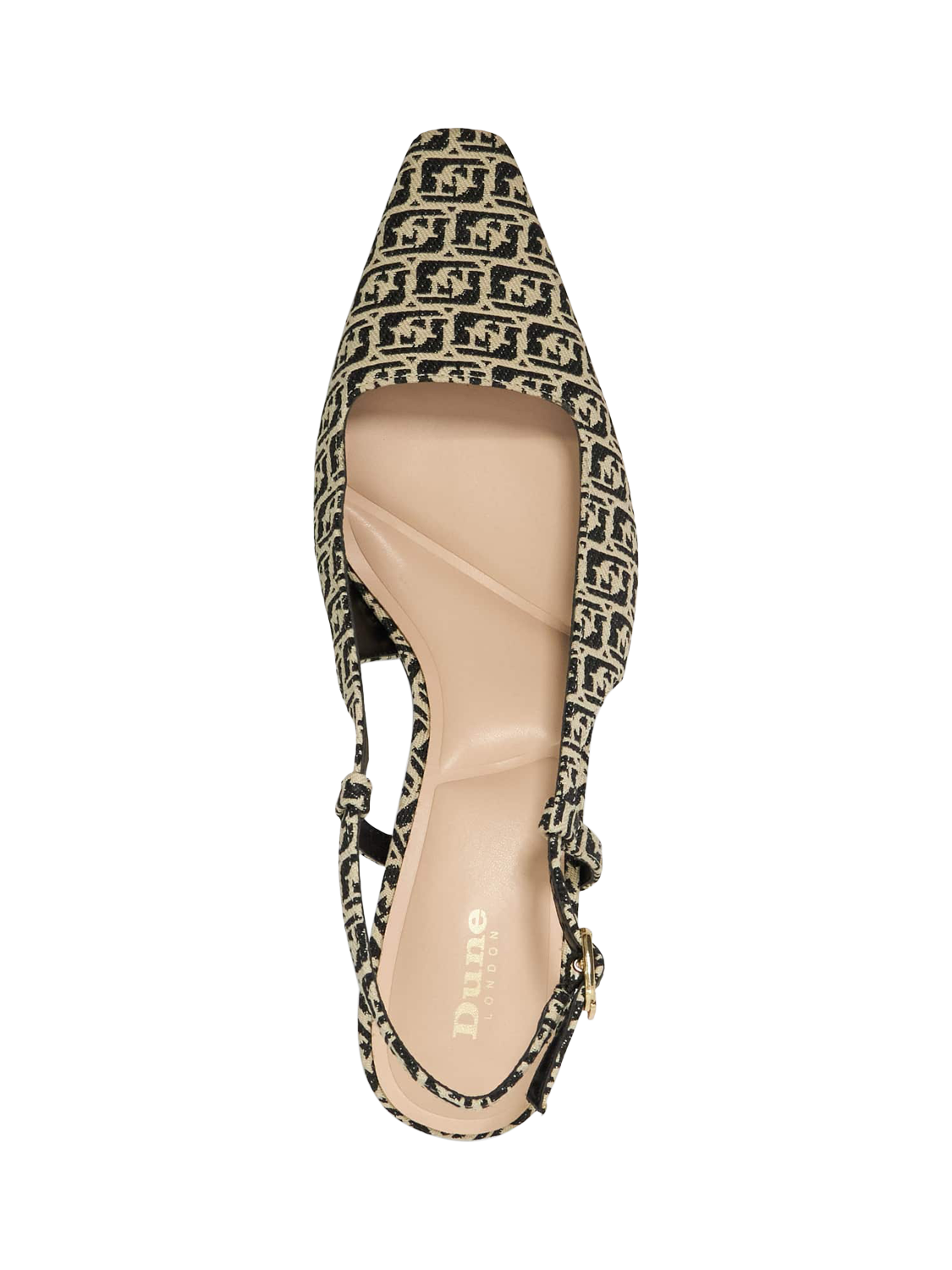 Reflecting the classic, yet sophisticated aesthetic they're known for, this pair of slingback courts from Dune is designed with patterned uppers. Set on a kitten heel, they are finished with a pointed toe that's sure to flatter.