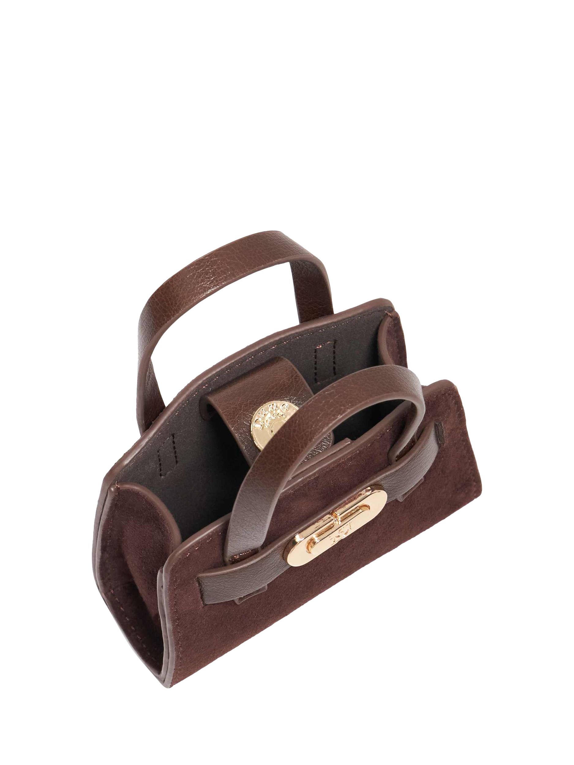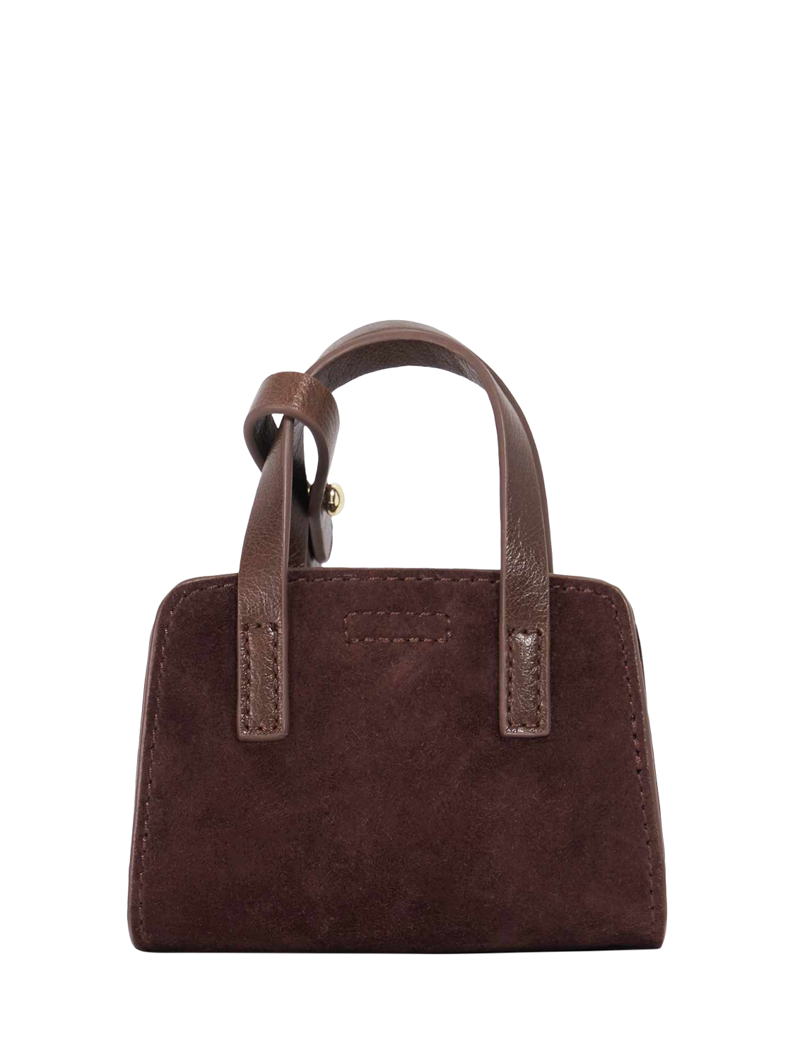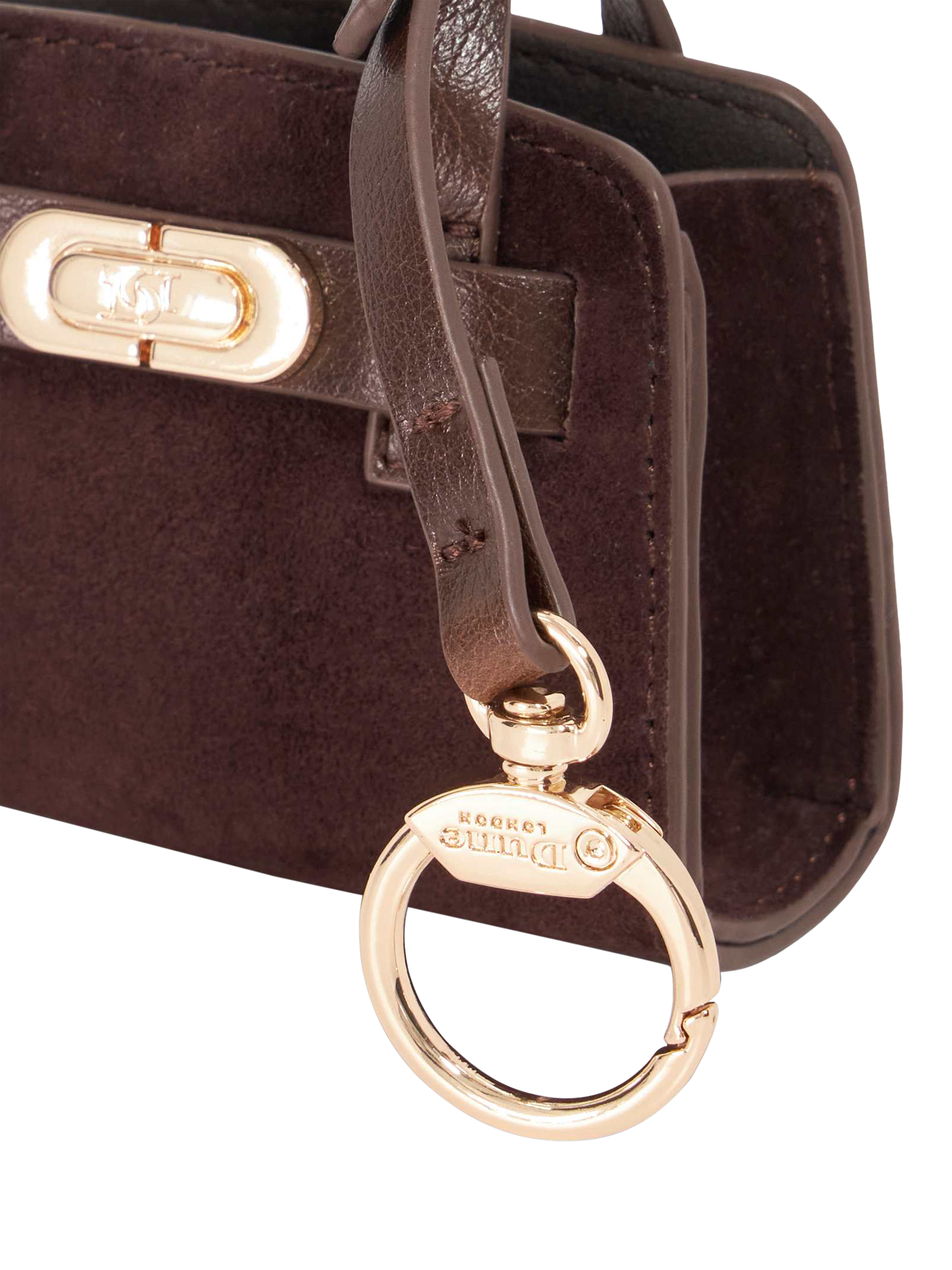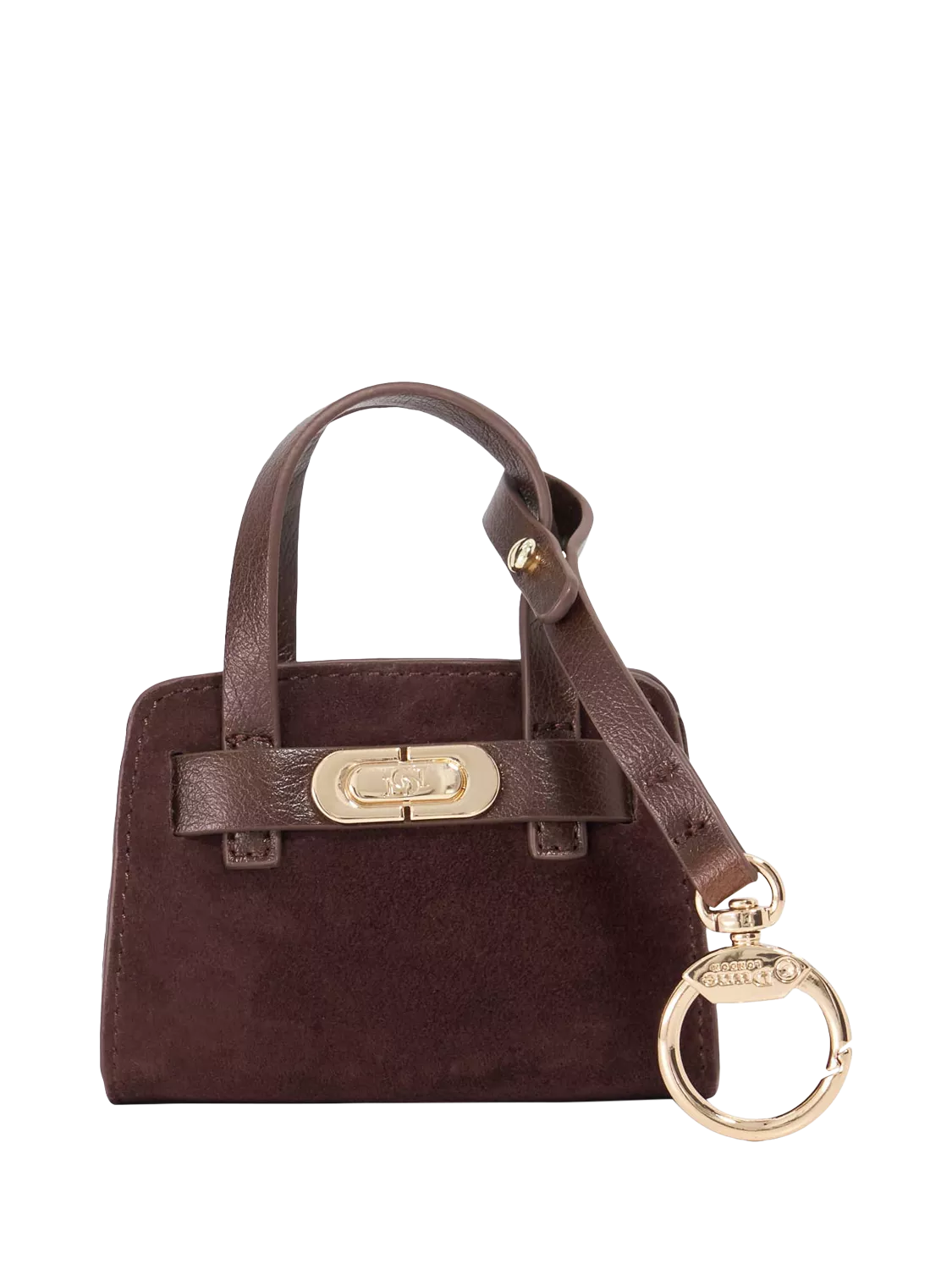The Dinky Mini Define bag charm has been meticulously crafted from suede, and finished with an embossed logo clasp and a gold hardware bow clasp, for attaching onto a bag.
