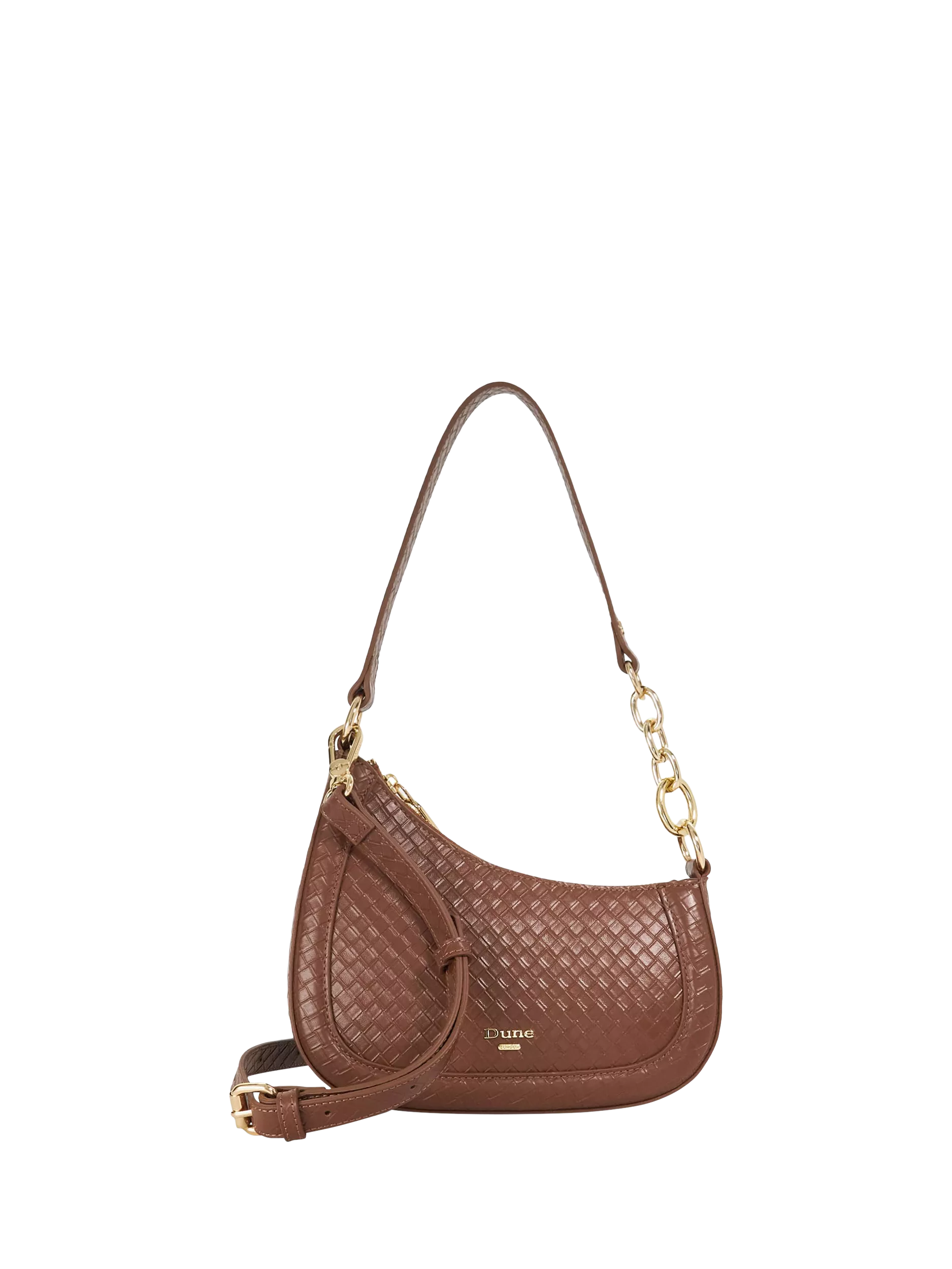 This angular sculpted silhouette has been designed to sit under the arm when worn on the shoulder. Combining comfort and style, the part chain handle, held in placed with ringlets on either side, has been crafted from gold chain links. Featuring the brand's signature logo on the front, the detachable shoulder strap allows this versatile bag profile to be worn cross-body.