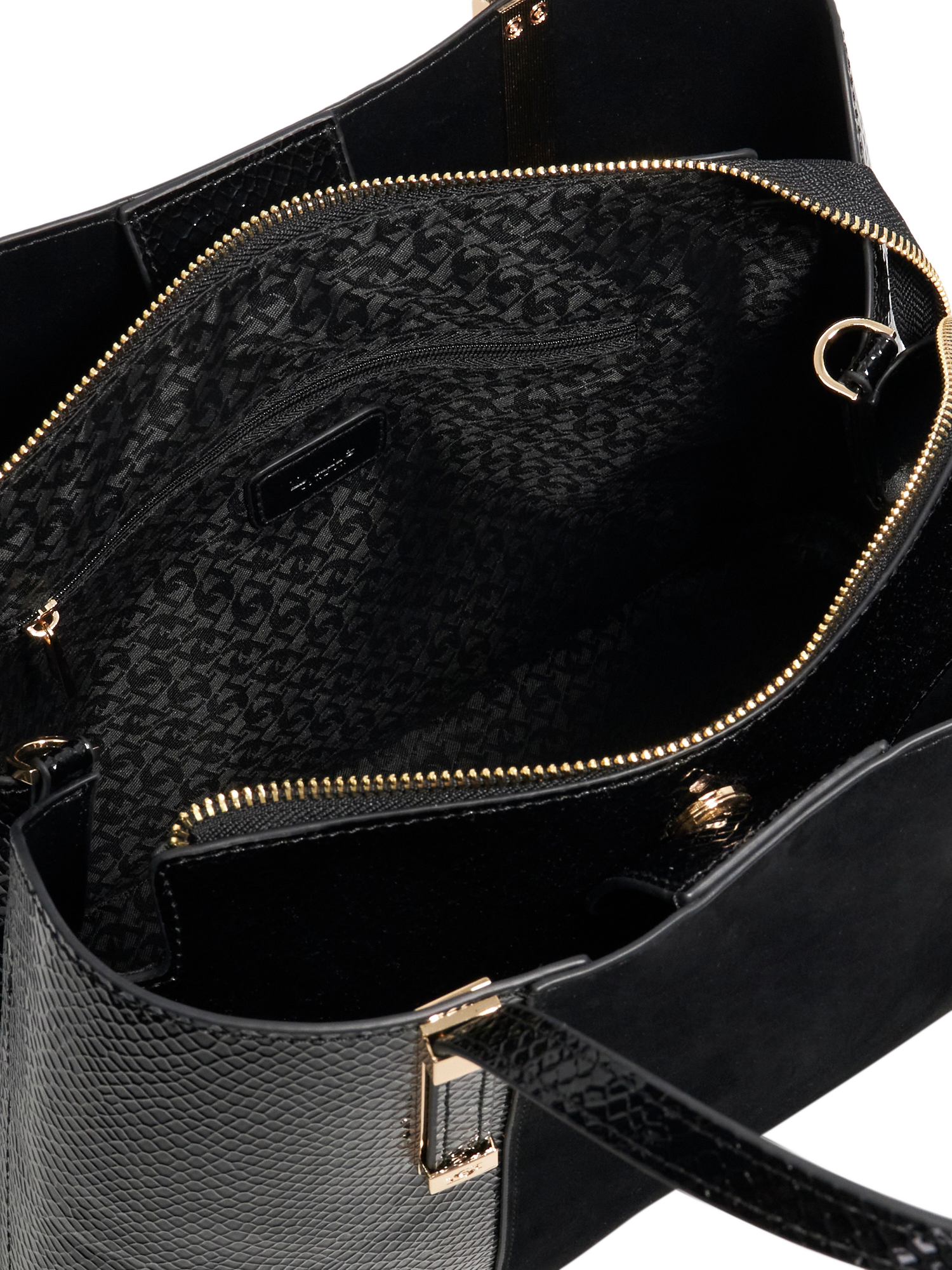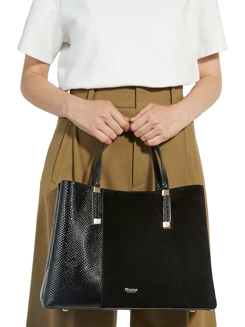 Boasting a boxy silhouette, Dorry features a textured upper with contrasting fabric for added style. The detachable crossbody strap provides versatile carrying options, while the double grab handles and gold-tone hardware enhance its elegant appeal. Finished with multiple internal compartments.