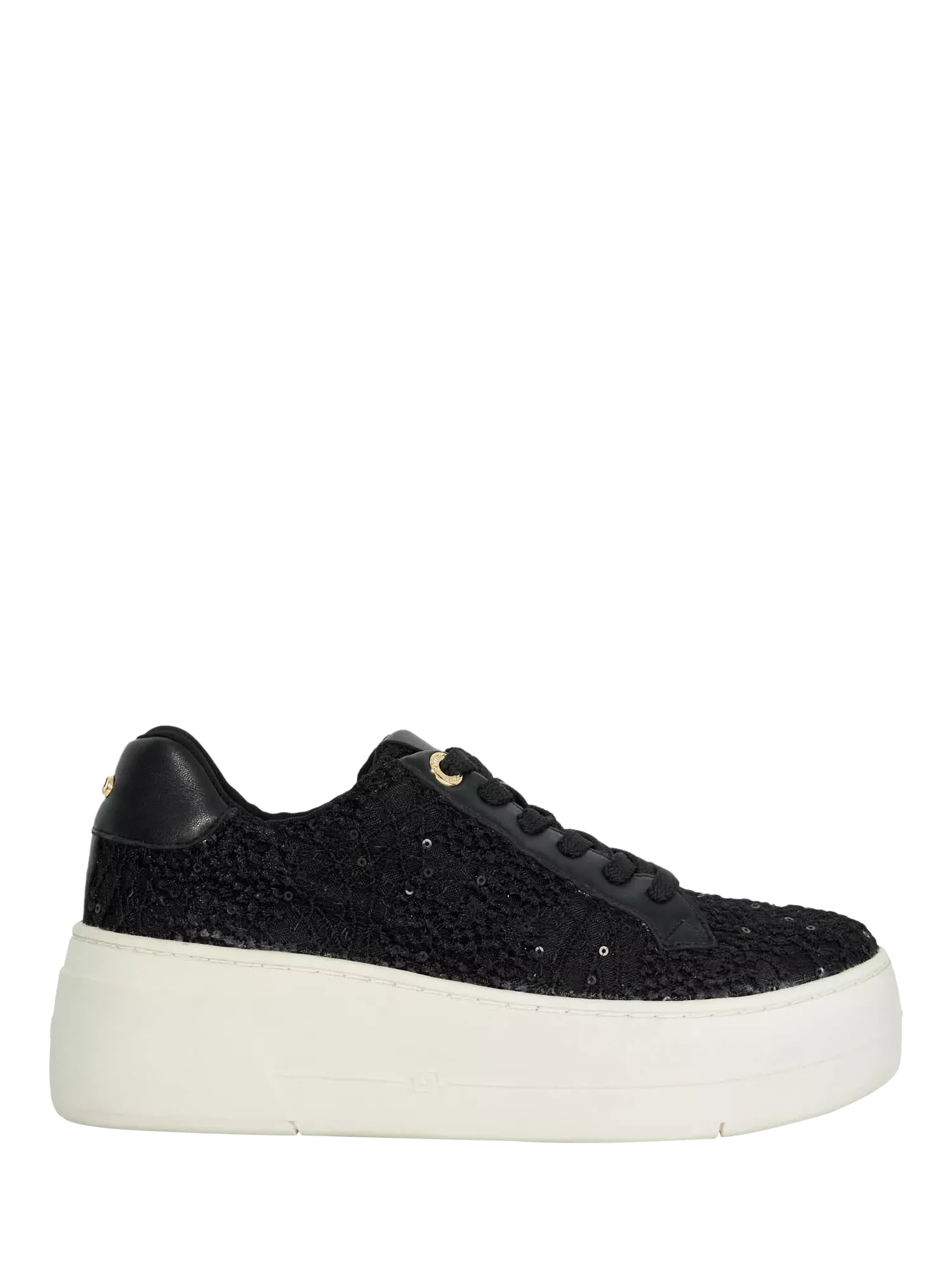 With intricately textured uppers, this pair of chunky trainers by Dune sit on a flatform heel with a round closed toe and a classic lace-up front.