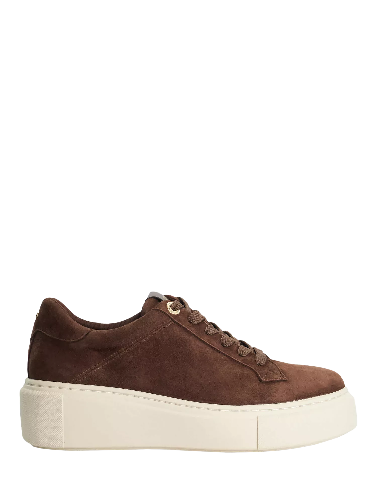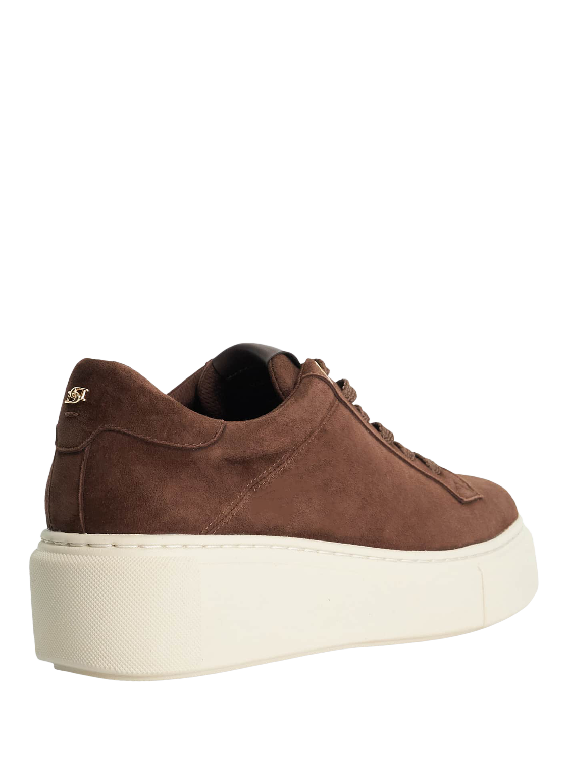 Sleek and effortless, these suede flatform trainers are designed for everyday comfort with a clean, modern silhouette. They feature tonal laces, subtle logo rivets, and a contrast flatform sole for a contemporary lift. Finished with signature branding on the back of the heel and laces.