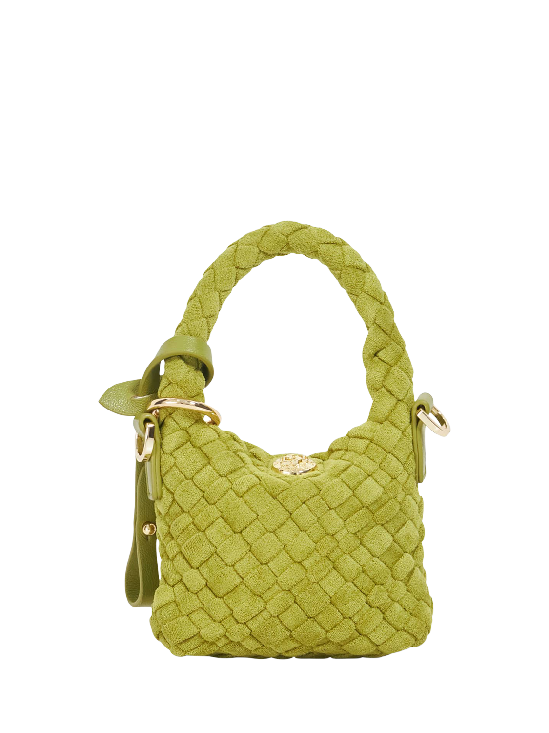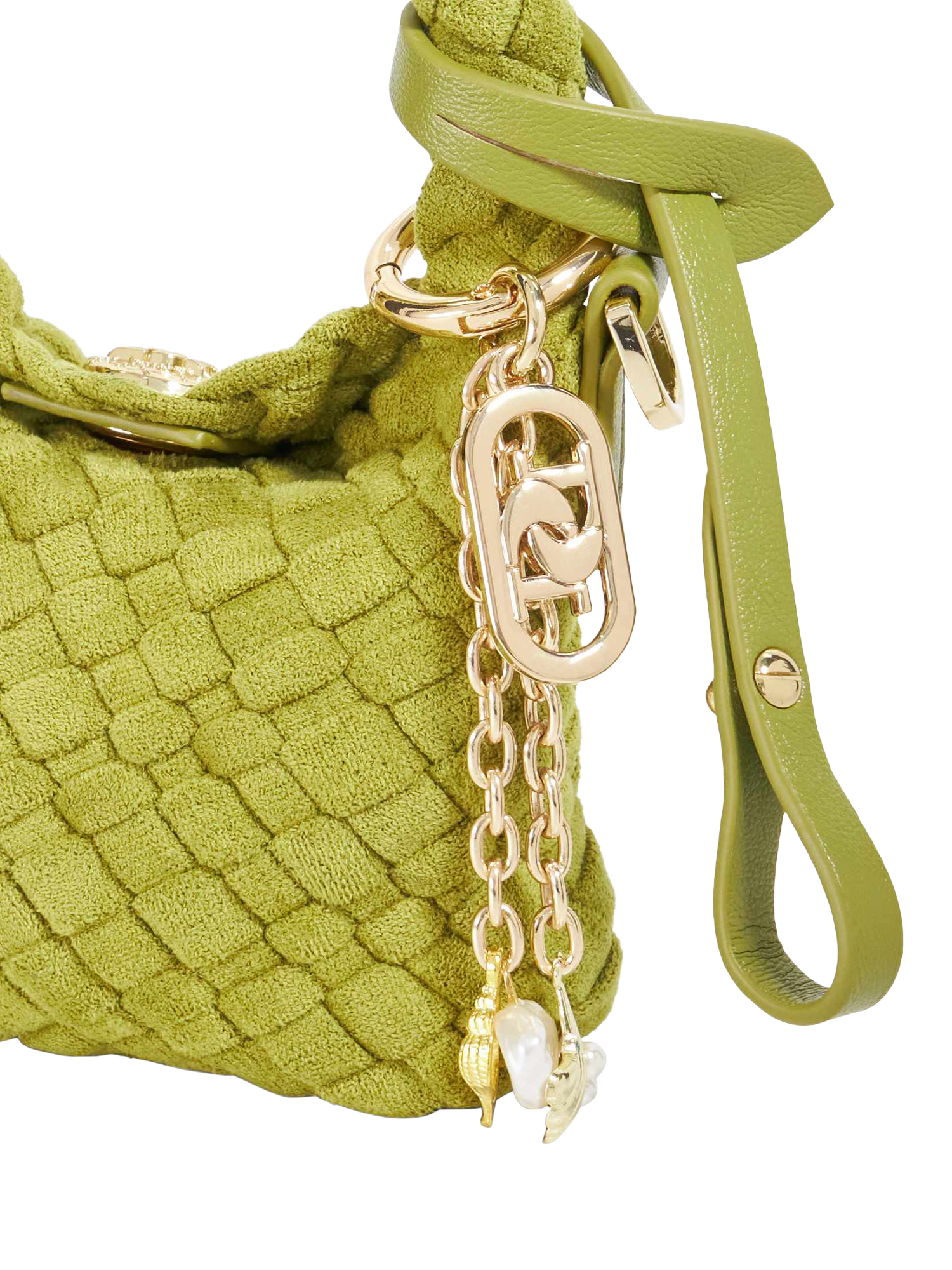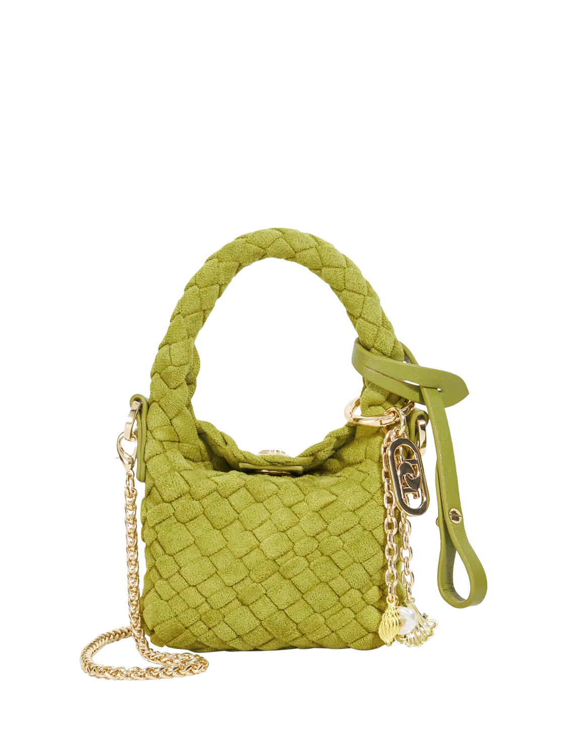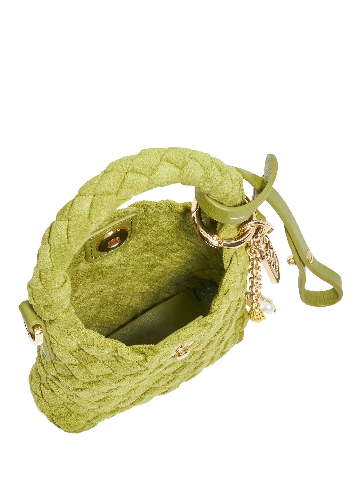 Dune's extra small Deliberate bag charm has been meticulously crafted in the brand's signature weave. Finished with a miniature double-D logo clasp, and tiny pearl and gem stone charms.