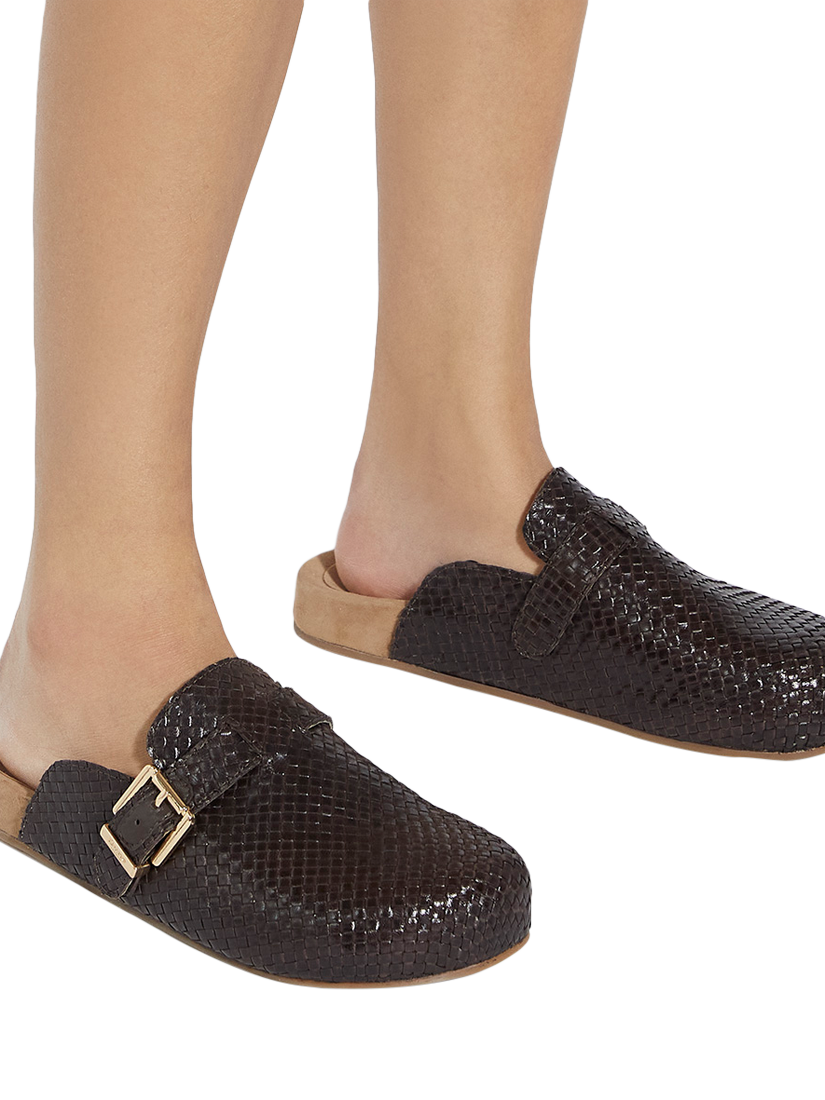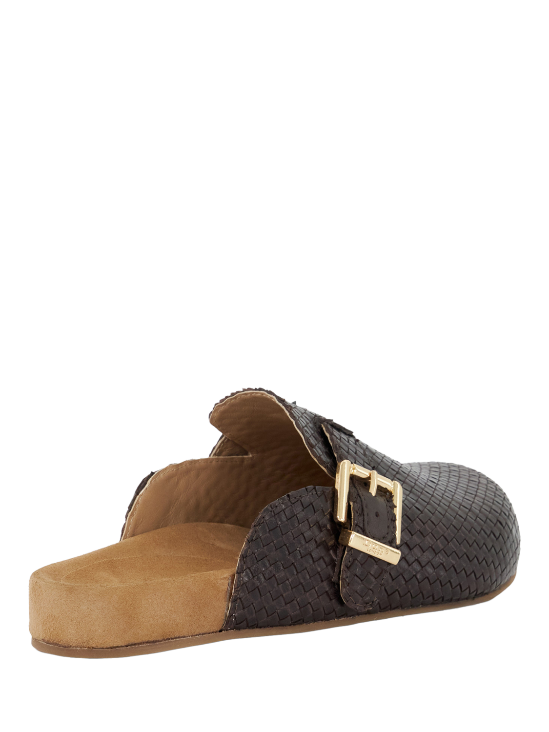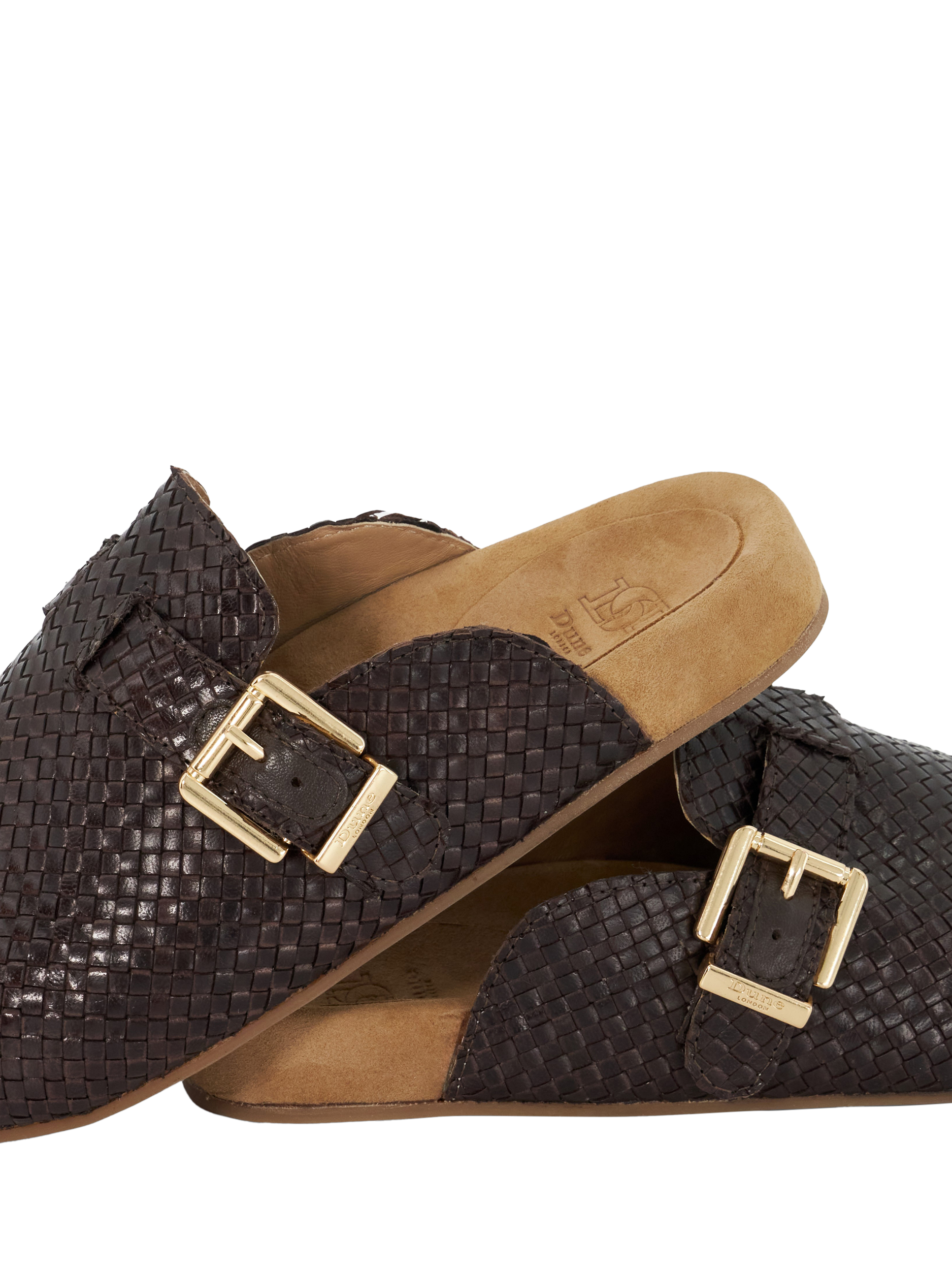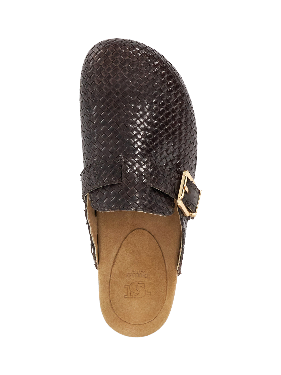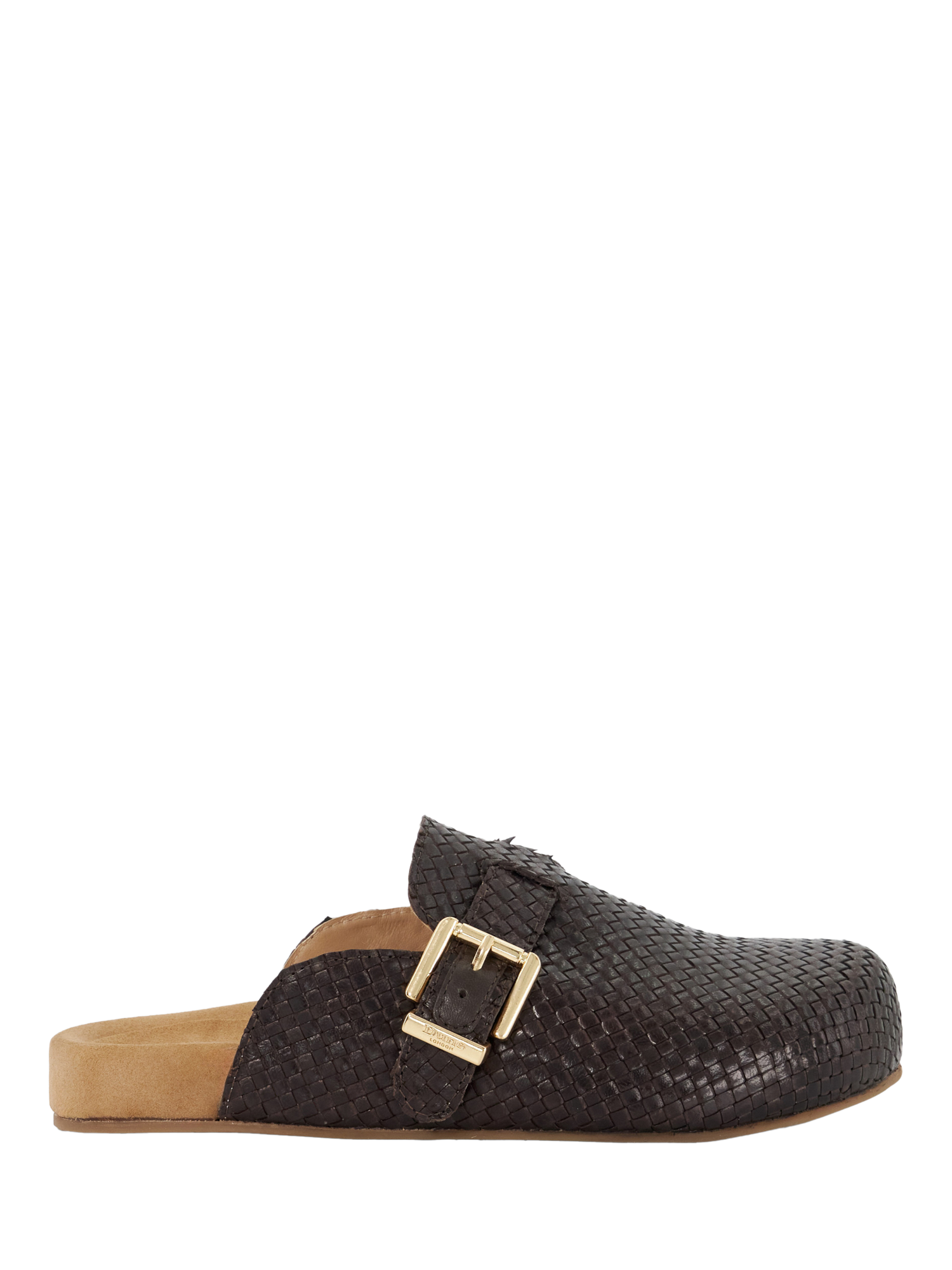 Uplifting smart-casual styles, this pair of clogs from Dune is woven from leather for comfort and longevity of wear. Set on a flat heel, they are finished with a rounded closed toe.
