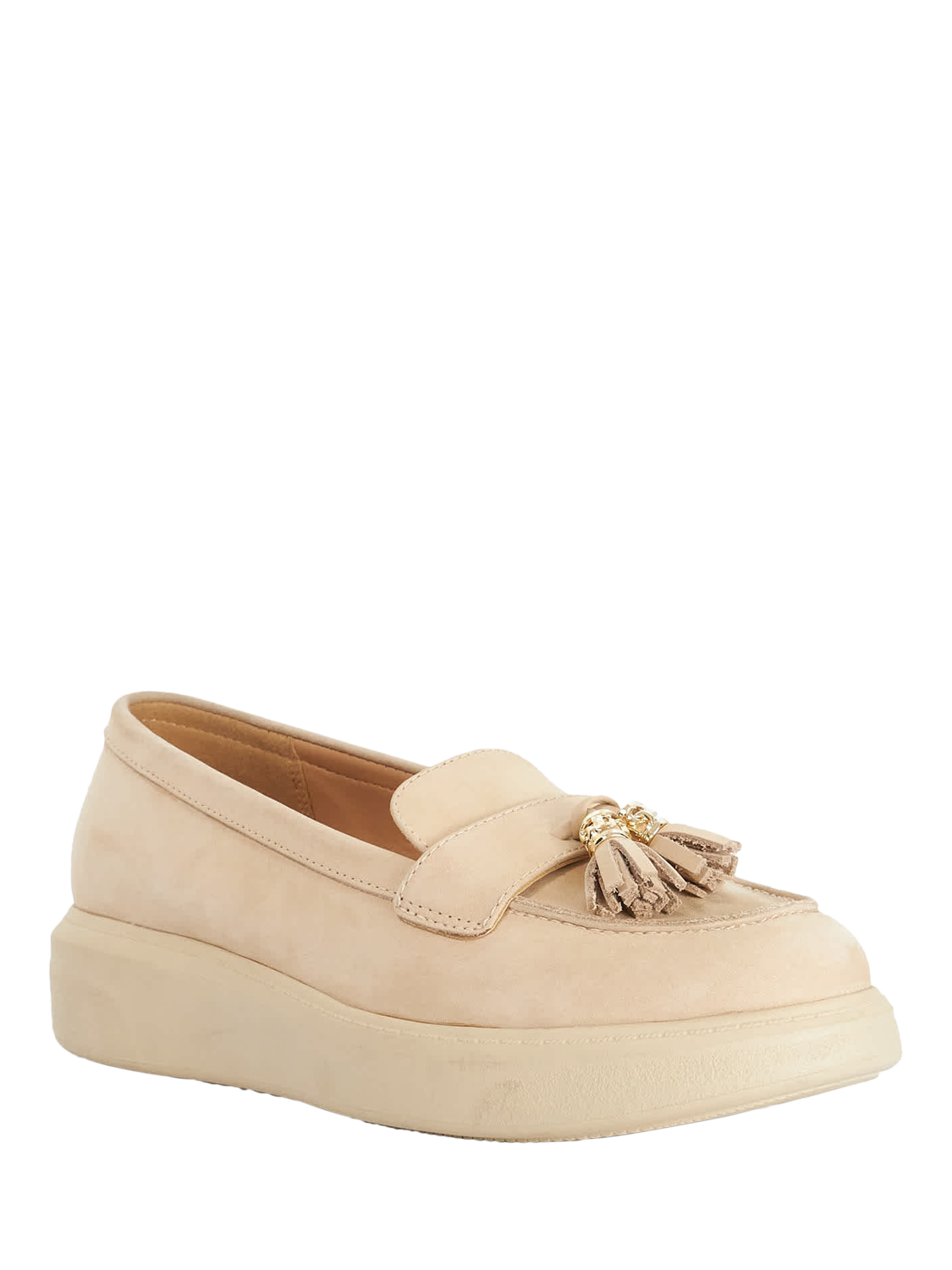 Dune London suede loafers, designed for the smart day. The flatform heel adds subtle lift, while the round toe and cushioned insole keeps things comfortable.