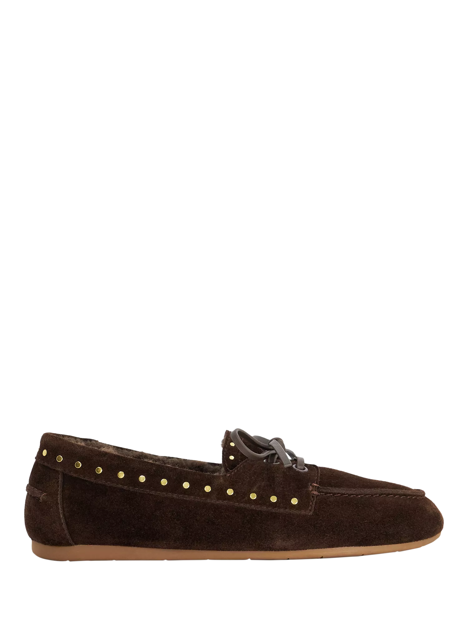 A pair of suede loafers by Dune London, lined in soft faux fur for a cosy feel. The flat, slip-on design makes them perfect for relaxed days, offering effortless style and all-day ease wherever you go.